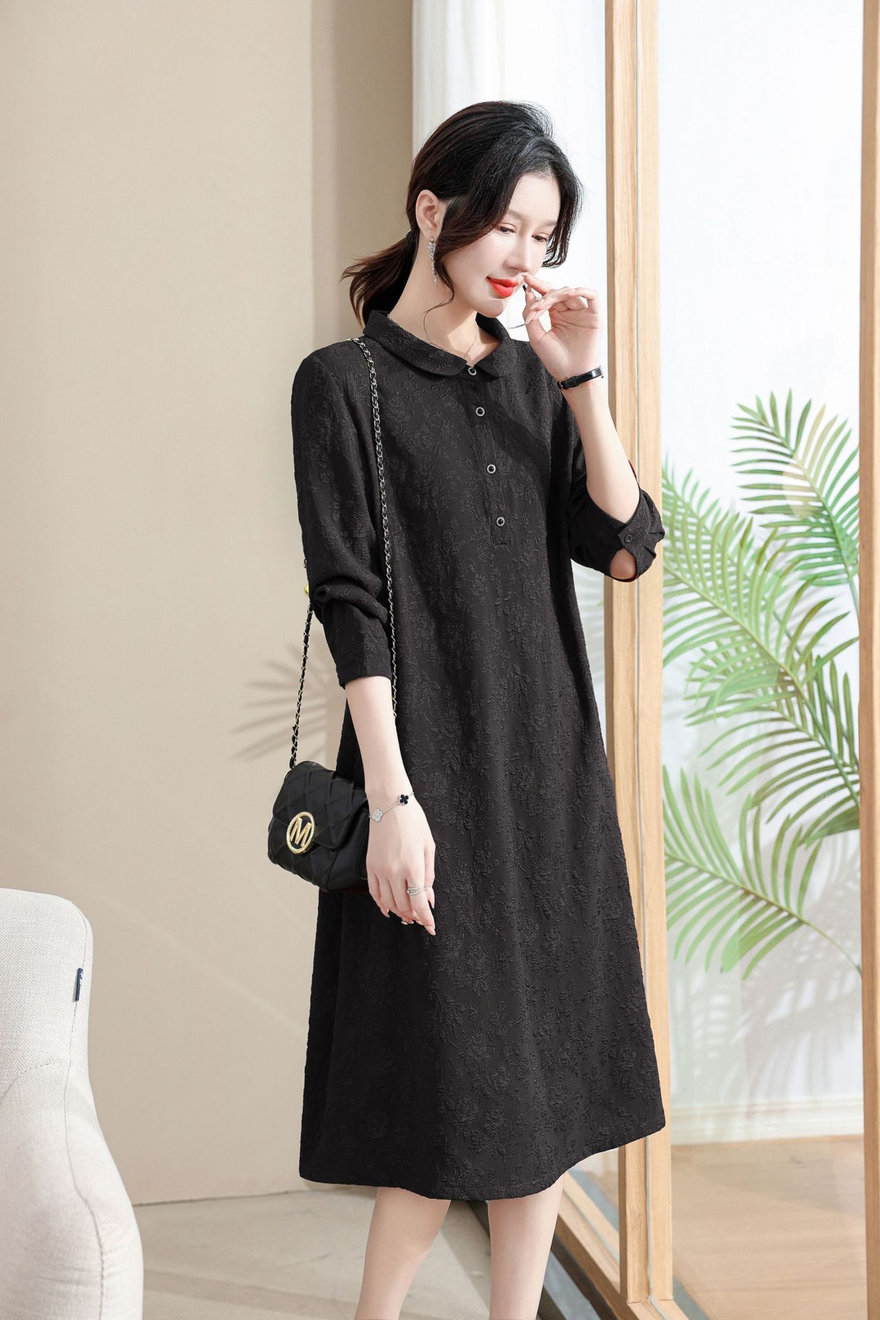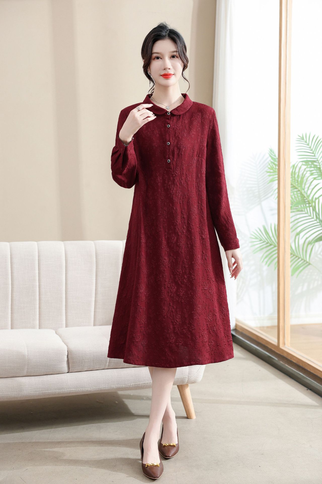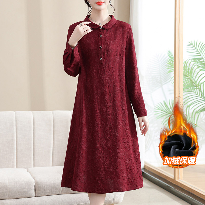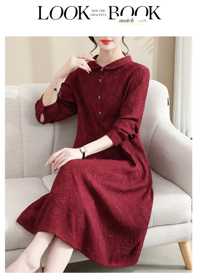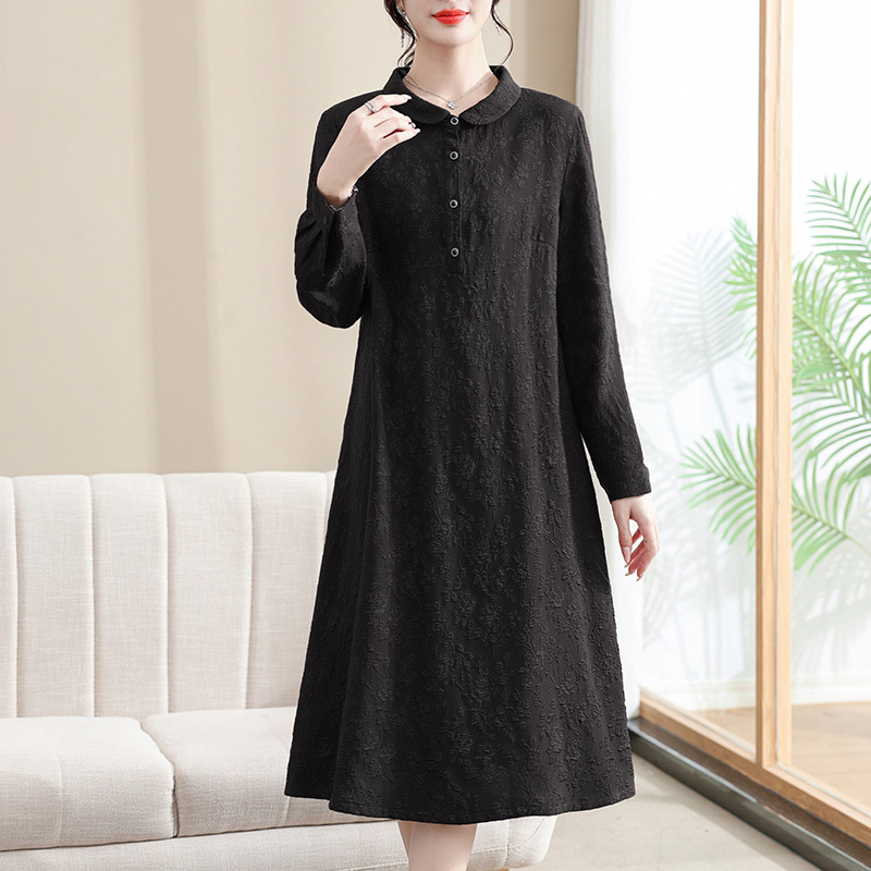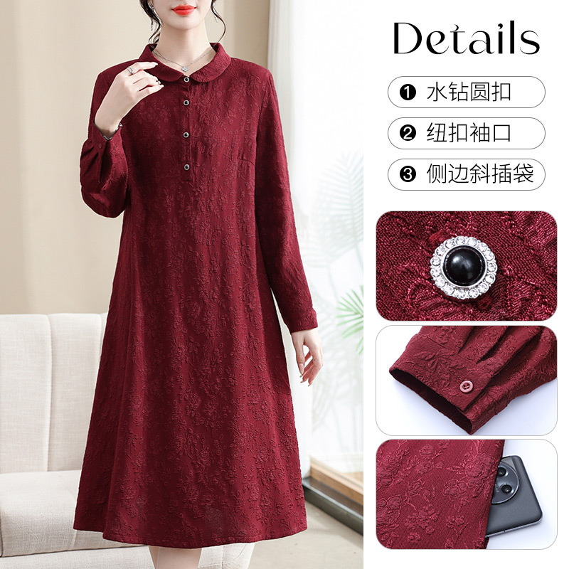 Модифицированное Ципао ранней осени, свободное, элегантное, жаккардовое Повседневное платье с лацканами и длинным рукавом для матери, женская одежда среднего возраста