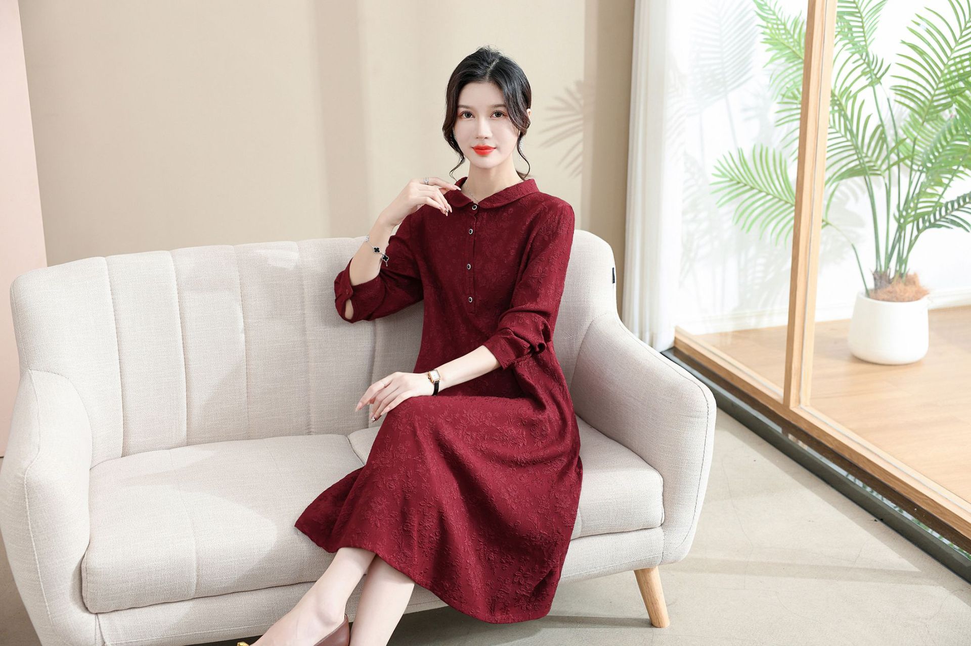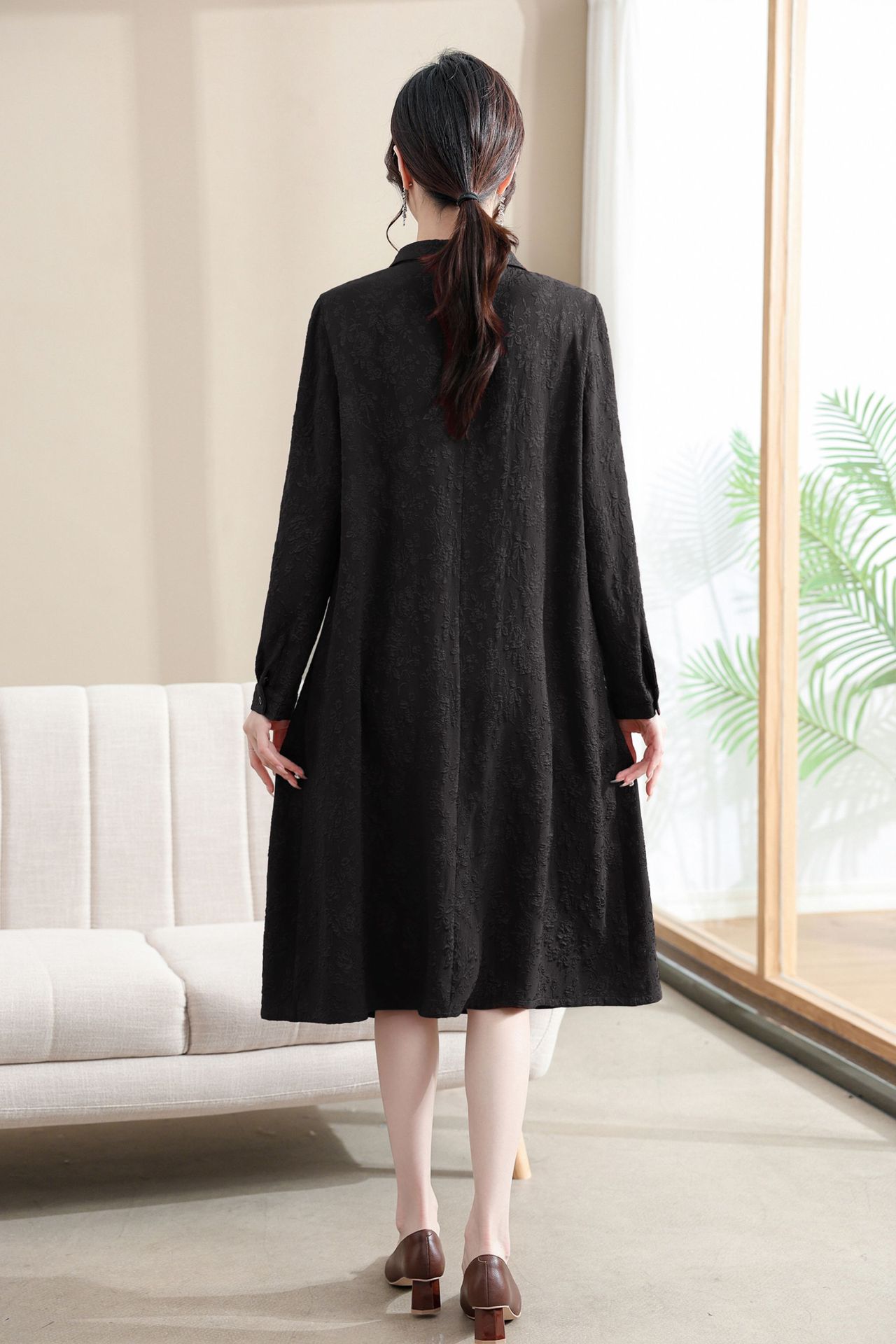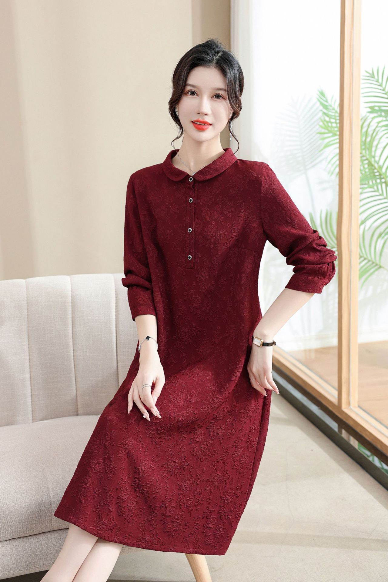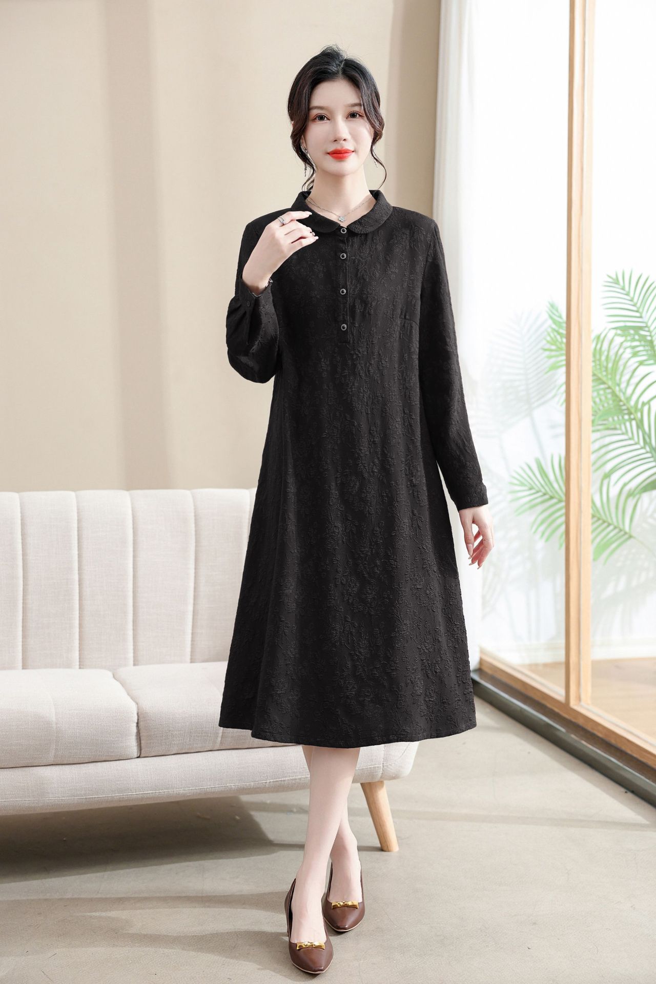 Модифицированное Ципао ранней осени, свободное, элегантное, жаккардовое Повседневное платье с лацканами и длинным рукавом для матери, женская одежда среднего возраста