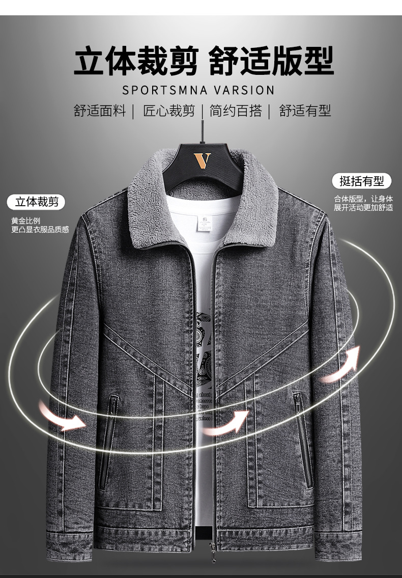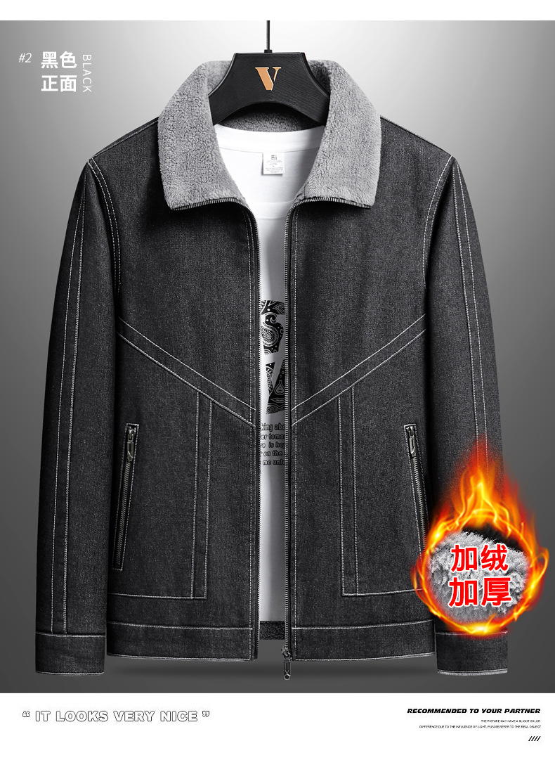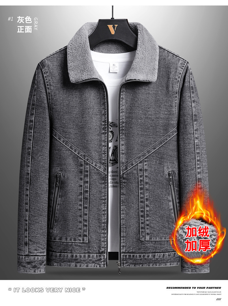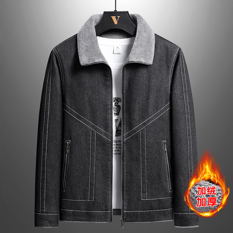 Трансграничная AliExpress осенне-зимняя джинсовая куртка мужская 2023 новая утолщенная Корейская куртка с лацканами на флисовой подкладке, зимняя куртка больших размеров