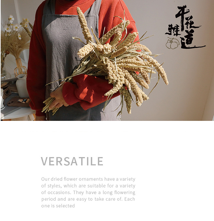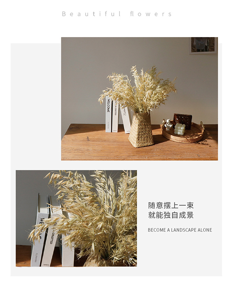 10 небольших горшков травы (высотой около 40 см); 50 кусочков травы для маленьких кастрюль (высотой около 40 см).; 50 штук оригинальной цветной травы кроличьего хвоста (высотой около 40 см); 10 колосьев проса (высотой около 50 см); 50 кусочков овса (высотой около 40 см); 20 кусков дров (слегка упавших) (высотой около 70 см); 12 маленьких тростников (слегка опущенных) (высотой около 70 см); 50 венчиков (слегка опущенных) (высота около 70см); 10 кусочков хлопка (высотой около 35 см).; 100 штук пшеницы оригинального цвета (высота около 45 см); 3 маленьких листа топорника (диаметр около 15 см, высота 45 см); 1 пучок любовной травы (около 6 ветвей, высотой около 50 см); 5 стручков лотоса (железный столб, высотой около 45 см); 10 стручков лотоса (железные стержни высотой около 45 см); 10 случайных ярких хризантем из пшеничной соломы (высотой около 45 см); 20 плавающих пыльных цветов (высотой около 75 см); Около 100 лавандовых палочек (высота около 45 см).; Длина волосы лопуха 50-60см, одна ветка (общая длина 110cm ); 15 штук оригинальной золотистой травы (высотой около 45 см)