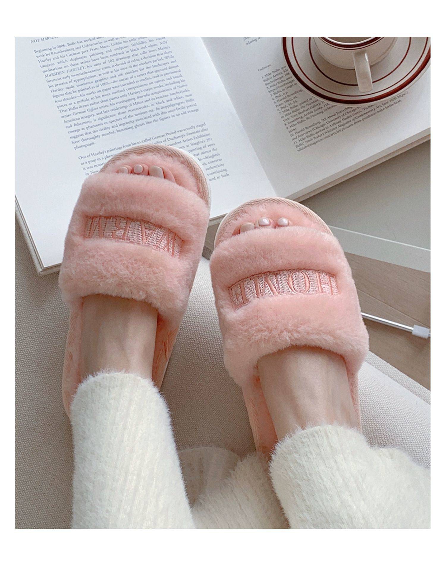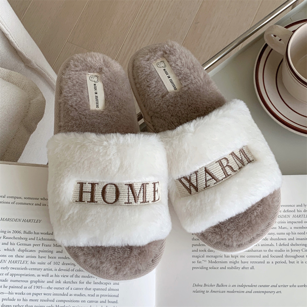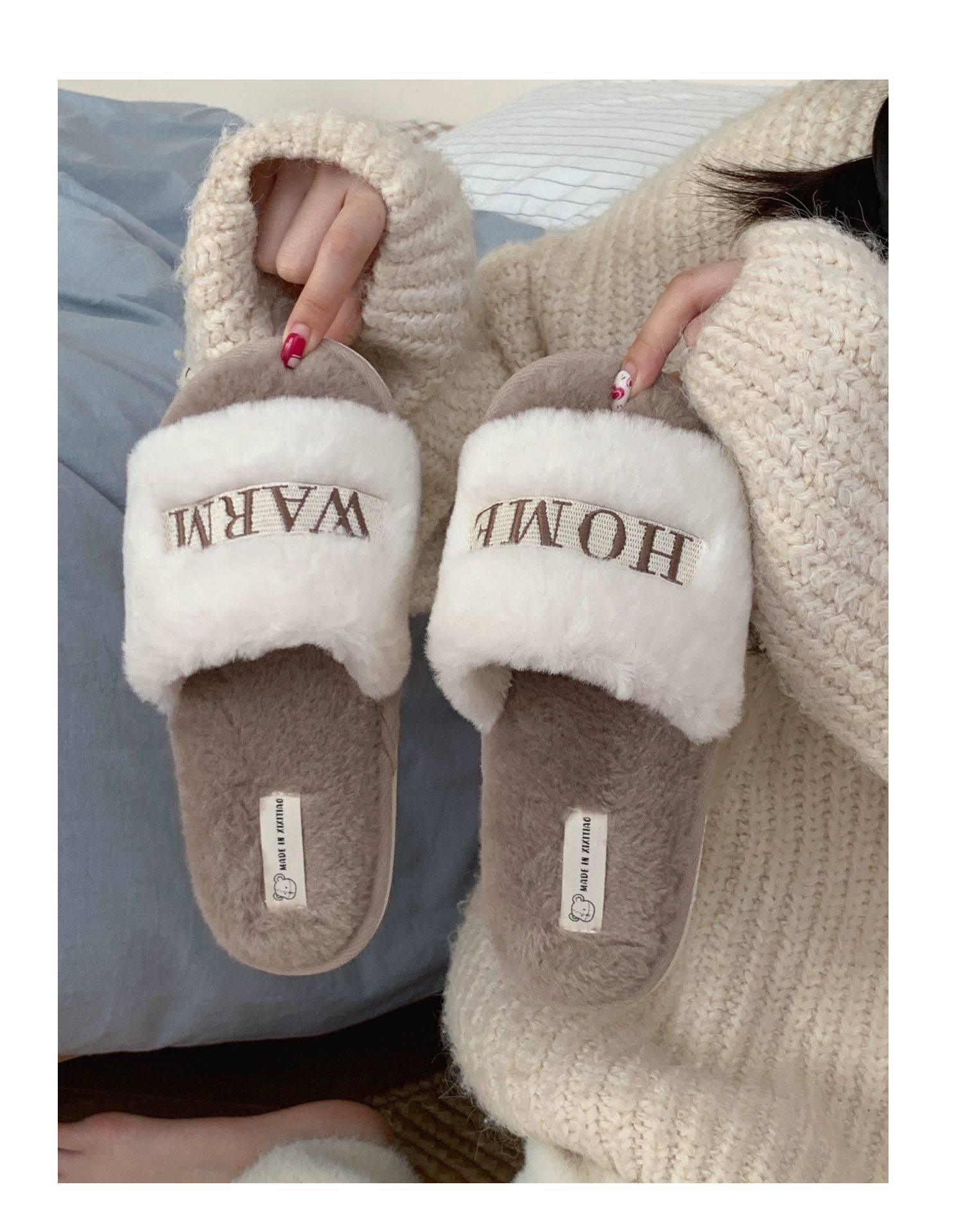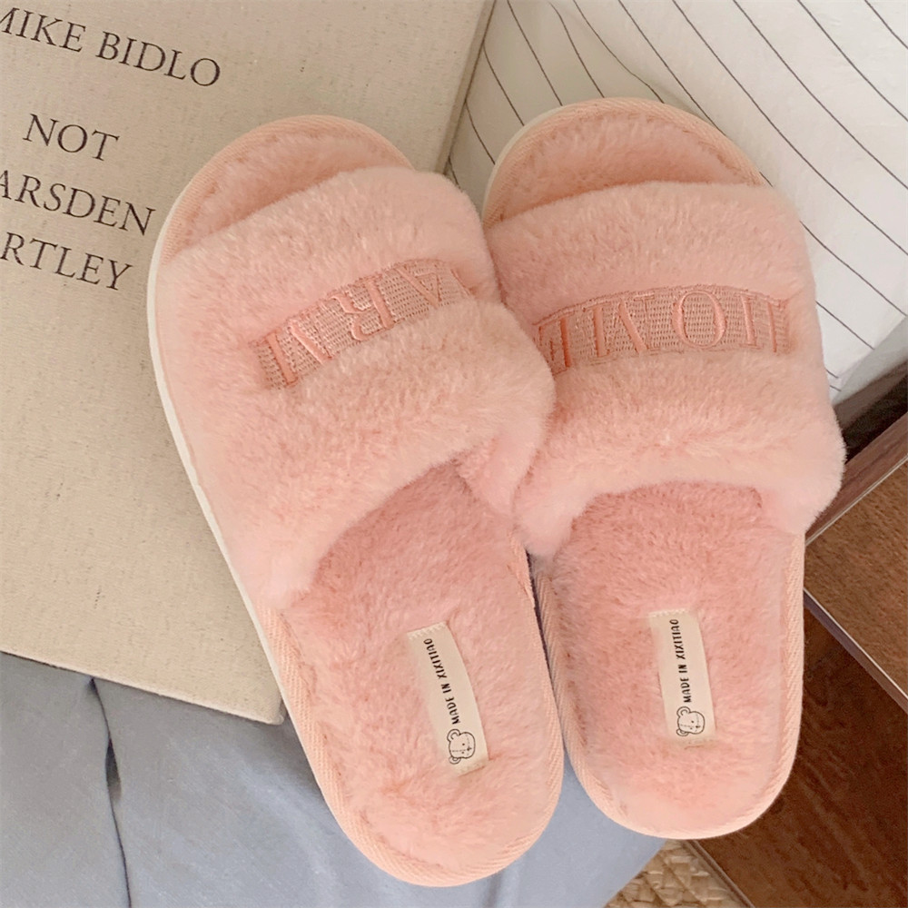 Новые зимние плюшевые теплые хлопковые тапочки для дома и улицы, женские креативные персонализированные туфли с мягкой подошвой и вышивкой, Осенние