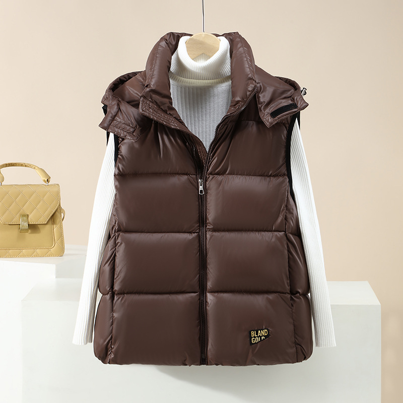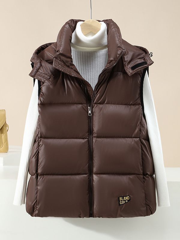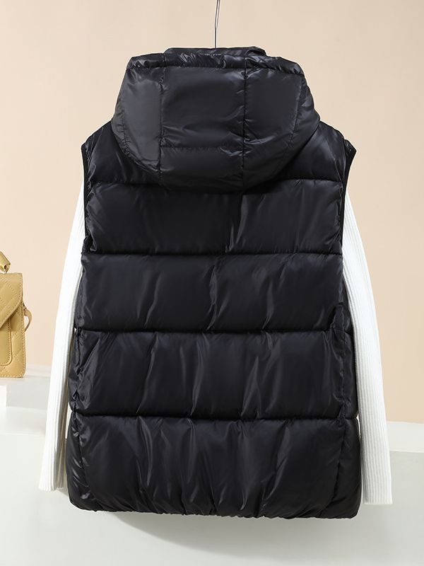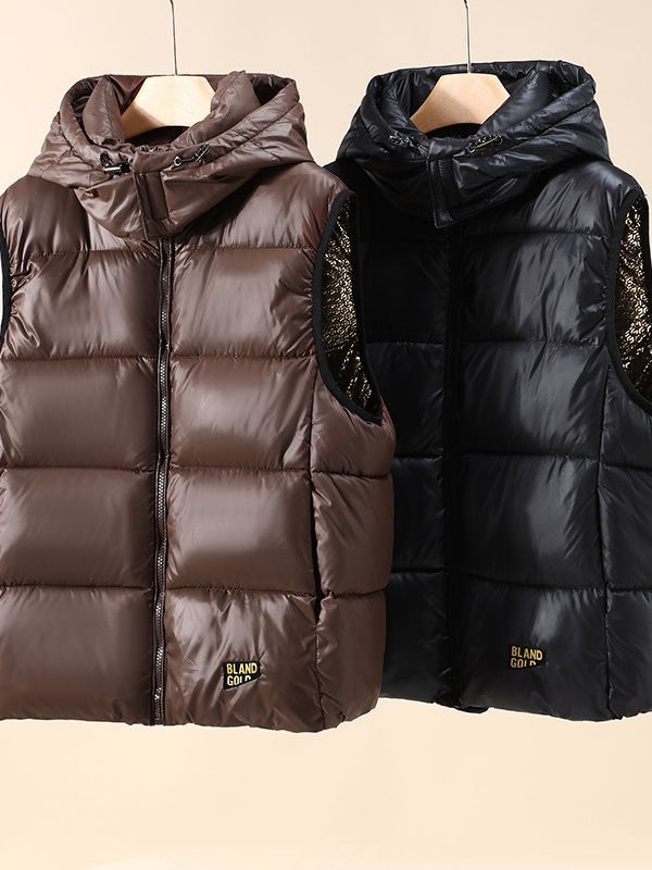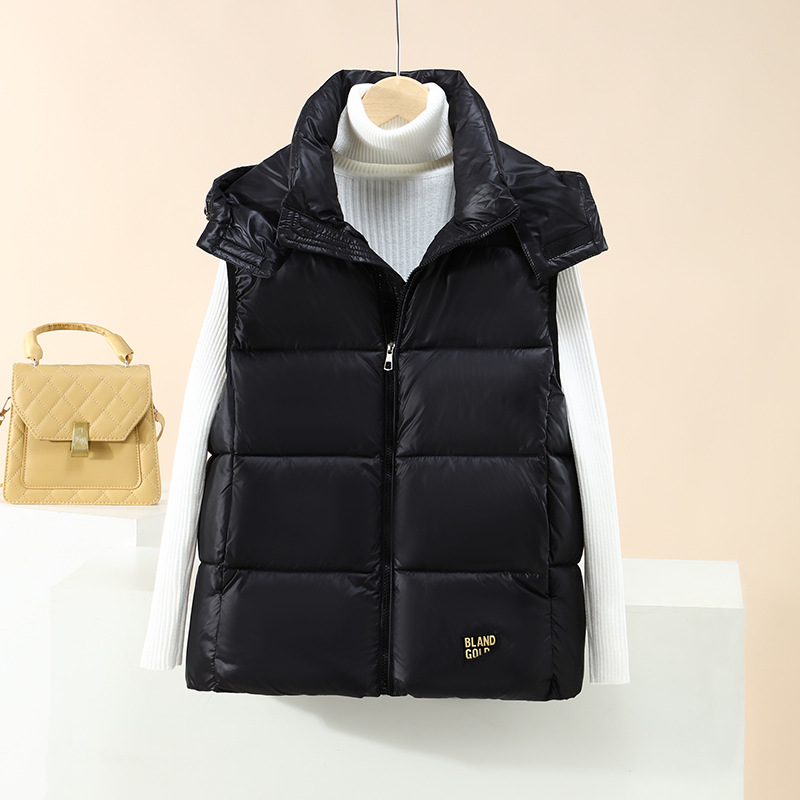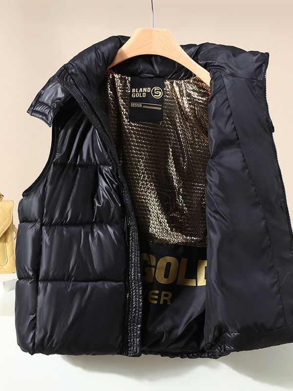 Черный Золотой хлопковый жилет Женская осень и зима 2023 Новый стильный жилет со взрывами с капюшоном Жилет с отстрочкой