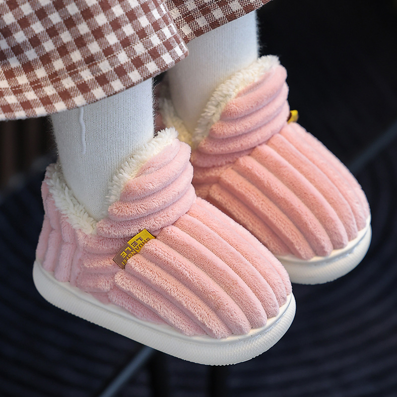 Зимняя детская сумка, хлопковые тапочки на каблуке, Нескользящие теплые пушистые тапочки для родителей и детей на флисовой подкладке, домашние детские хлопковые тапочки