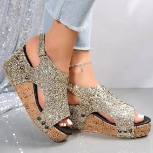 Внешняя торговля сандалии больших размеров женские 2023 сандалии на танкетке в стиле ретро с рыбьим носком женская обувь сандалии на липучке с блестками и заклепками