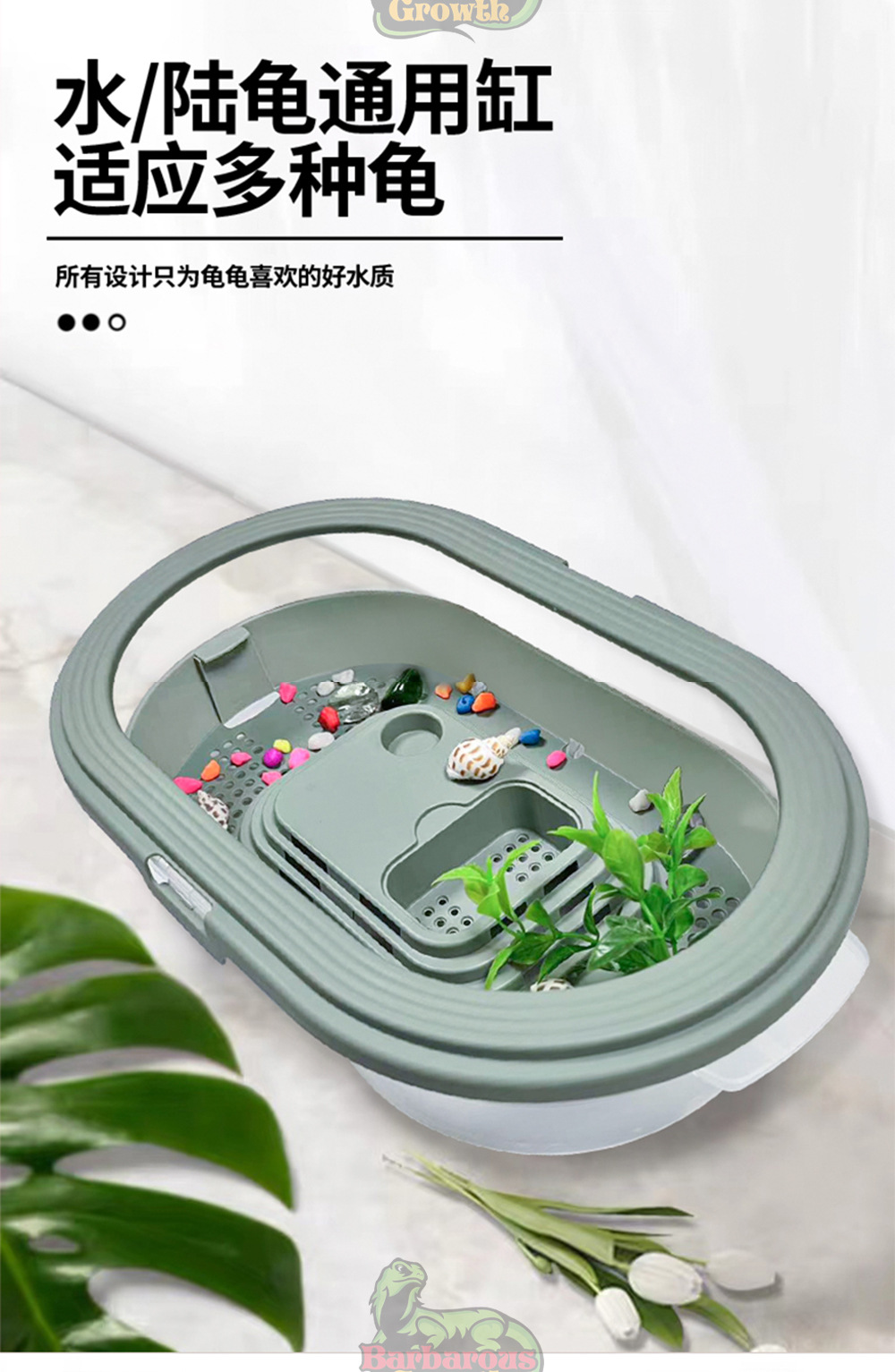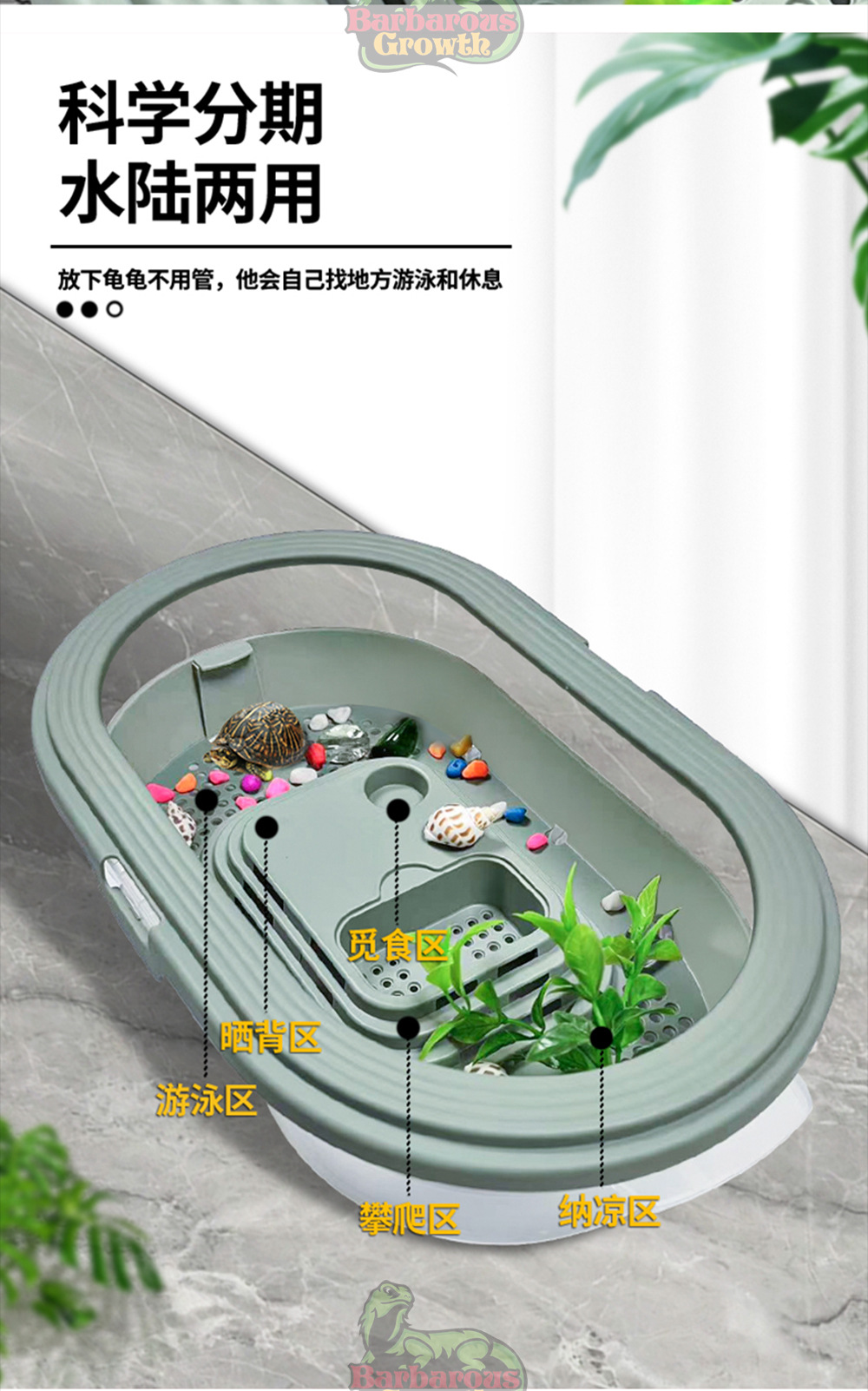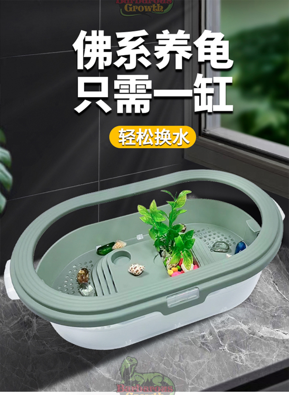 Бытовой маленький резервуар для черепах с желтым краем Экологическая коробка для кормления Особый пейзаж с солнечным столом Фильтр стола для скалолазания Бразильская коробка для черепах