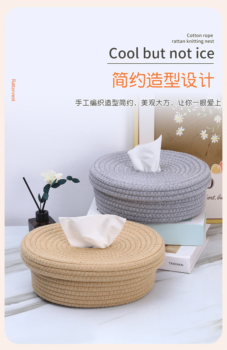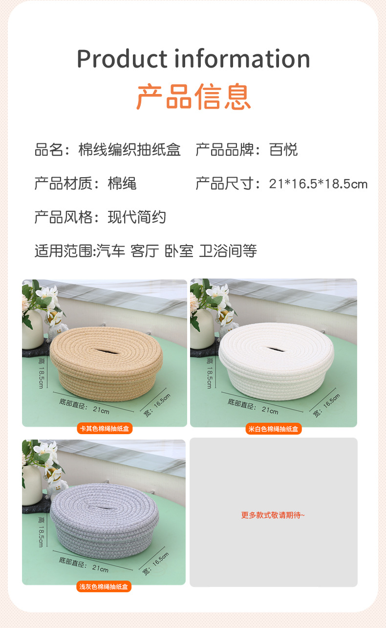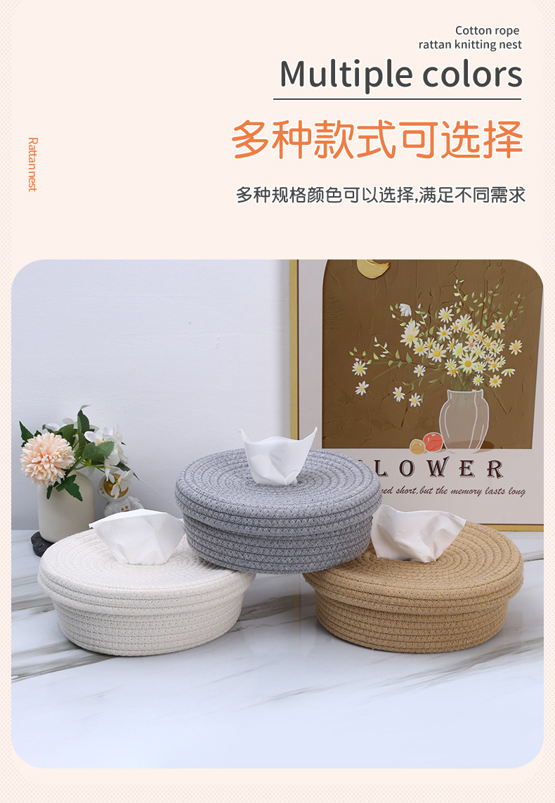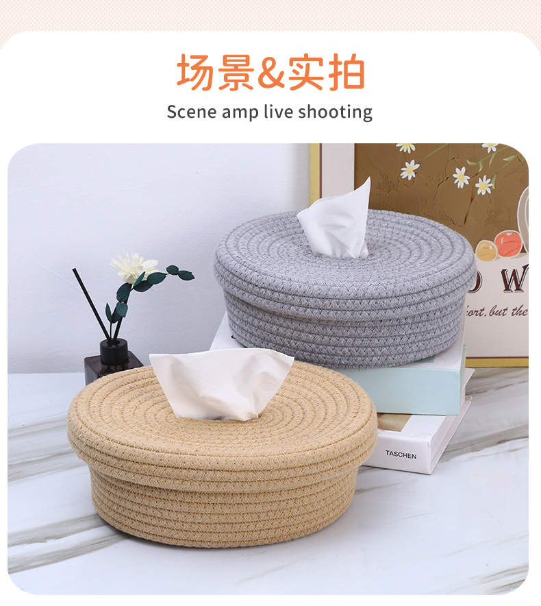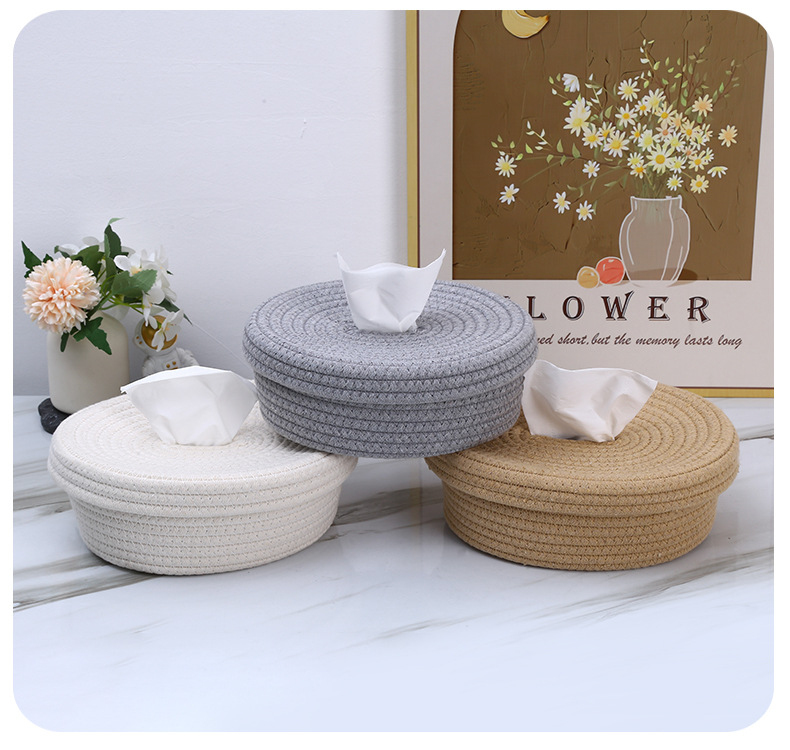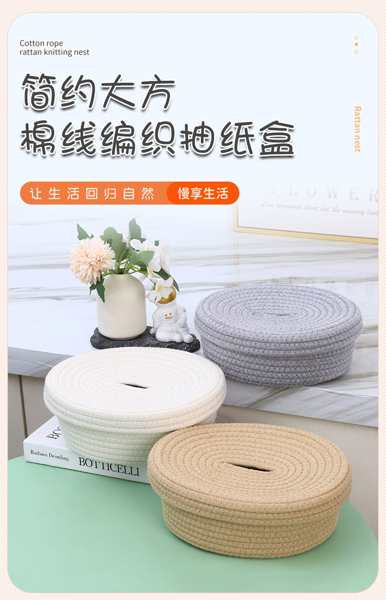 Коробка ткани веревка хаки хлопок; Кремово-белый хлопок коробка ткани веревка; Светло серый хлопок коробка ткани веревка