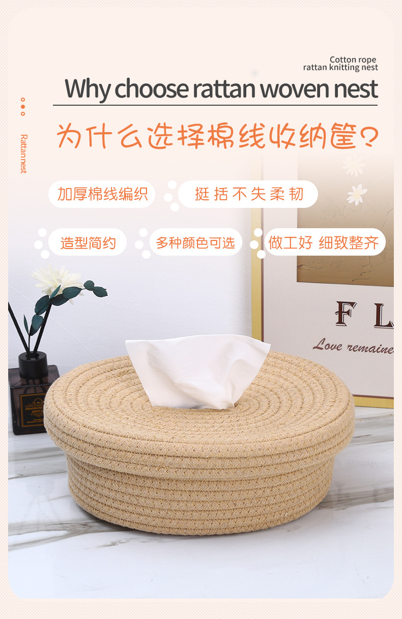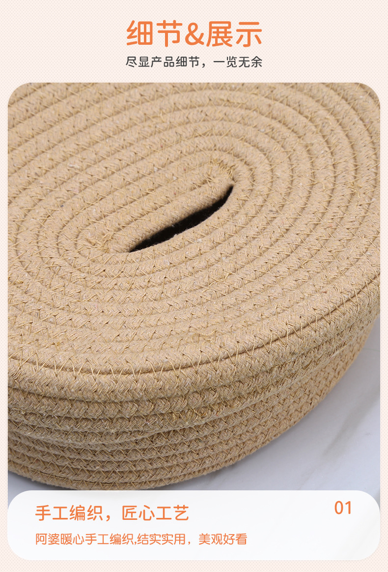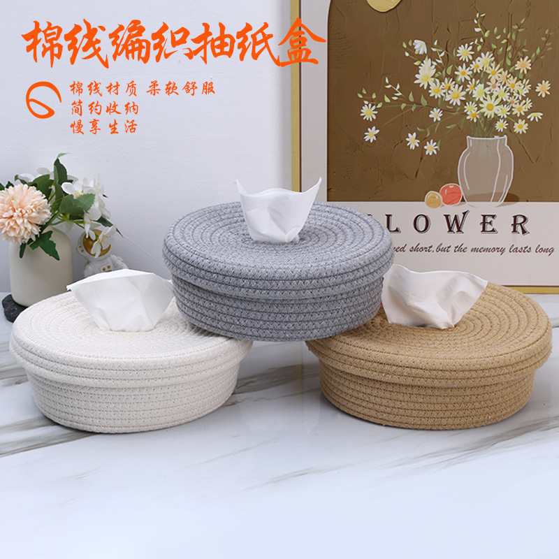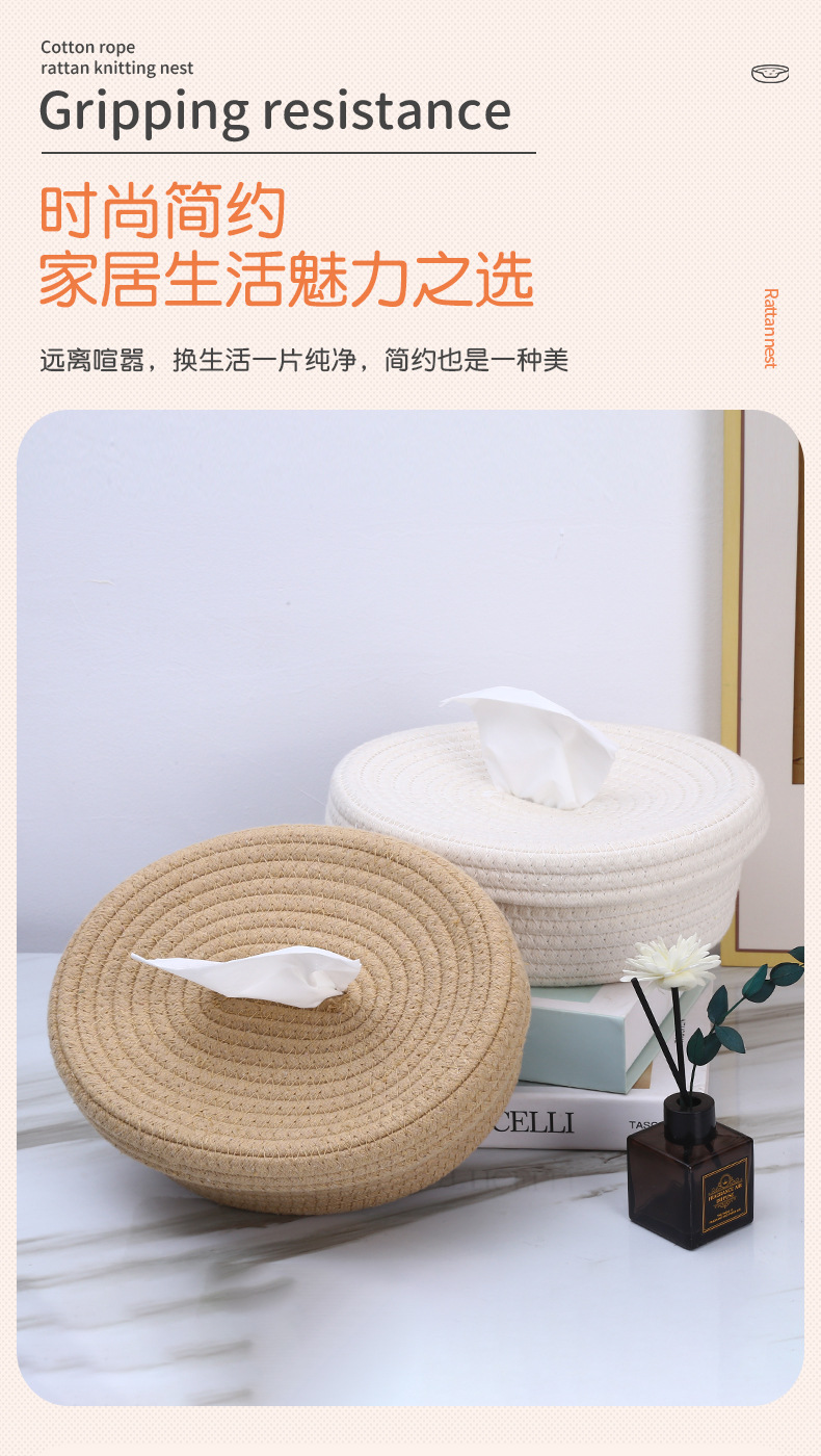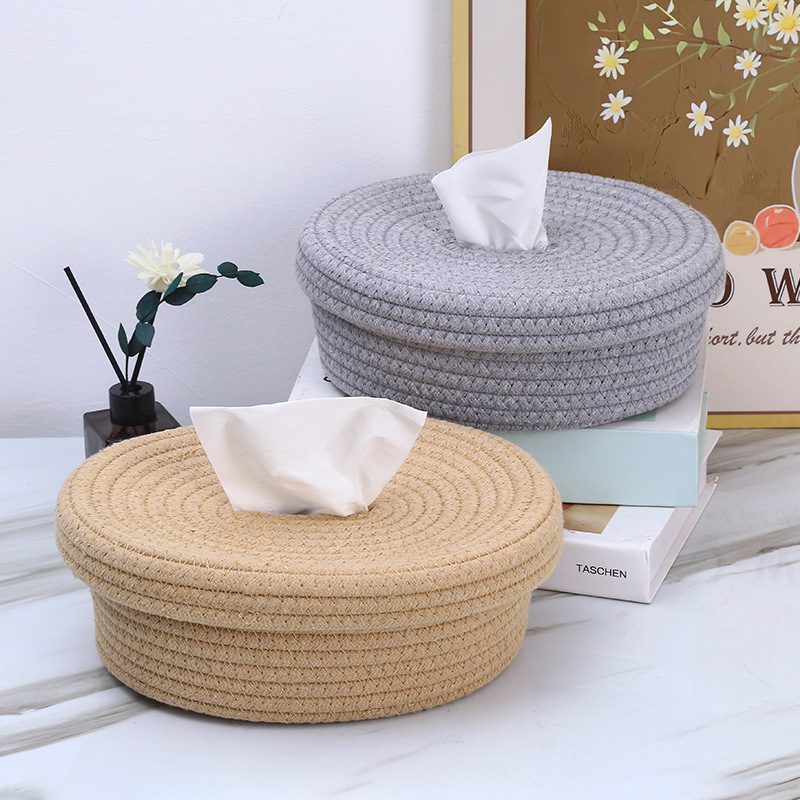 Коробка ткани веревка хаки хлопок; Кремово-белый хлопок коробка ткани веревка; Светло серый хлопок коробка ткани веревка