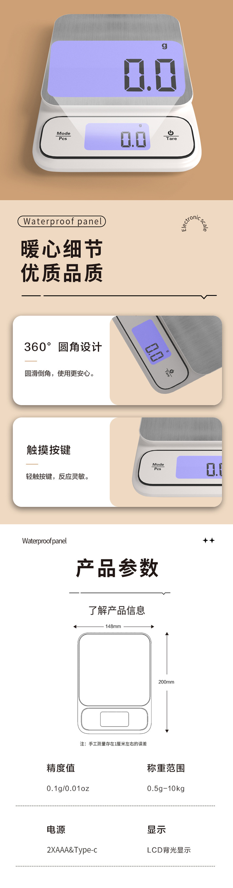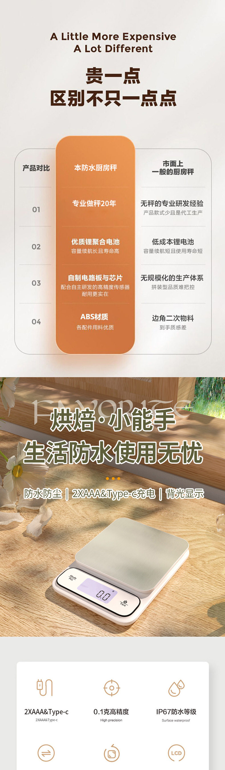 Кухонные весы Электронные весы Дисплей для смесителя для чая Умные мини-домашние весы Кофейные весы Полная Водонепроницаемая зарядка весов
