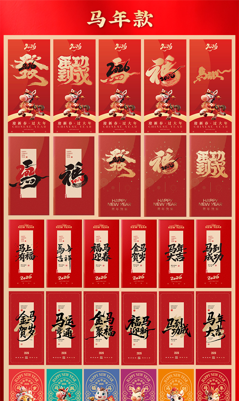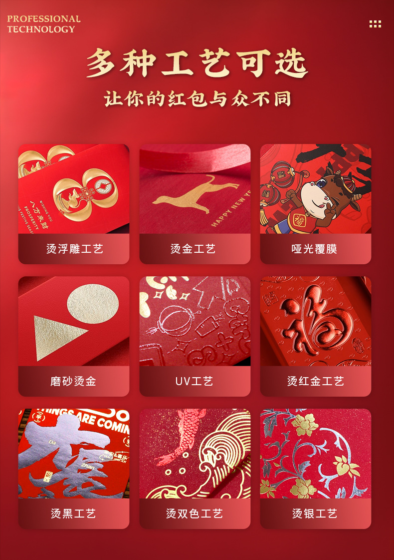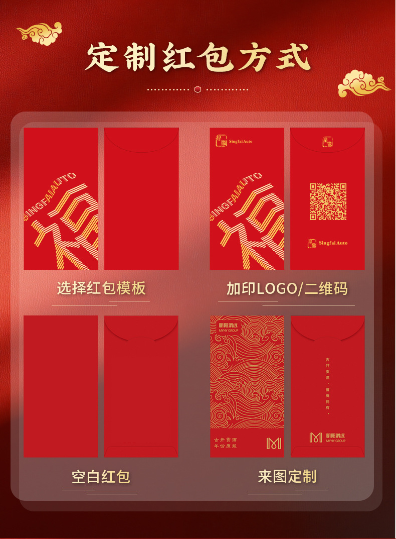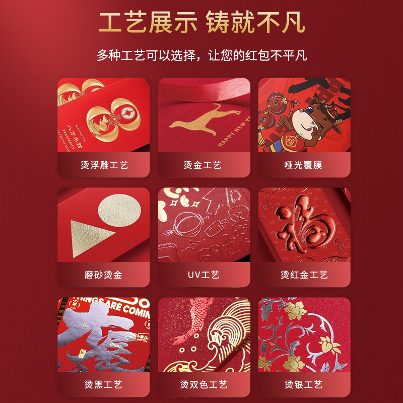 Новогодние конверты 2026 года (Год Лошади) с индивидуальным дизайном, персонализированные, с золотым тиснением, рекламным логотипом и QR-кодом.