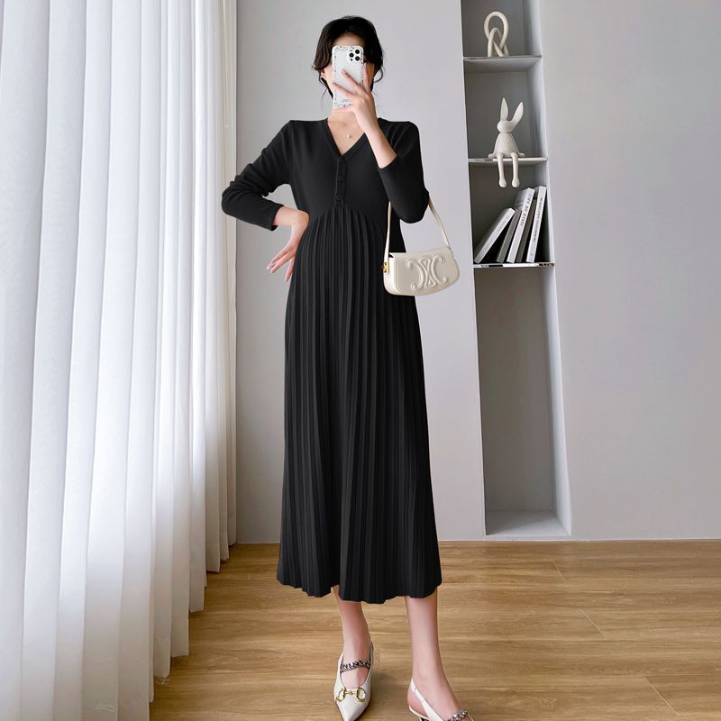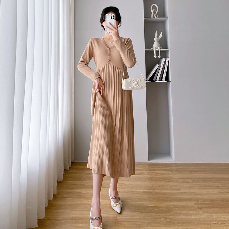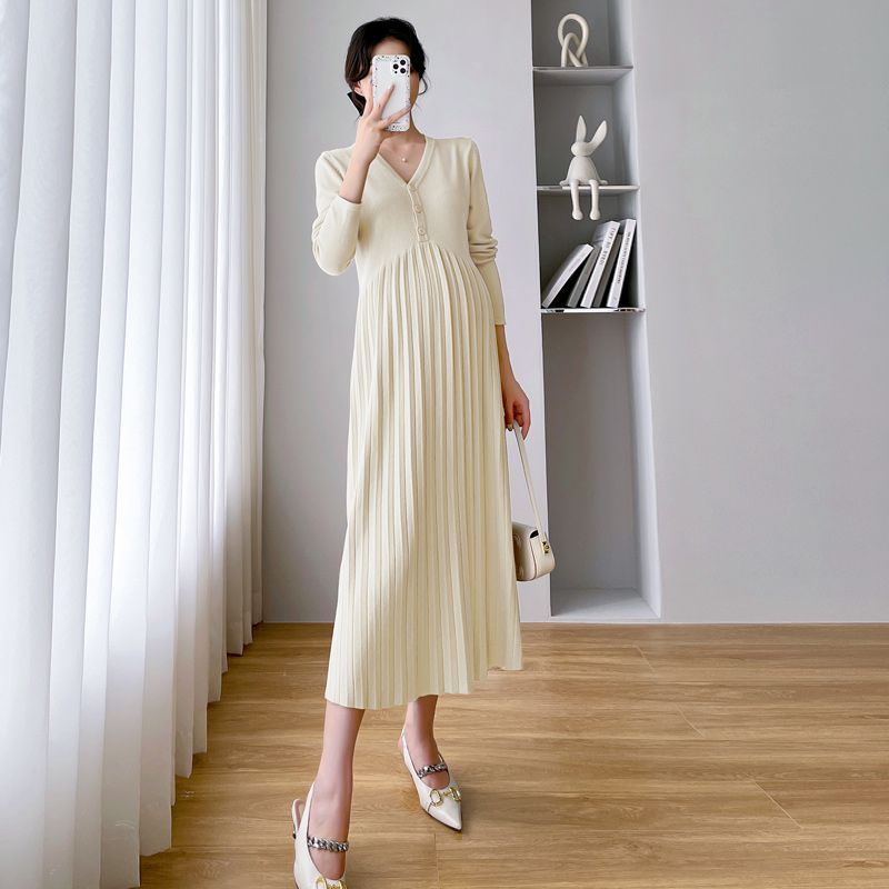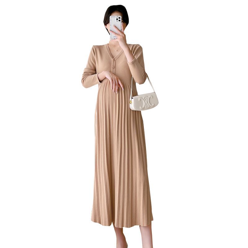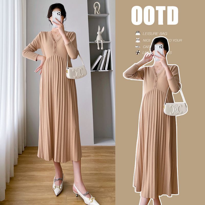 Настоящий выстрел в наличии 2023 начало осени новая простая универсальная юбка в Корейском стиле свободное базовое платье для беременных женщин, кормящих женщин