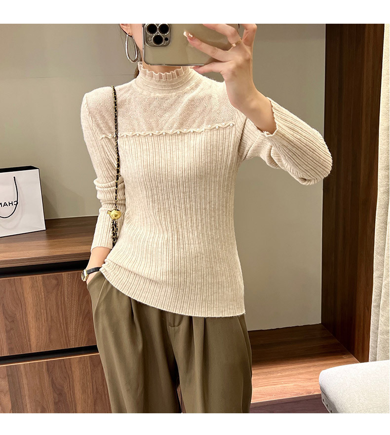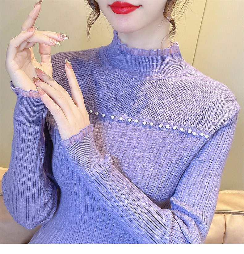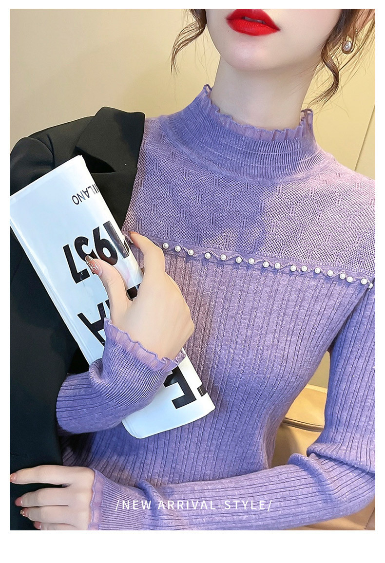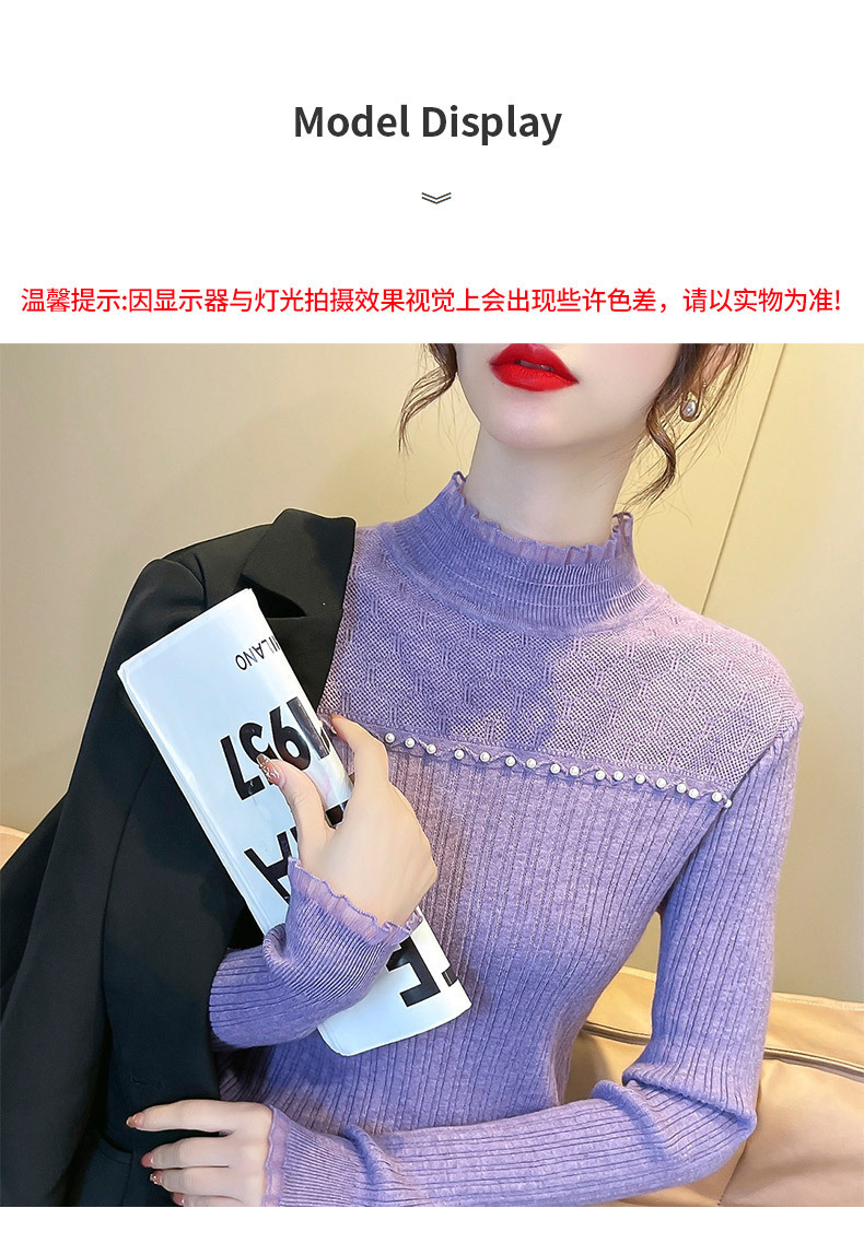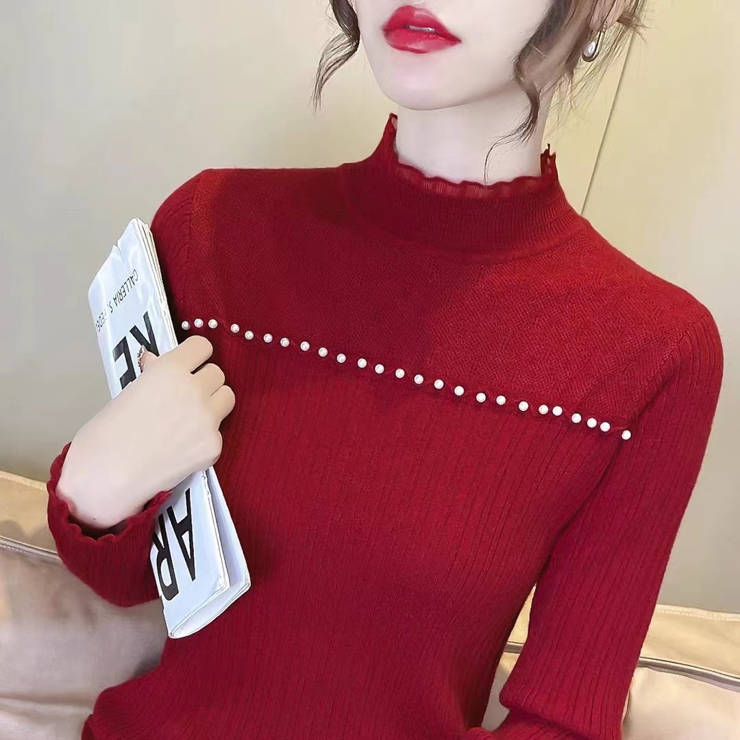 Женский кружевной свитер с высоким воротом в Корейском стиле, расшитый бисером, новый приталенный внутренний топ, вязаная нижняя рубашка в западном стиле