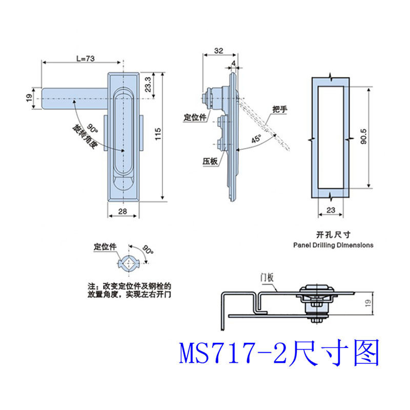 MS717-1 дверной замок из нержавеющей стали 304 MS717-2 Распределительная коробка Плоский замок Замок шкафа управления переключателем