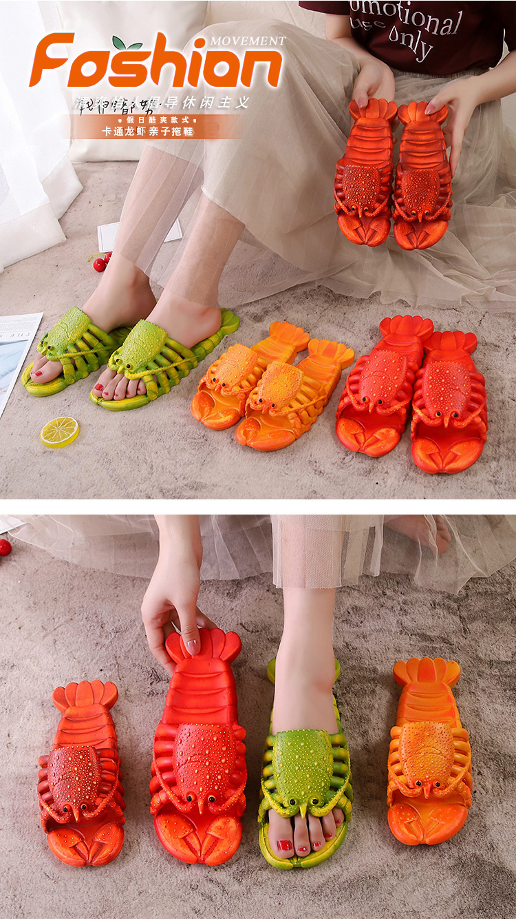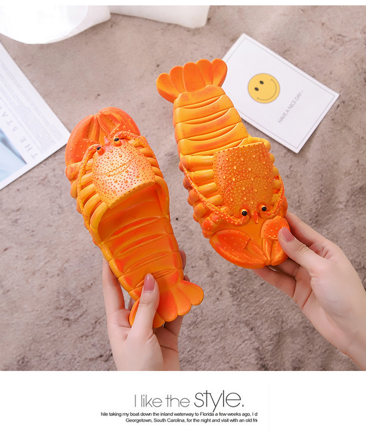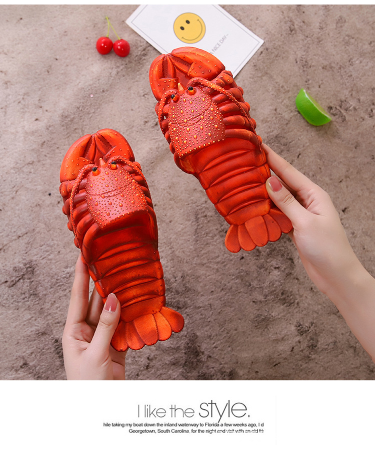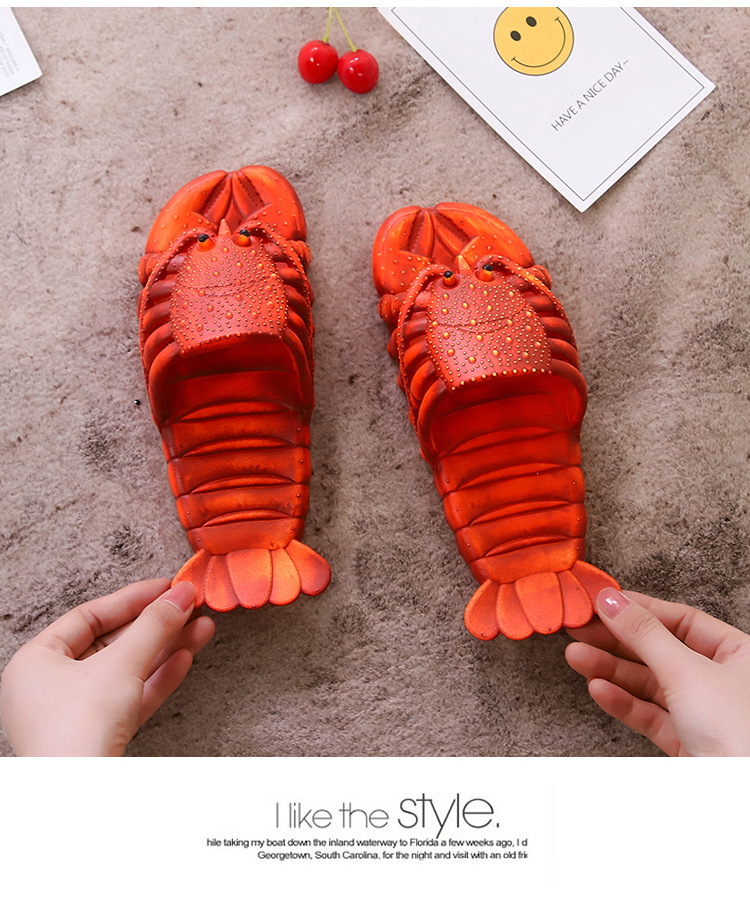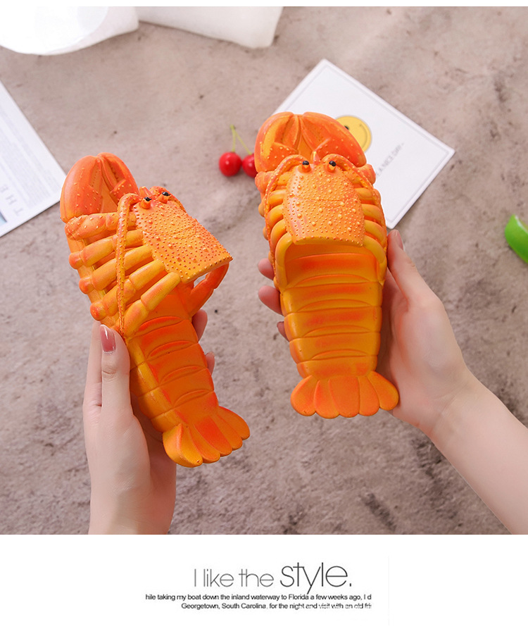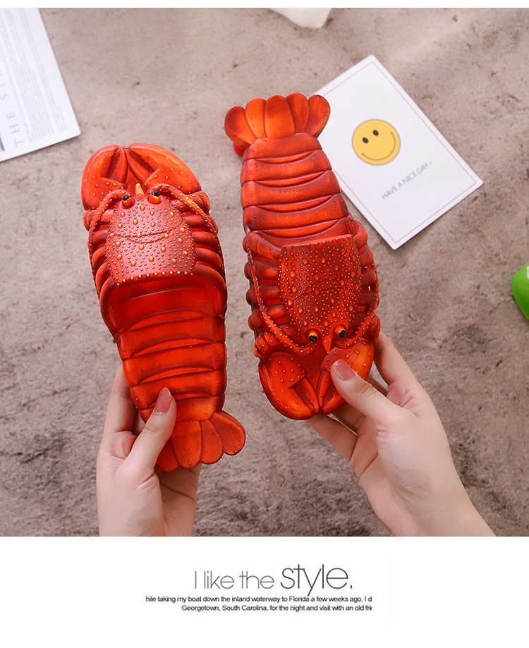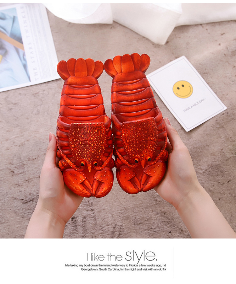 Летние мужские и женские сандалии для пар, тапочки с рисунком лобстера, забавные пляжные тапочки с раками