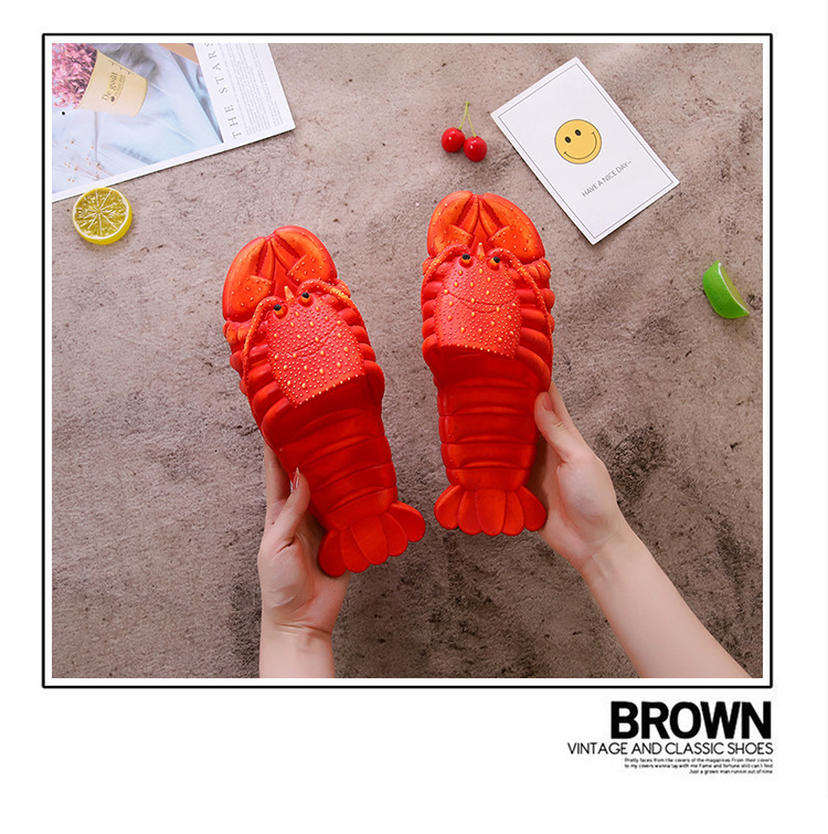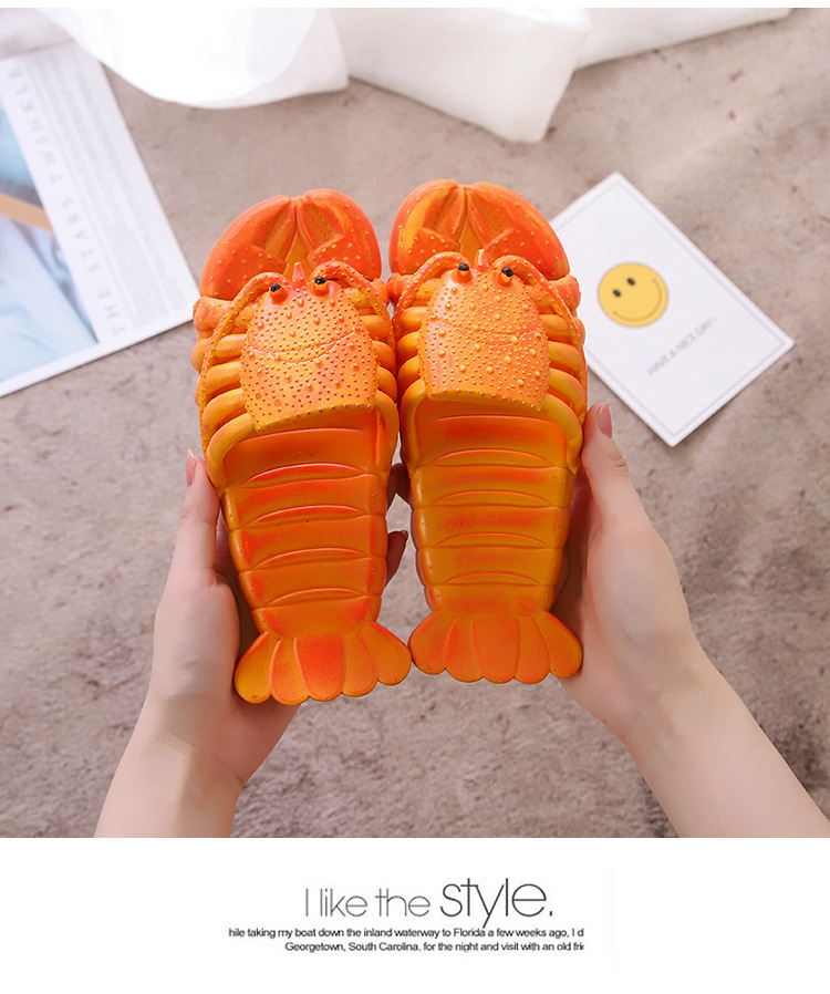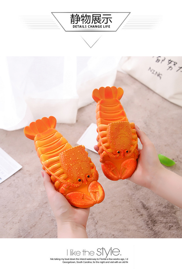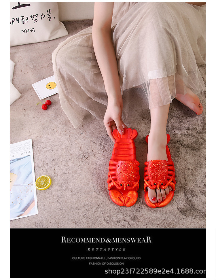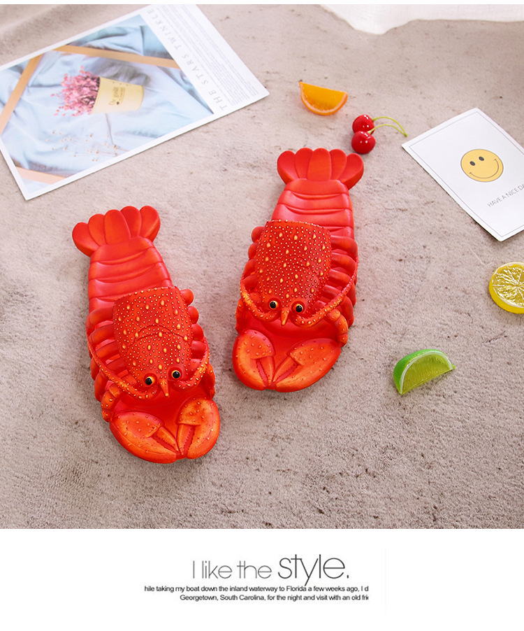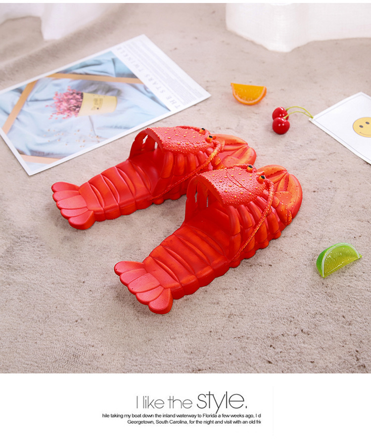 Летние мужские и женские сандалии для пар, тапочки с рисунком лобстера, забавные пляжные тапочки с раками