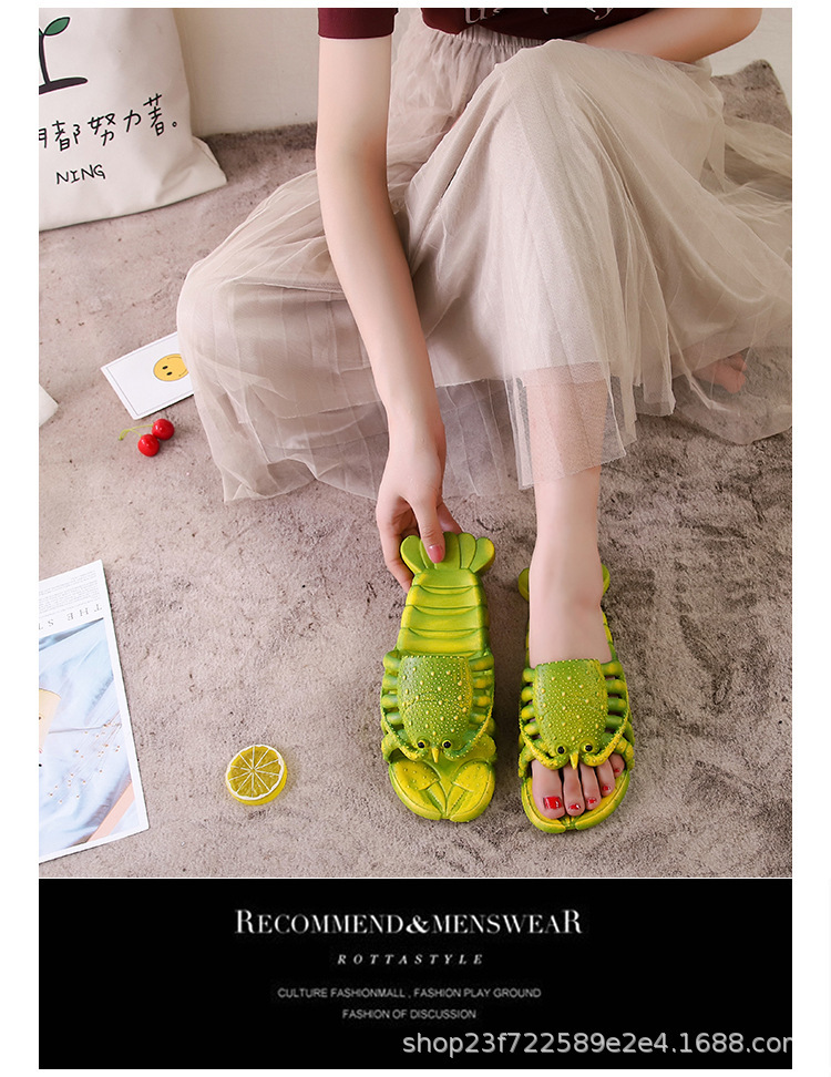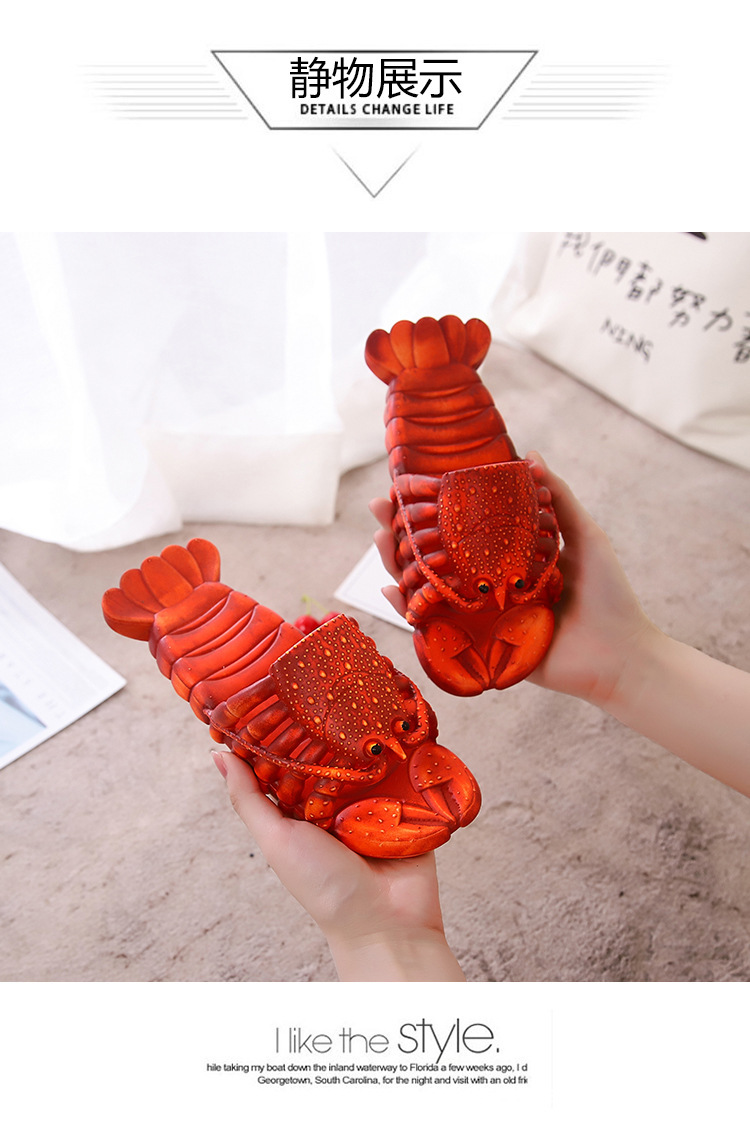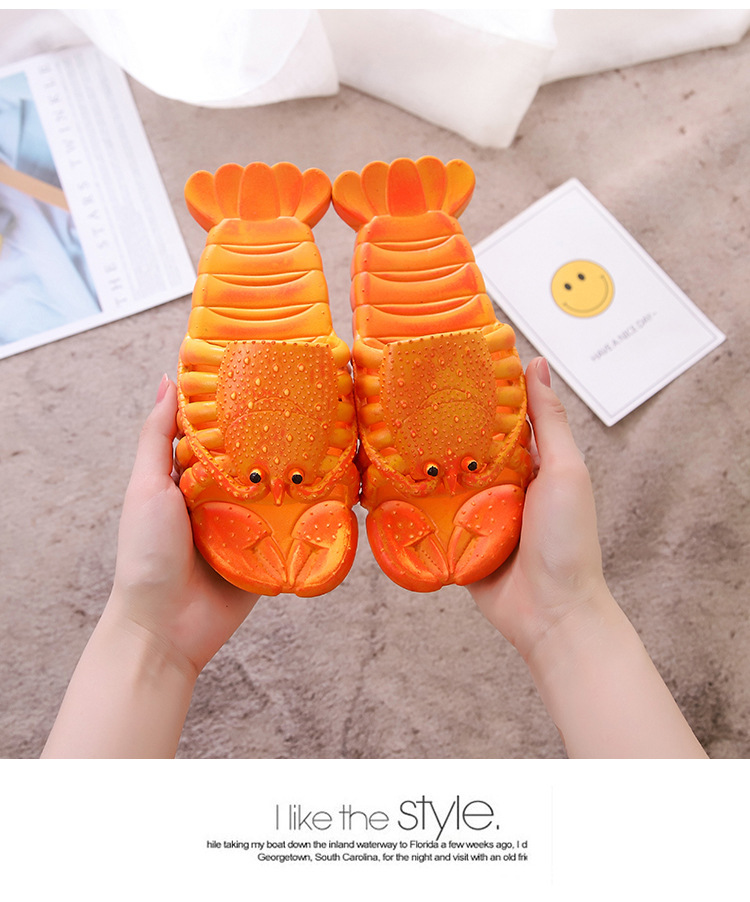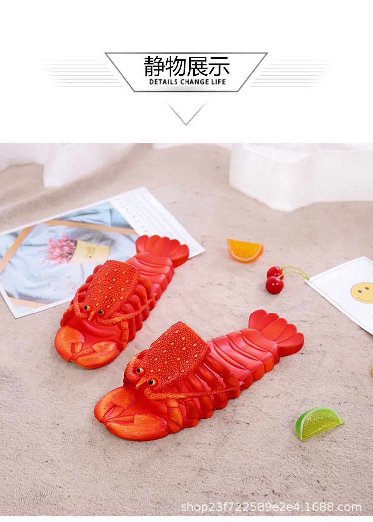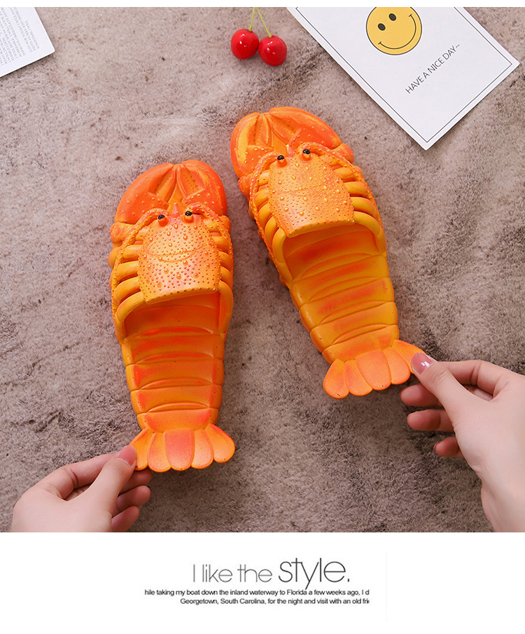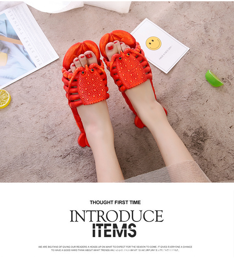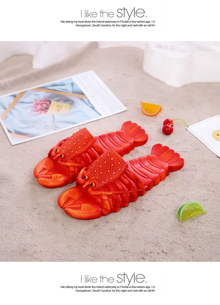 Летние мужские и женские сандалии для пар, тапочки с рисунком лобстера, забавные пляжные тапочки с раками