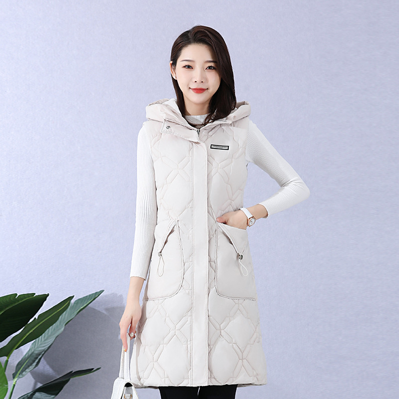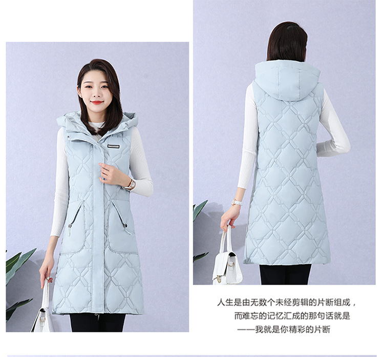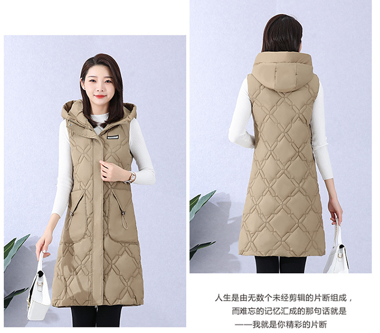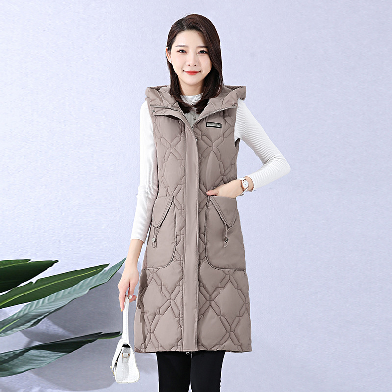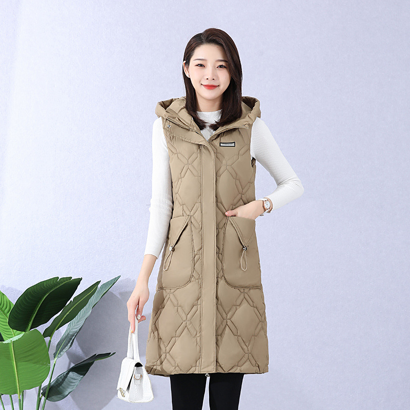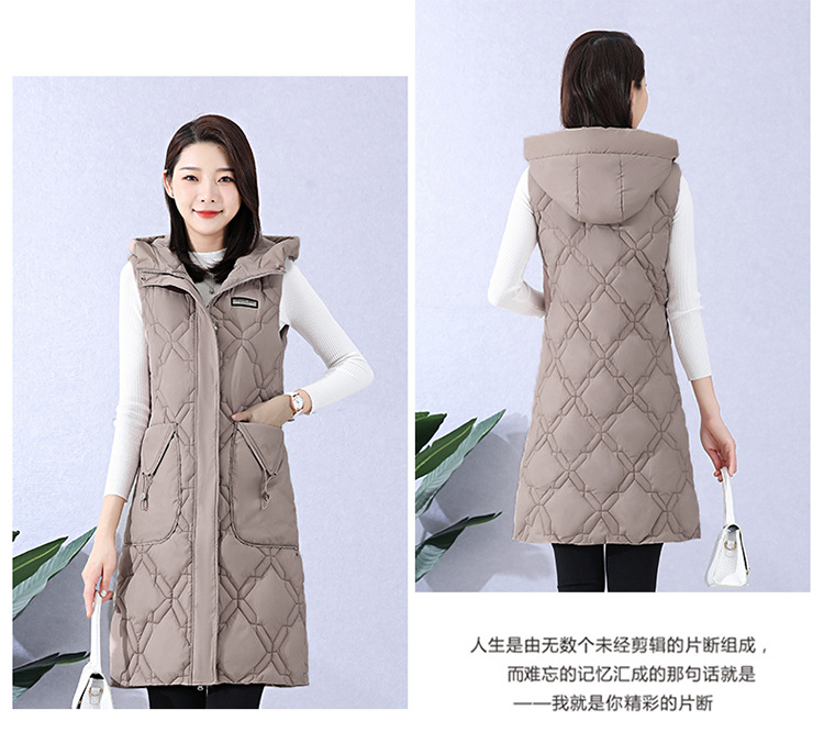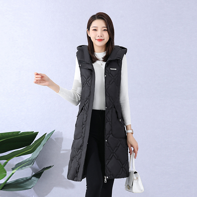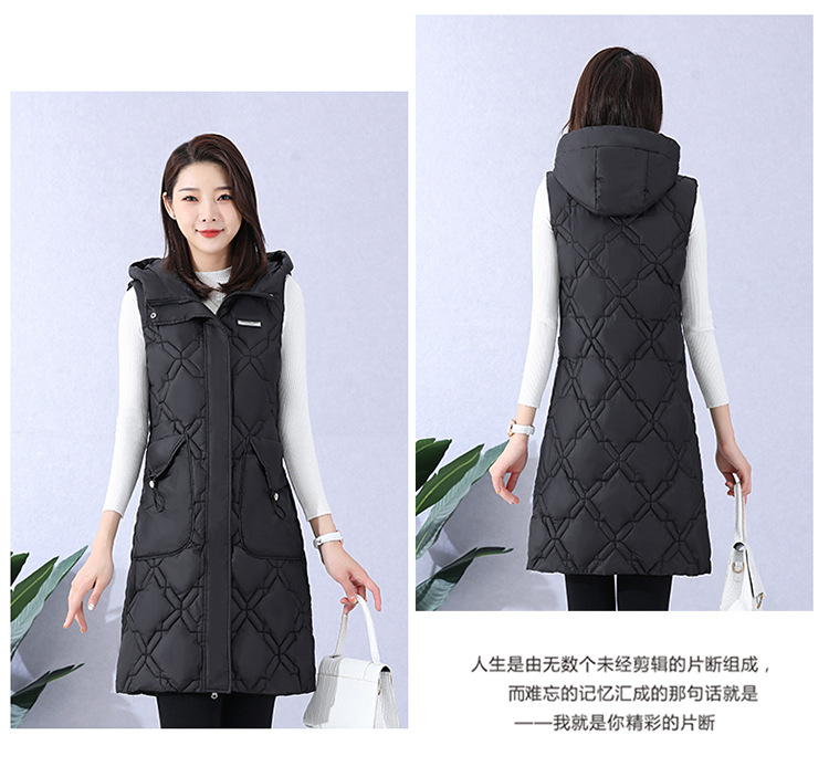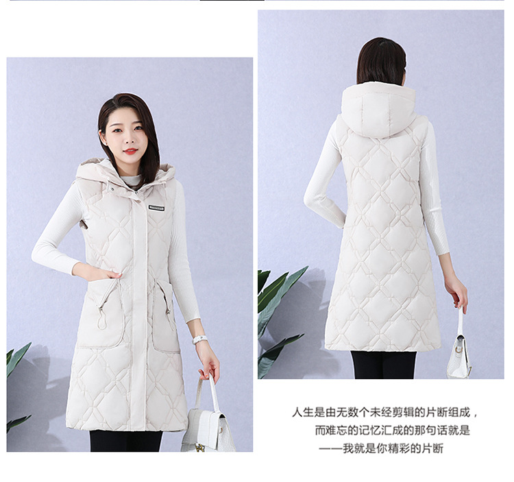 Пуховик средней длины из хлопка, Женский южнокорейский приталенный Ромбический жилет, Модный Элегантный жилет без рукавов с капюшоном, куртка