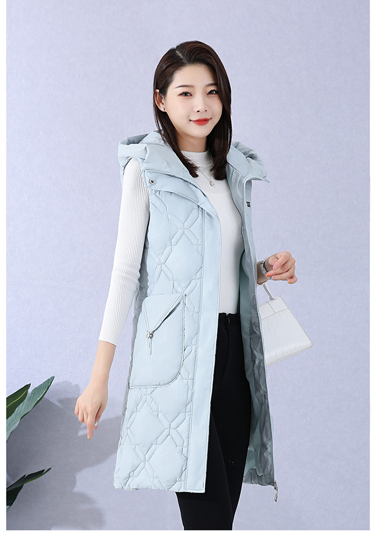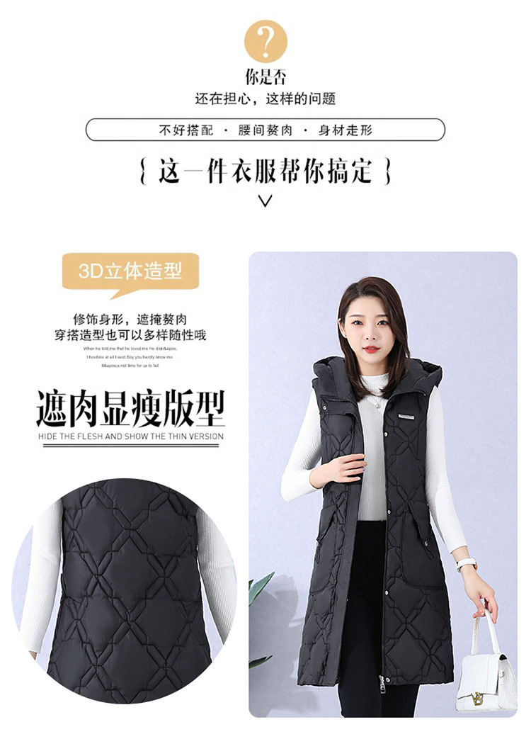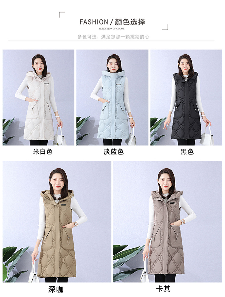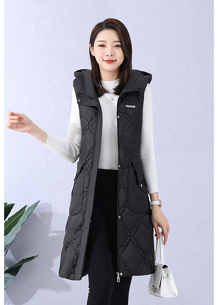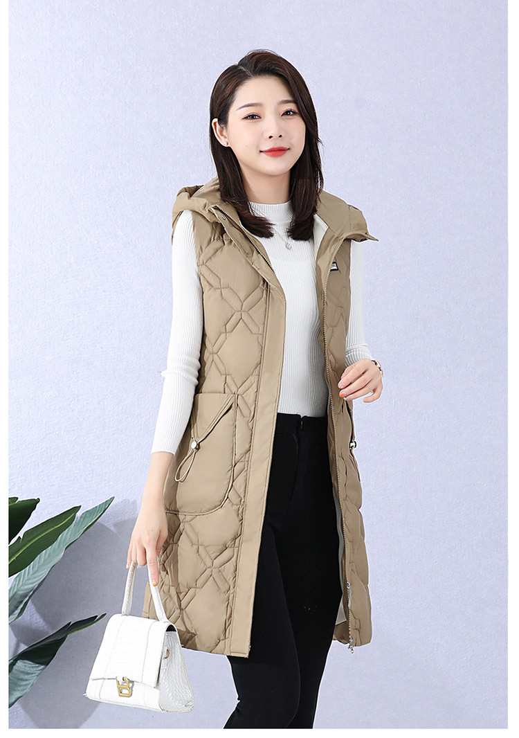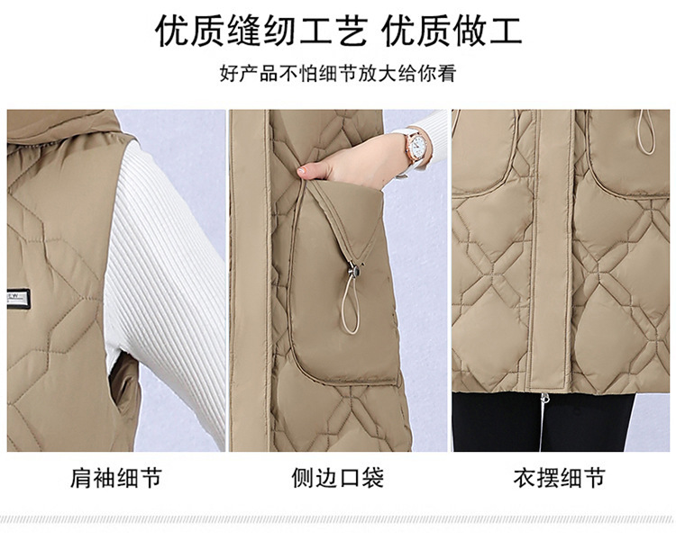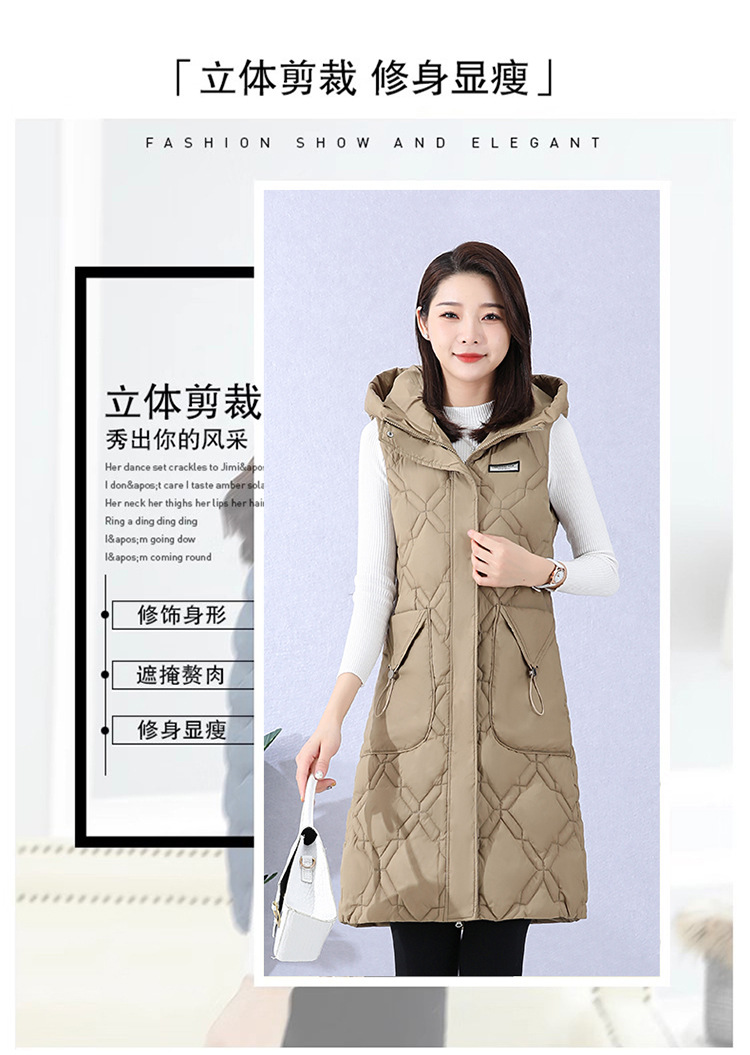 Пуховик средней длины из хлопка, Женский южнокорейский приталенный Ромбический жилет, Модный Элегантный жилет без рукавов с капюшоном, куртка