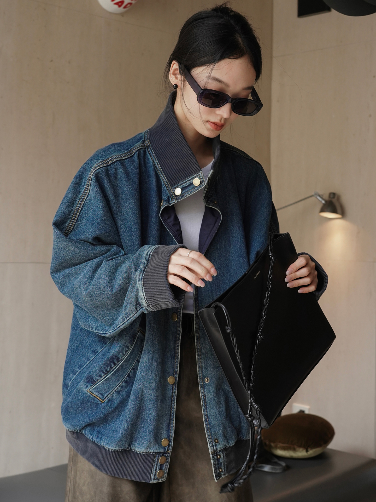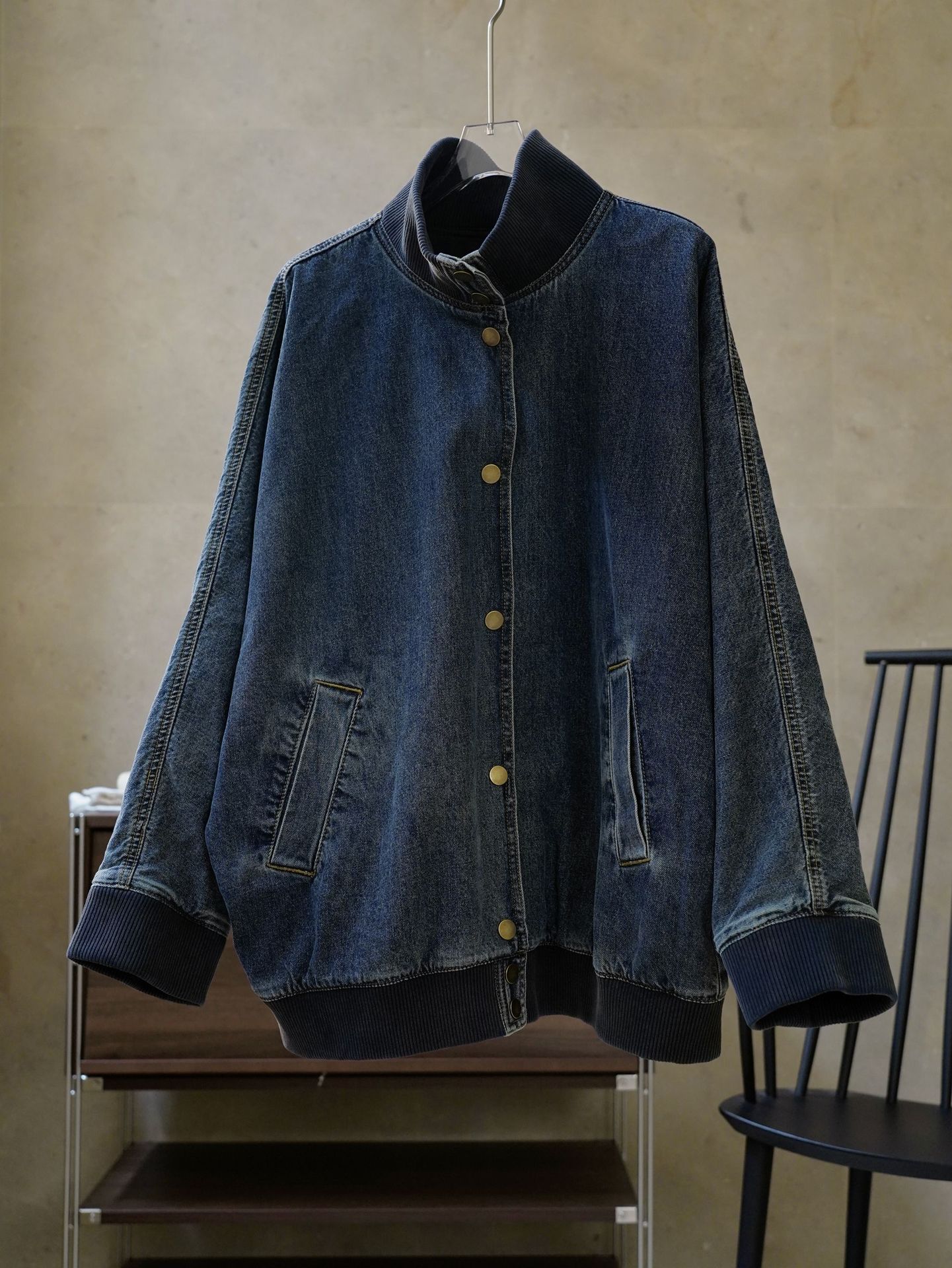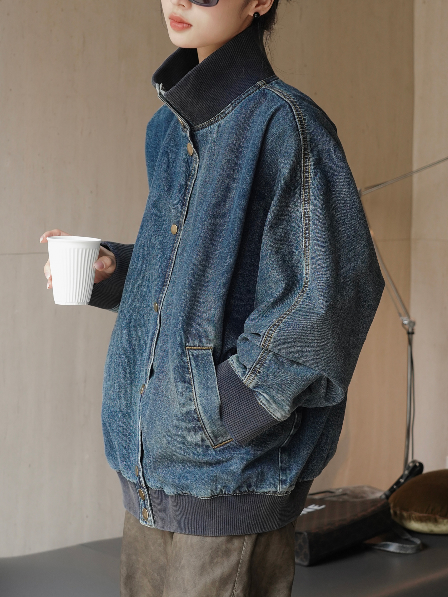 LOVU Осень Новый американский стиль ретро уличный стиль Вертикальный Воротник Джинсовая мотоциклетная куртка свободный профиль повседневная куртка