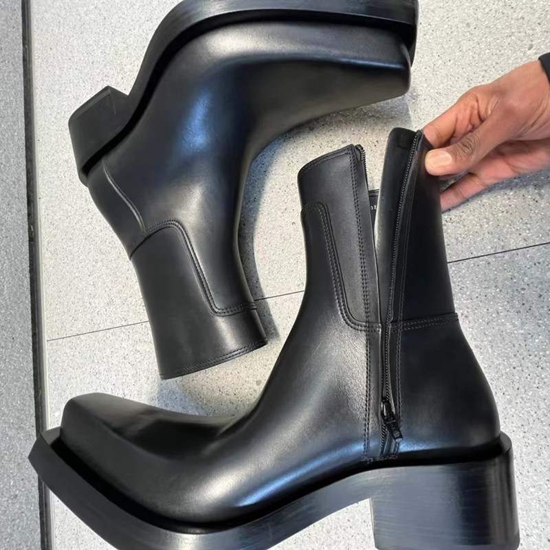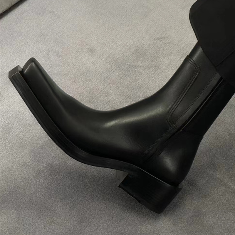 Унисекс ботинки Мартин с квадратным носком, осень 2025, на молнии сбоку, средней высоты, на массивном каблуке, с толстой подошвой, с острым носком, короткие ботинки Челси, ретро