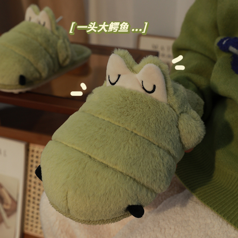 Тапочки из крокодилового хлопка, женские зимние милые домашние зимние тапочки с героями мультфильмов, теплые плюшевые хлопковые тапочки для пар, Лунная обувь