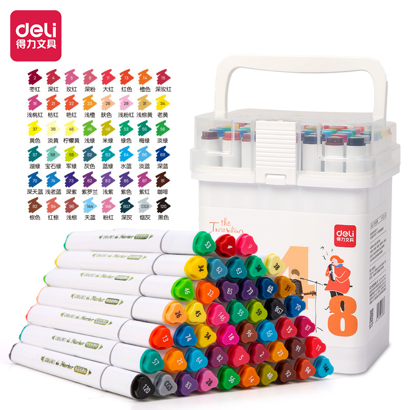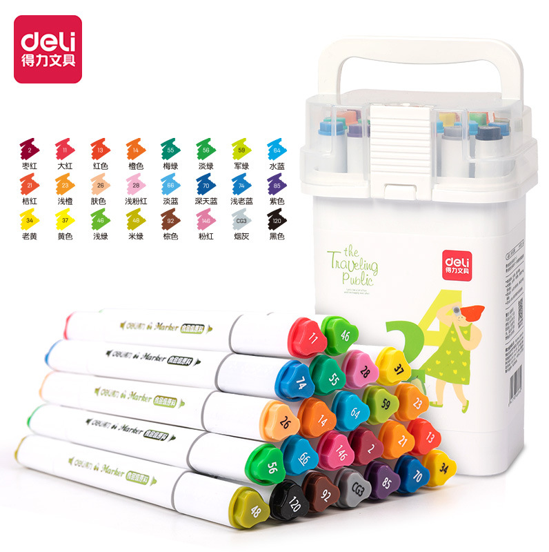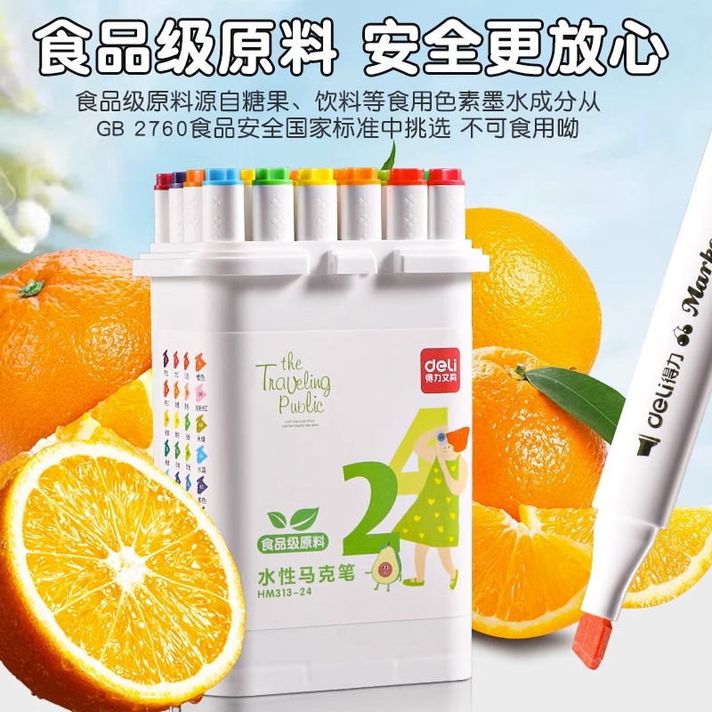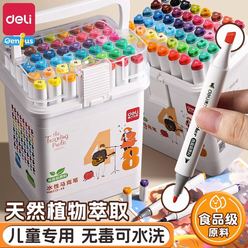 Маркер для пищевых продуктов Deli, 24-цветная детская Нетоксичная моющаяся двуглавая Акварельная ручка на водной основе для студентов, 48 цветов