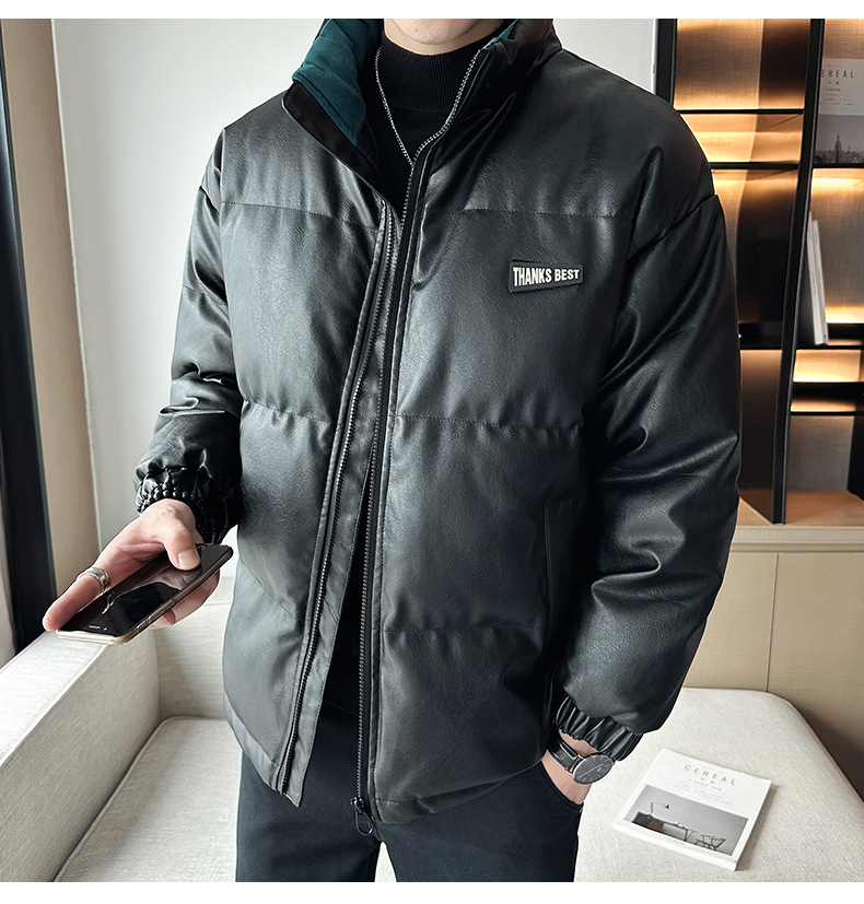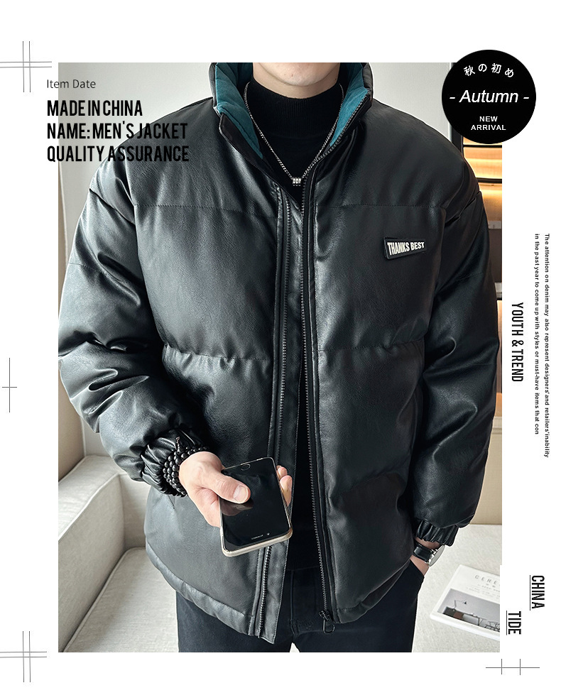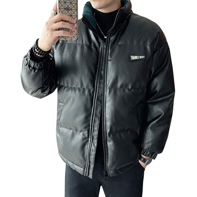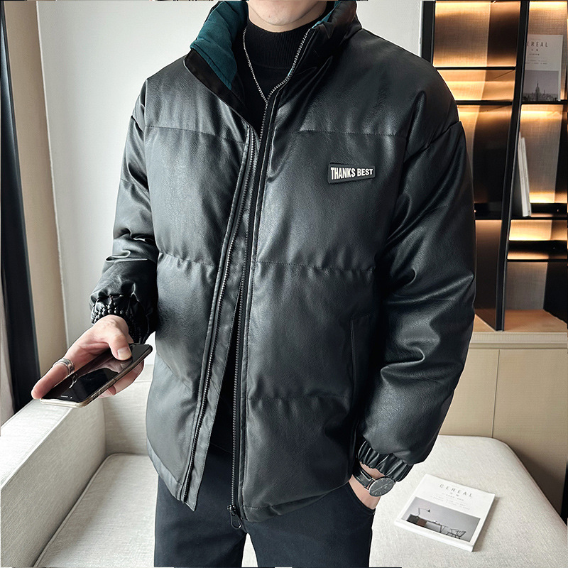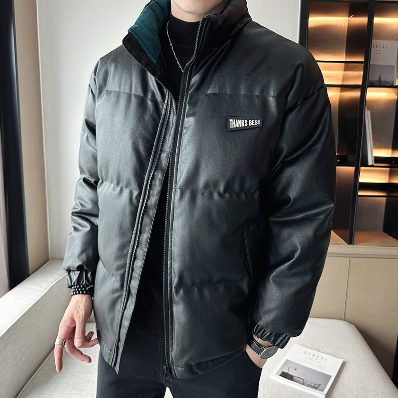 Молодежное кожаное пальто с хлопковой подкладкой в Корейском стиле, мужской зимний утепленный теплый костюм для хлеба, новое универсальное пальто с хлопковой подкладкой, Простое Повседневное модное пальто с хлопковой подкладкой