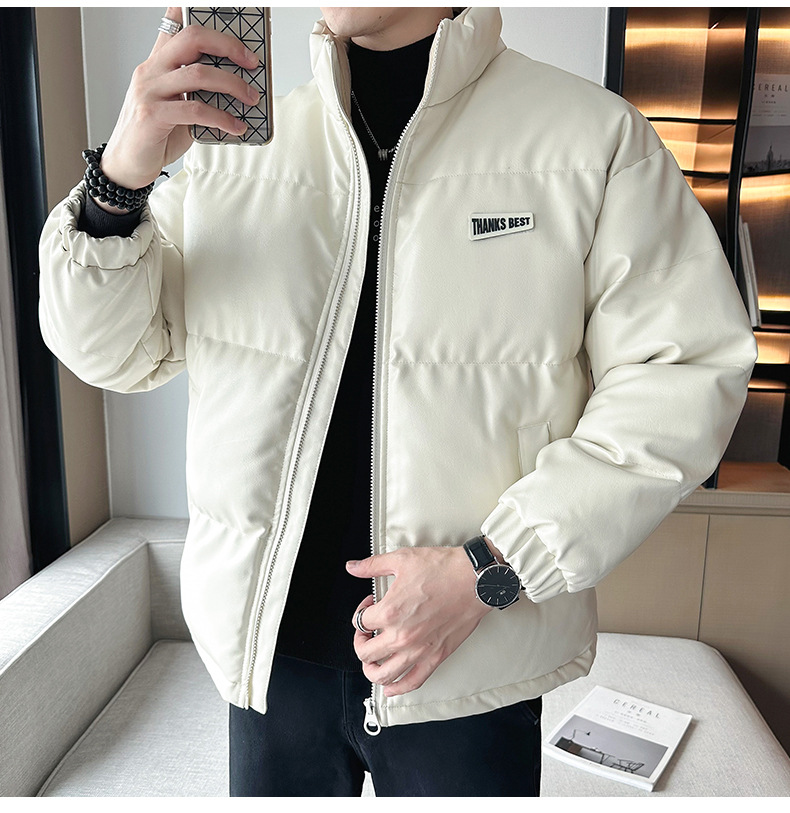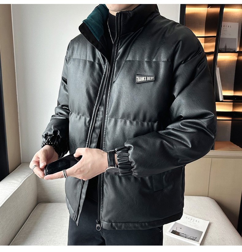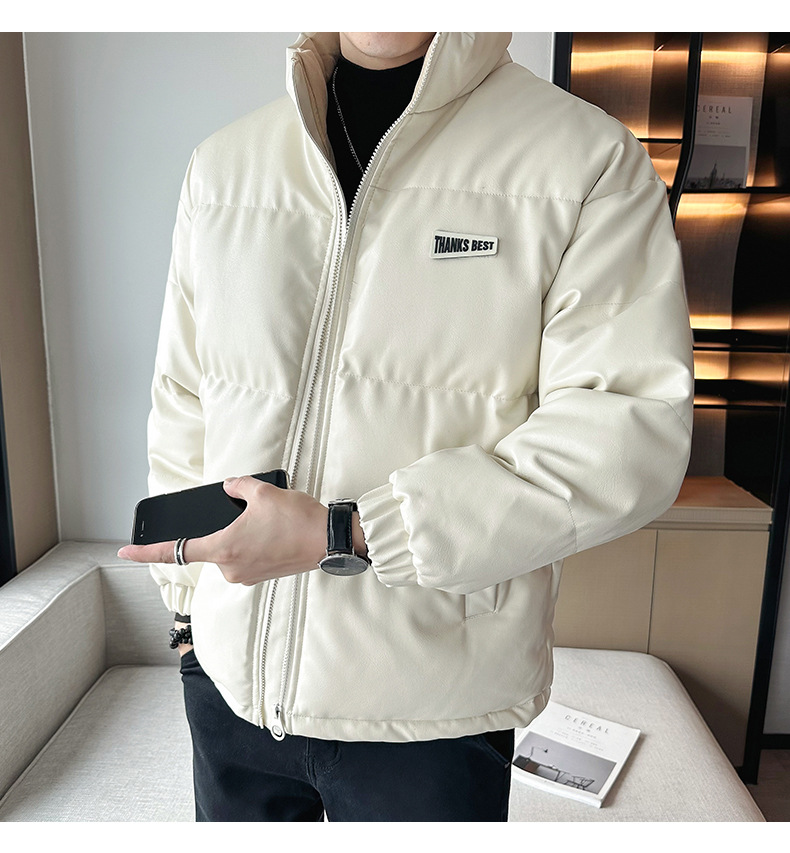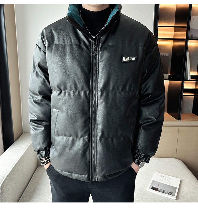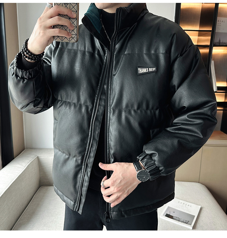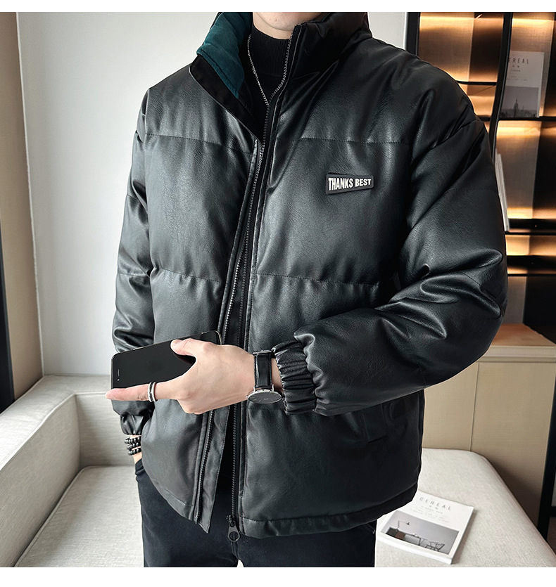 Молодежное кожаное пальто с хлопковой подкладкой в Корейском стиле, мужской зимний утепленный теплый костюм для хлеба, новое универсальное пальто с хлопковой подкладкой, Простое Повседневное модное пальто с хлопковой подкладкой