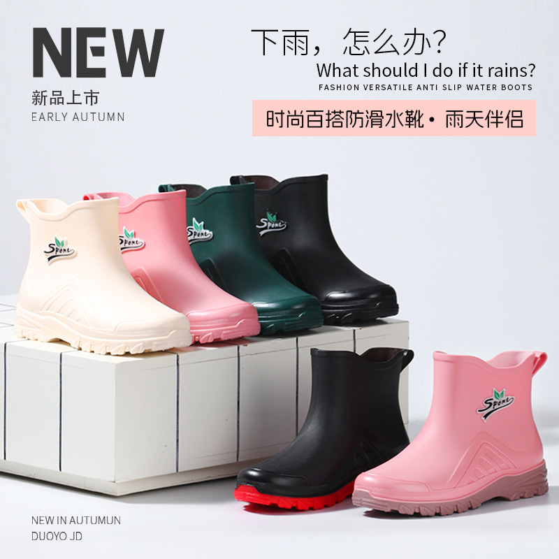 Прямые поставки с фабрики: модные женские резиновые сапоги, уличная обувь, взрослые водонепроницаемые сапоги, непромокаемые бахилы, короткие резиновые сапоги оптом.