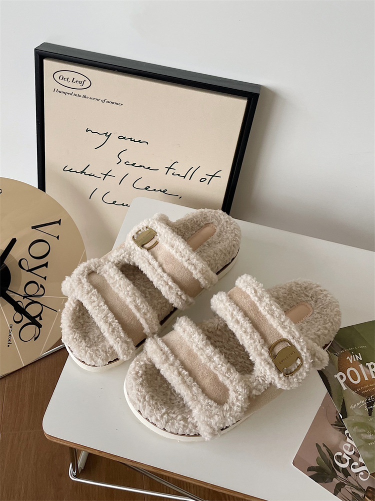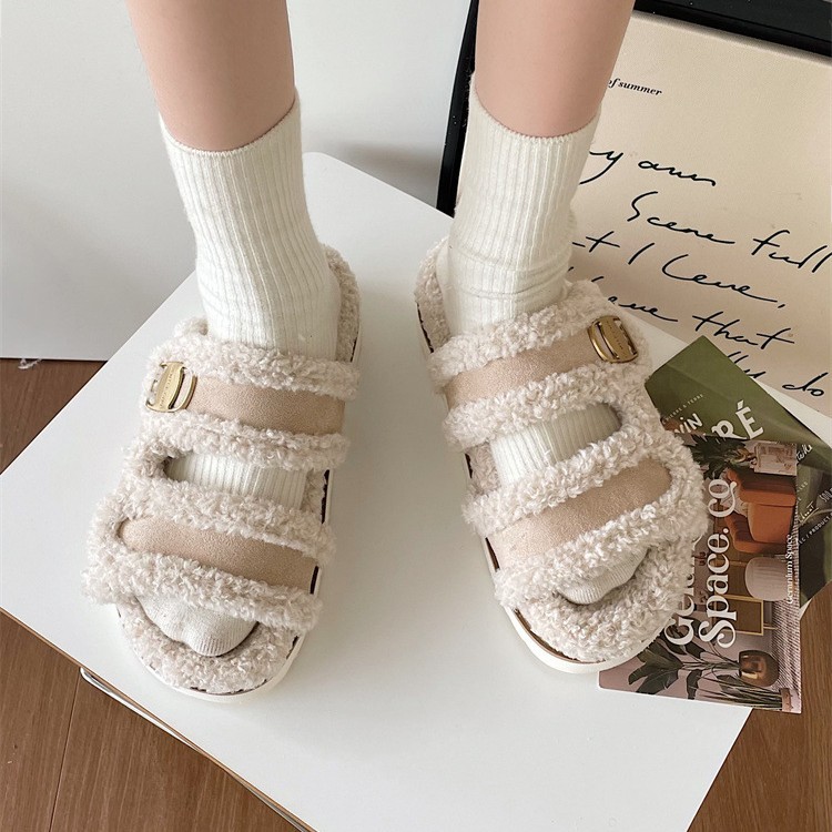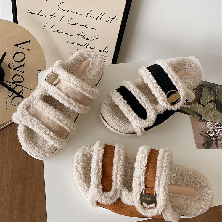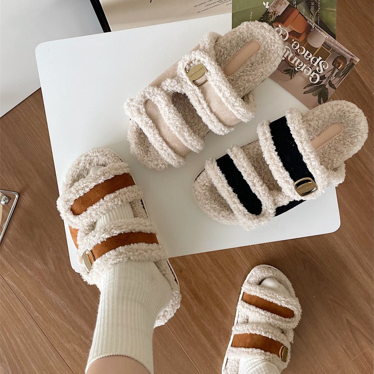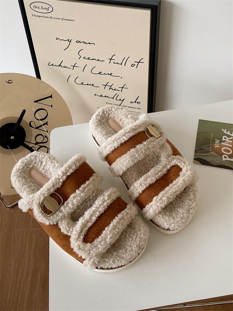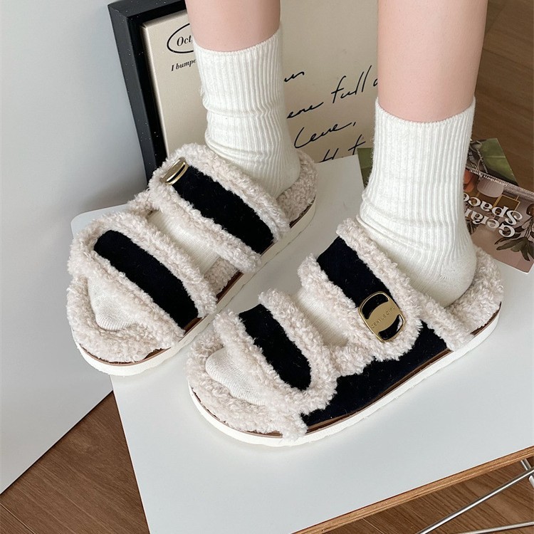 Тапочки на плоской подошве Zhao Lusi 2023, Новинка осени и зимы, повседневная обувь с открытым носком, женская обувь с пряжкой