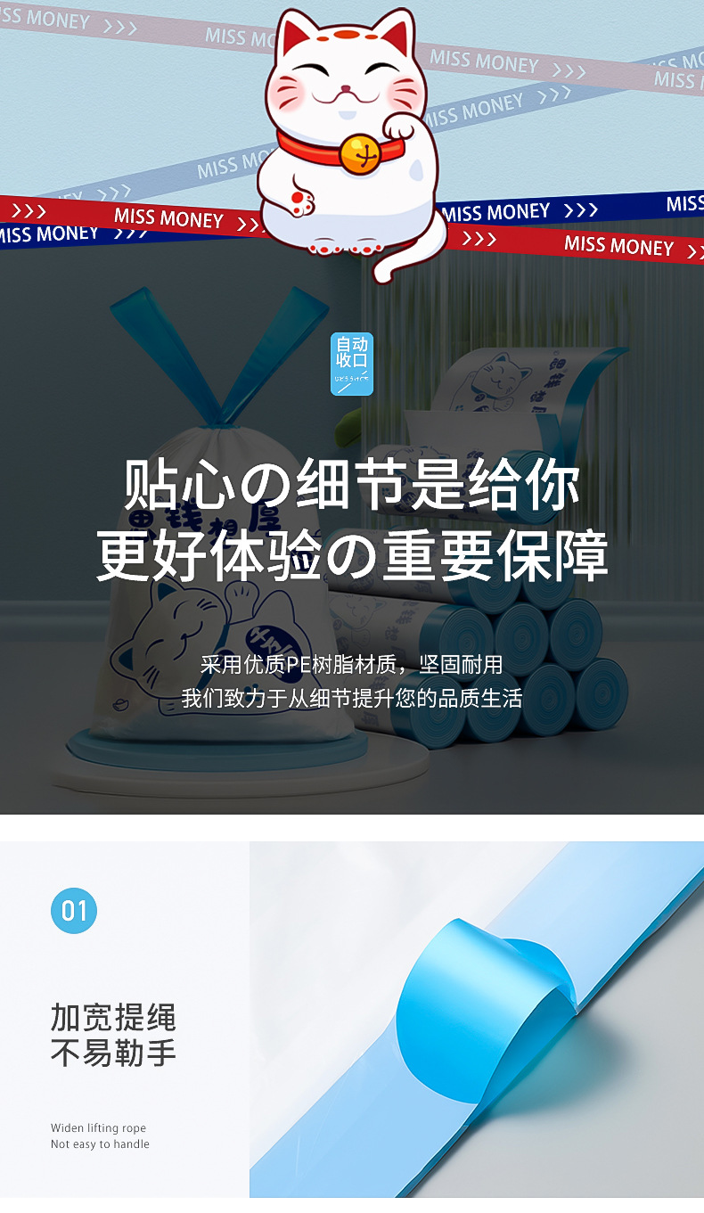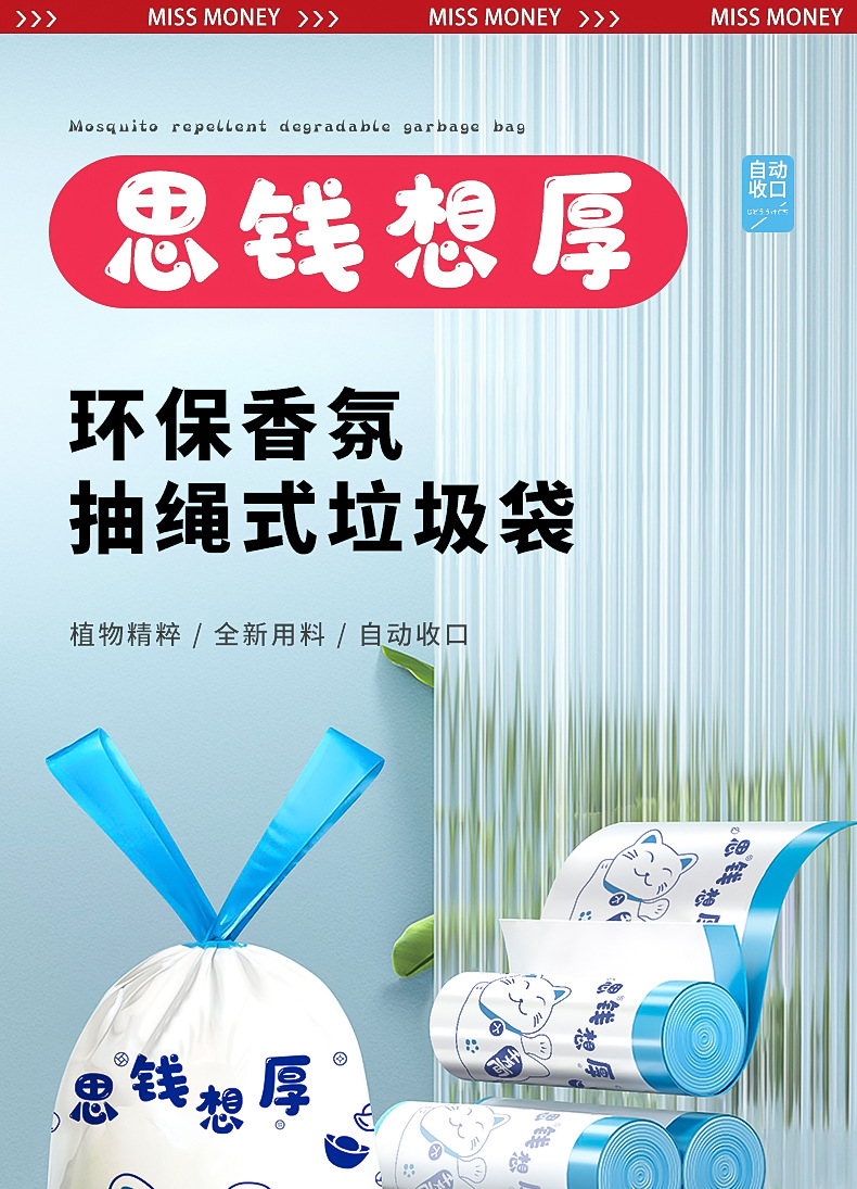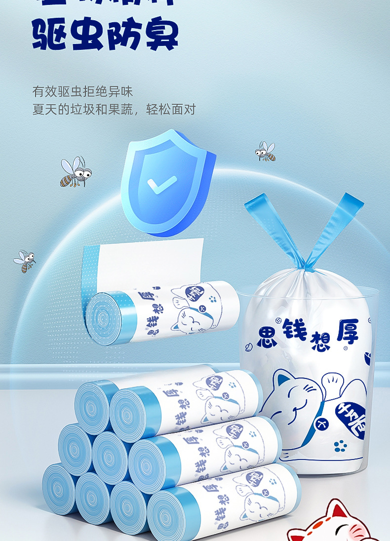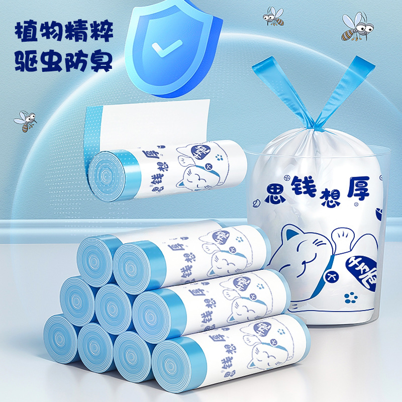 Мешок для мусора с принтом аромата полыни, на завязках, утолщенный, для дома, кухонный, прочный, большой пластиковый пакет оптом