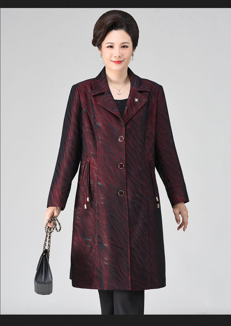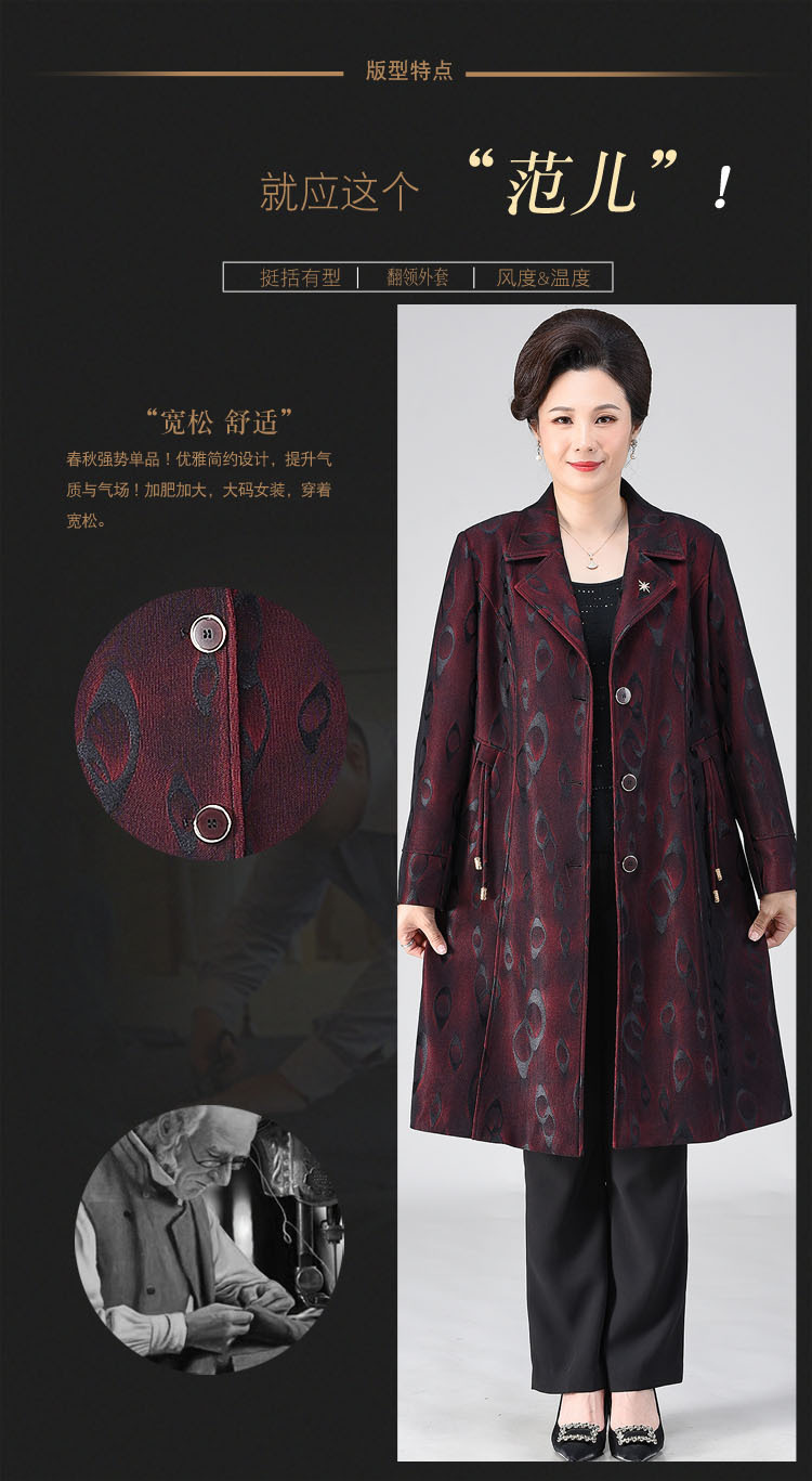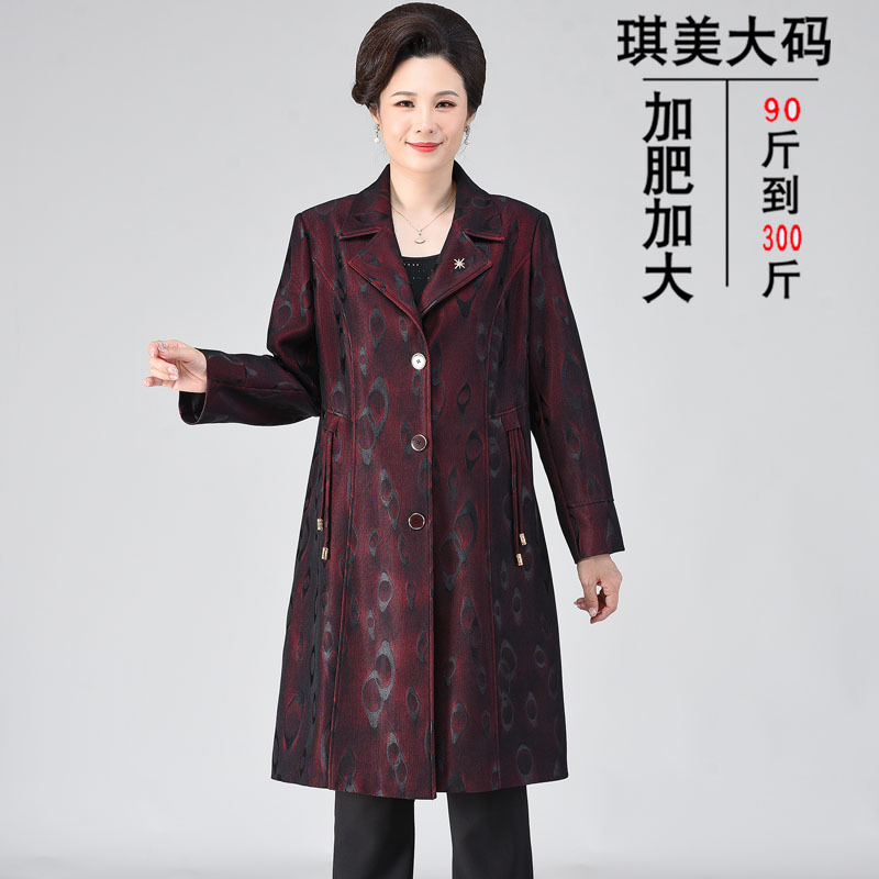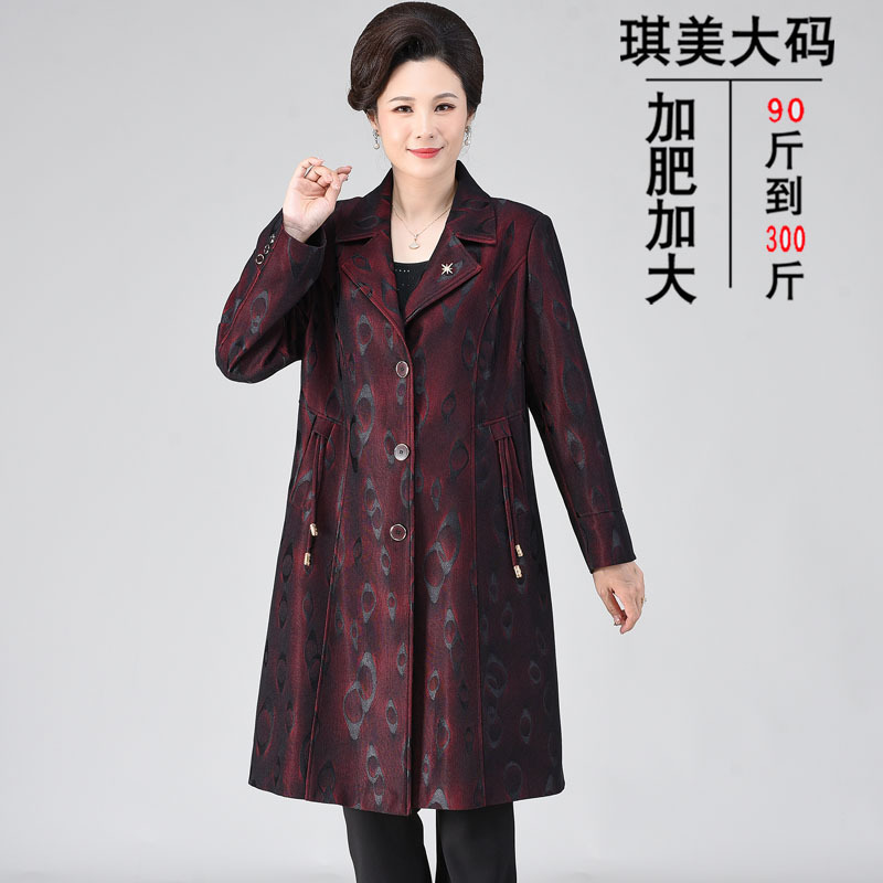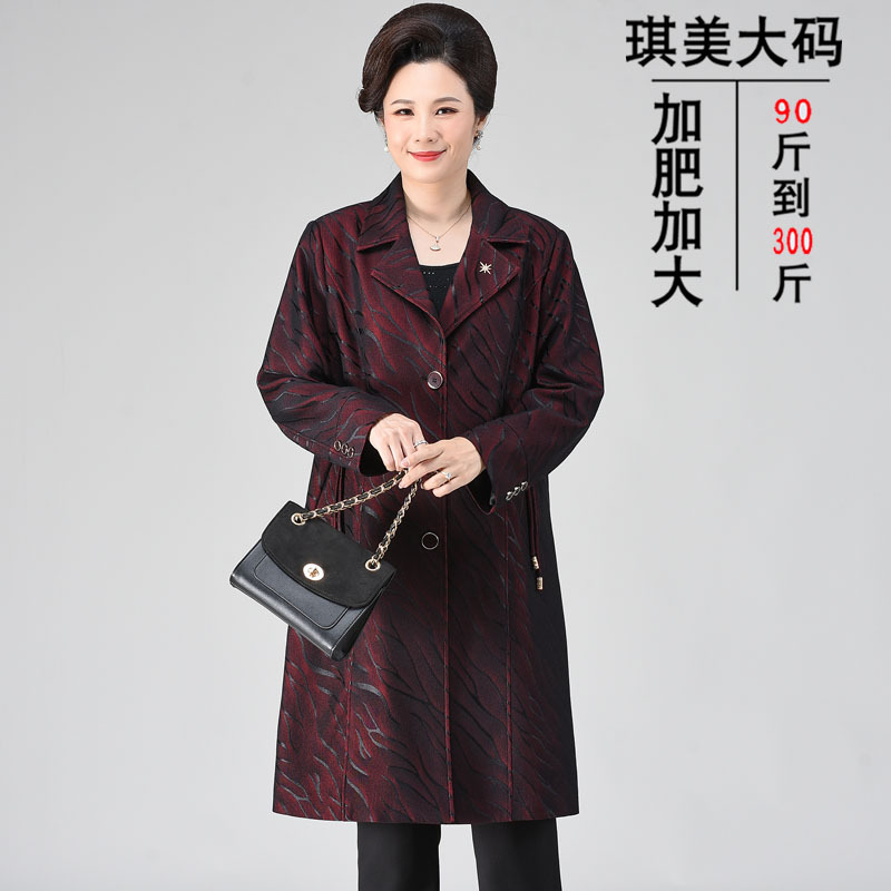 Весеннее пальто для полных мам, Длинное свободное, толстая ветровка больших размеров, 200 кг, для среднего возраста и старых, иностранный стиль, женская весна и осень