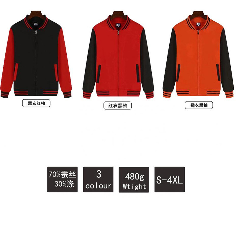 Бейсбол форма печатных логотип хлопок мягкий молния пальто вышивка класса одежда рабочая одежда свитер печать оптом