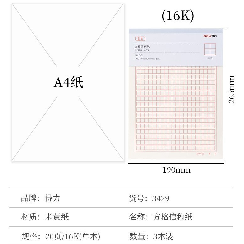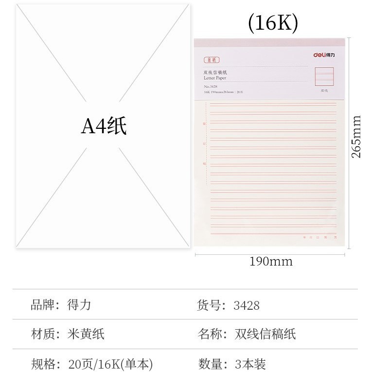 Deli 16K Letter Paper 3427/3428/3429/3430 Студенческий проект бумаги 20 Letter Paper Оптовая продажа для офиса