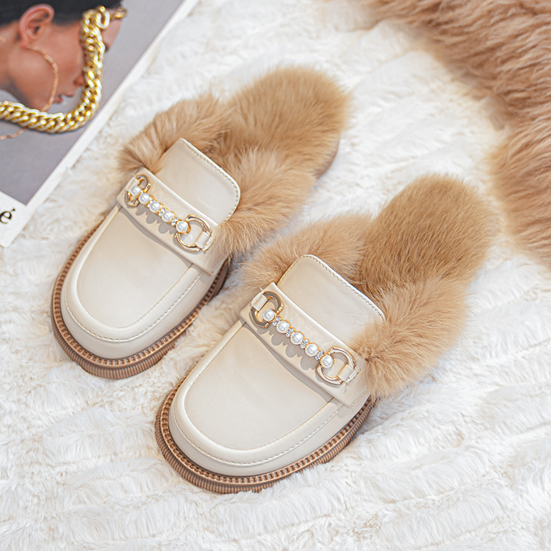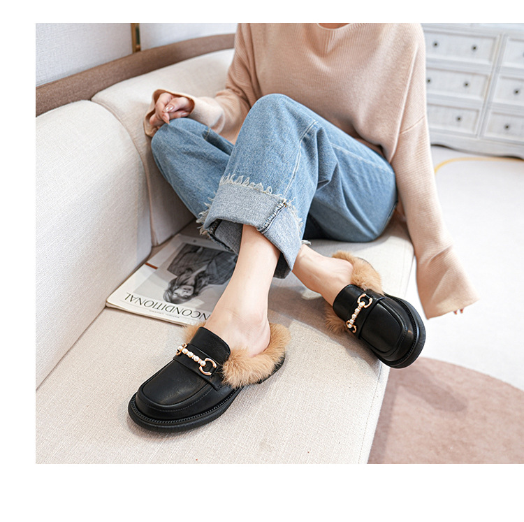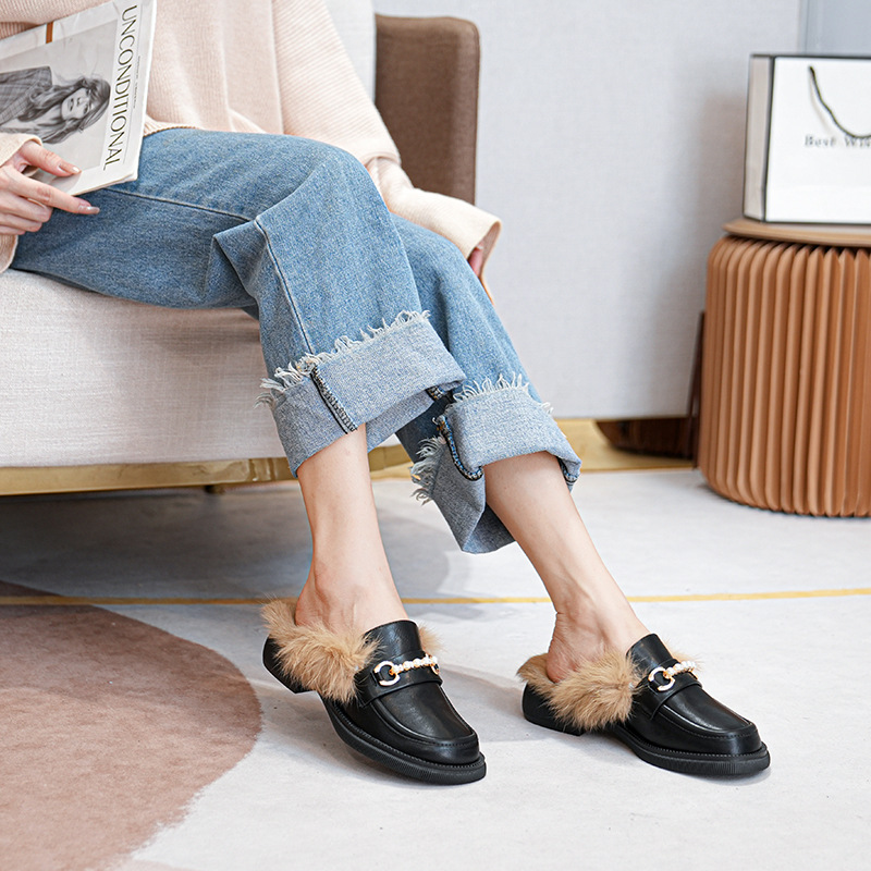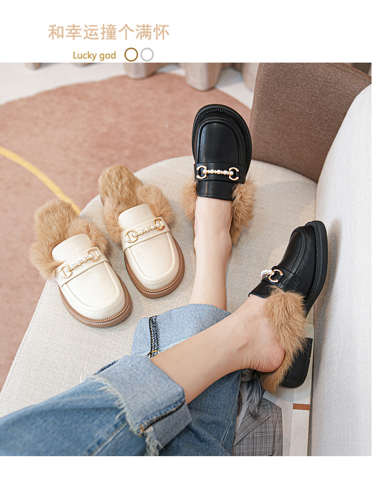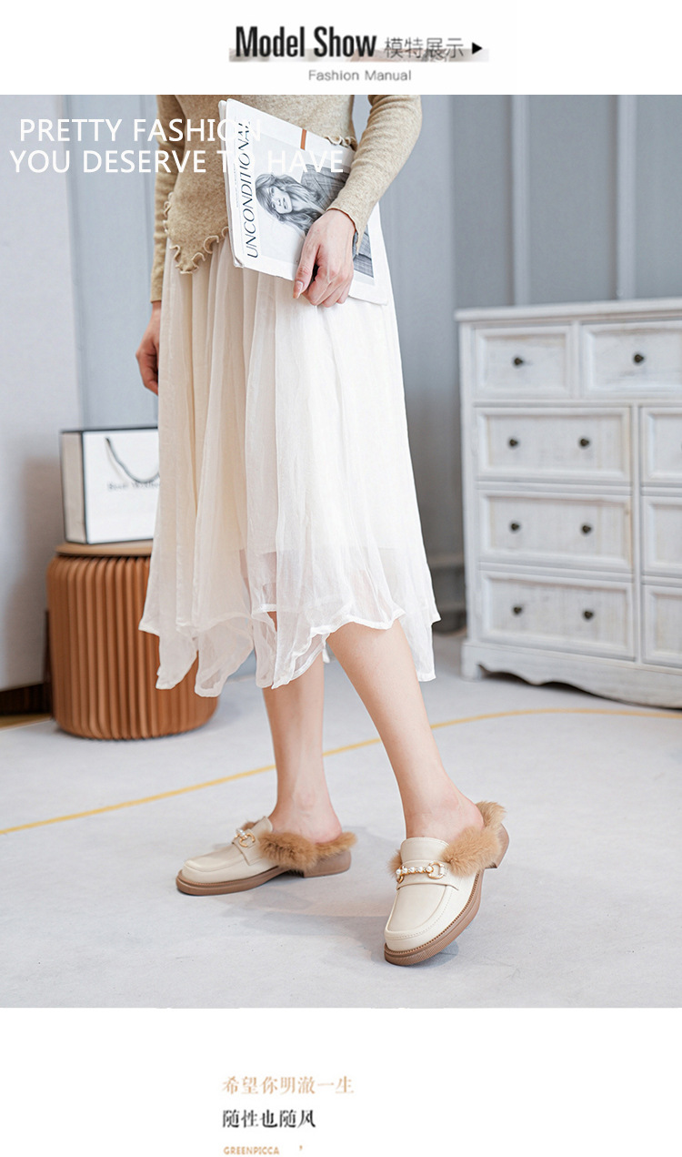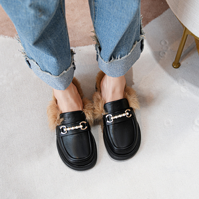Новые тапочки Мао, женская одежда, осенне-зимняя обувь Мюллера, красные ленивые туфли из меха кролика, женская обувь больших размеров 41-43