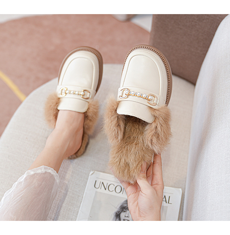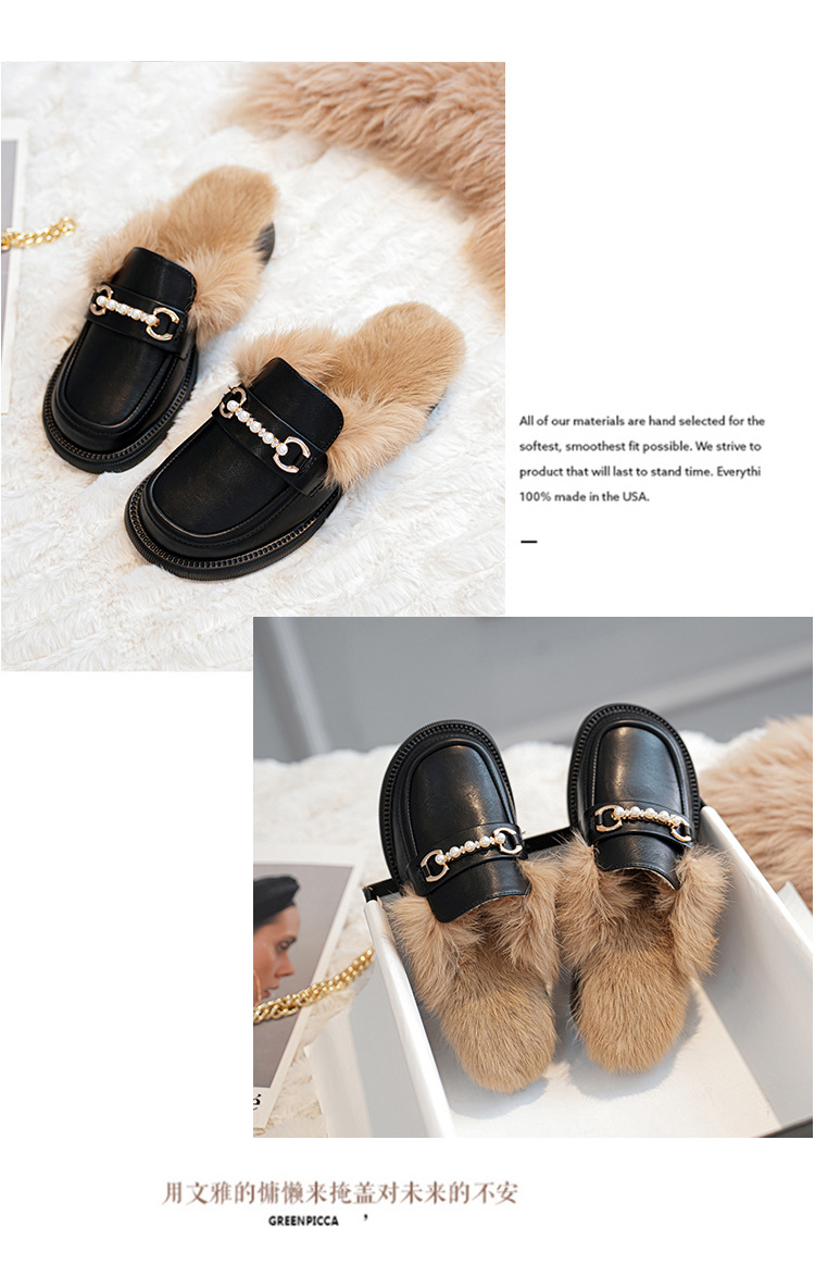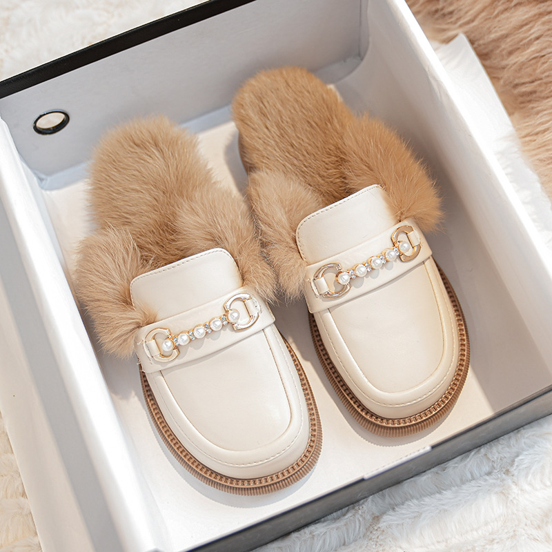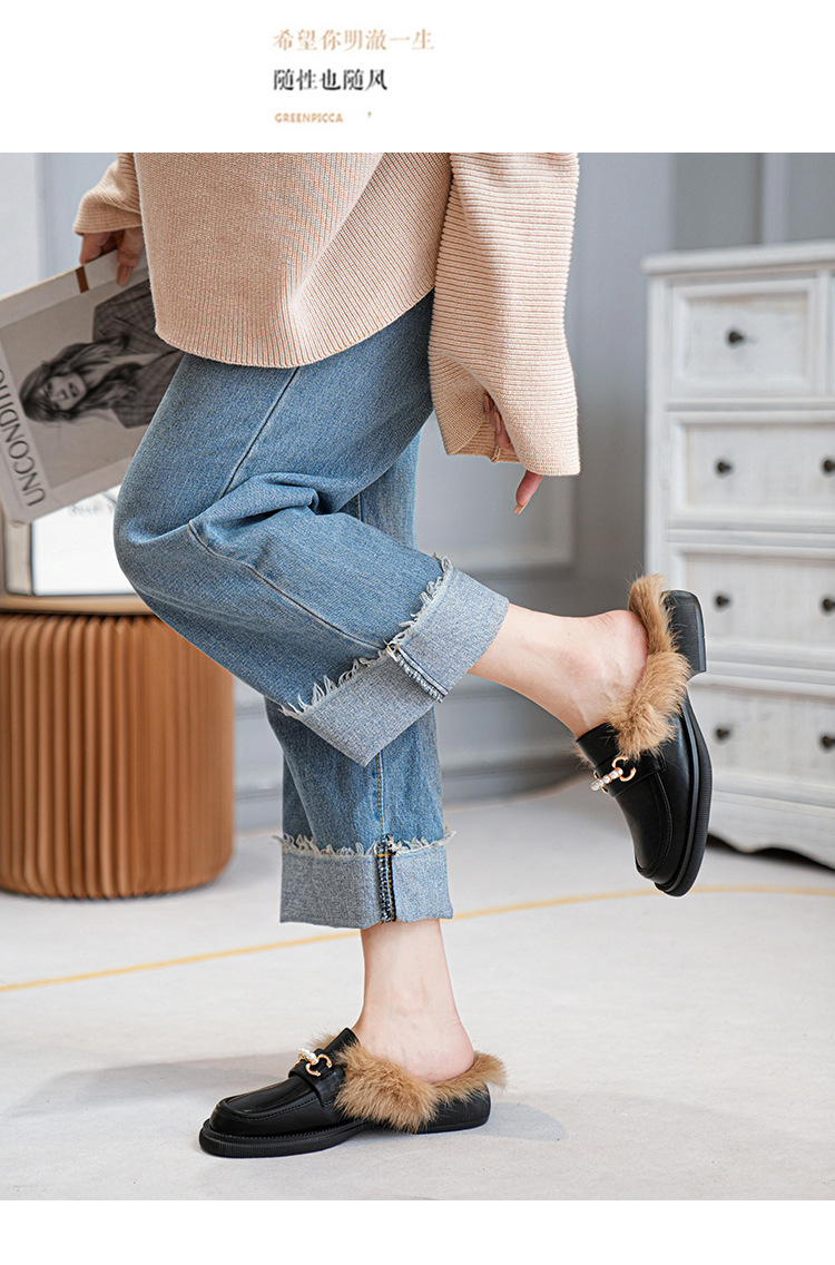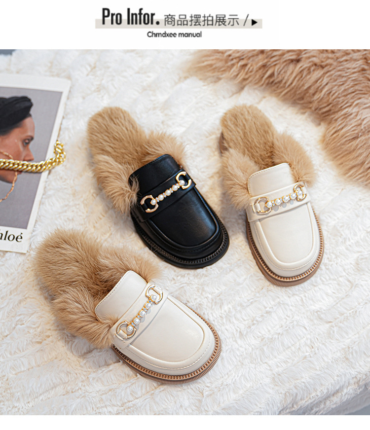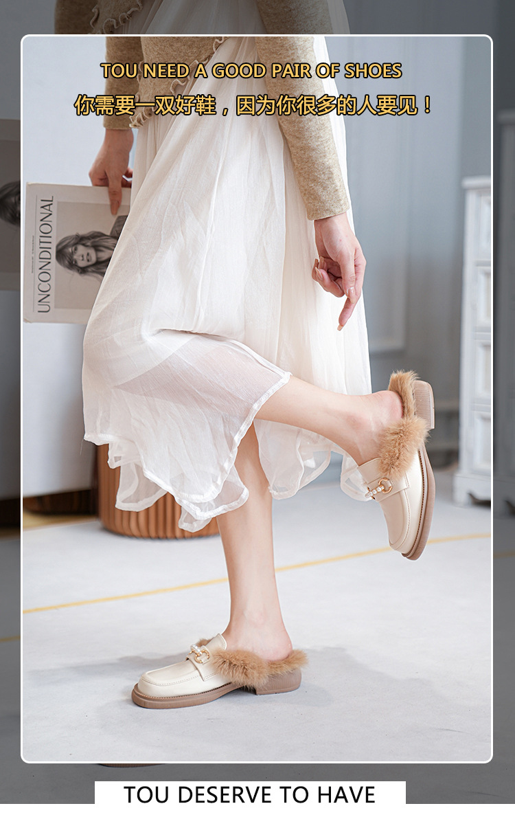 Новые тапочки Мао, женская одежда, осенне-зимняя обувь Мюллера, красные ленивые туфли из меха кролика, женская обувь больших размеров 41-43