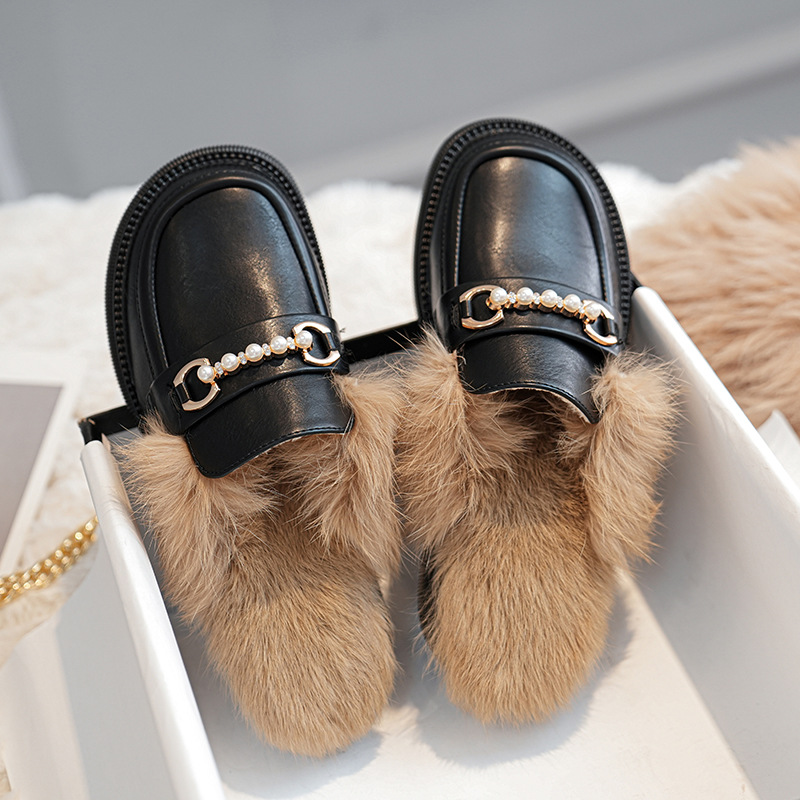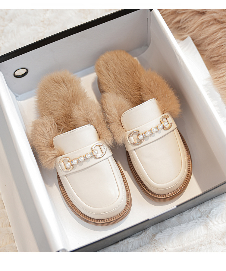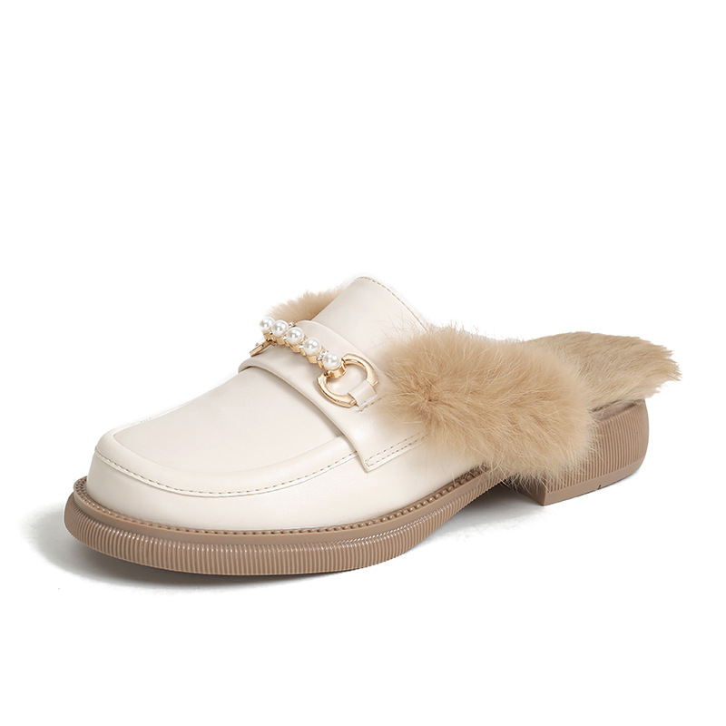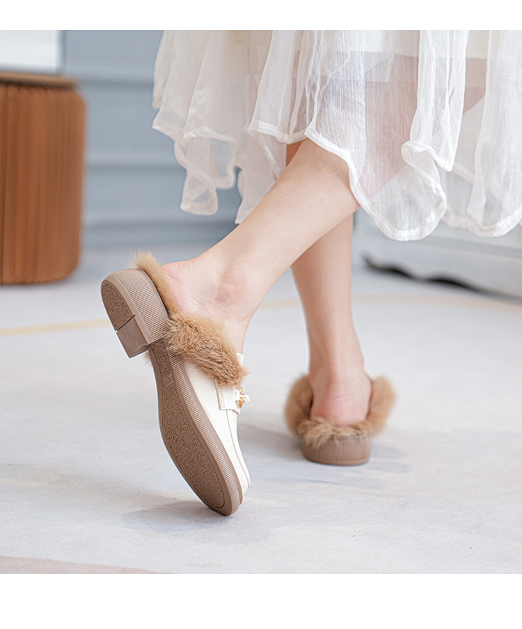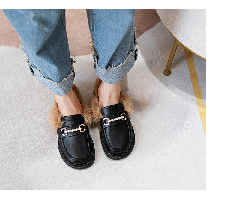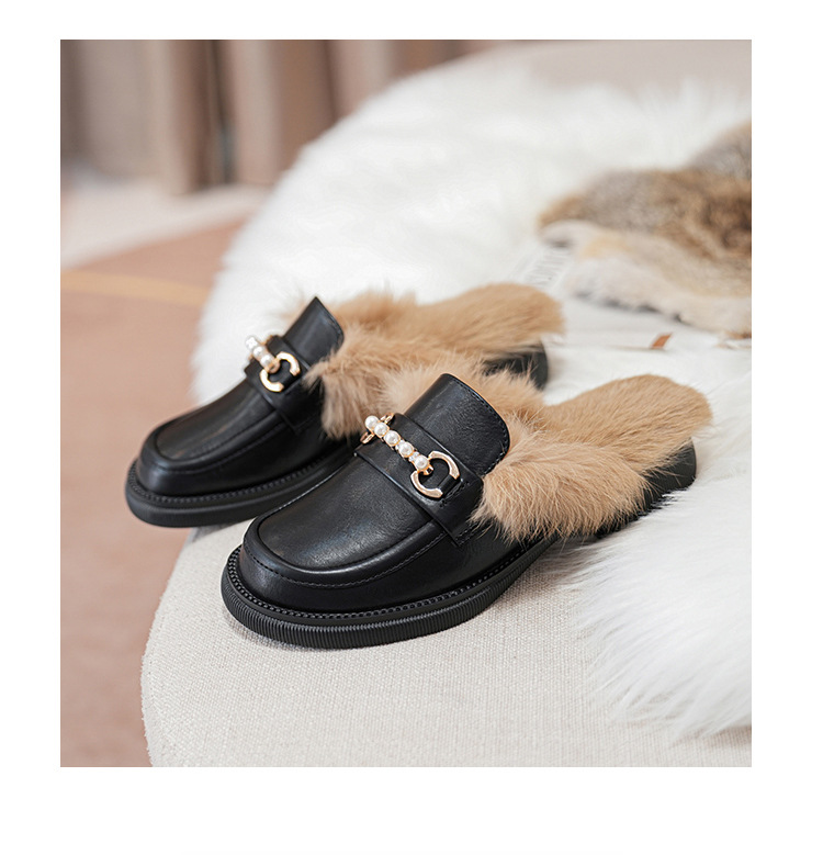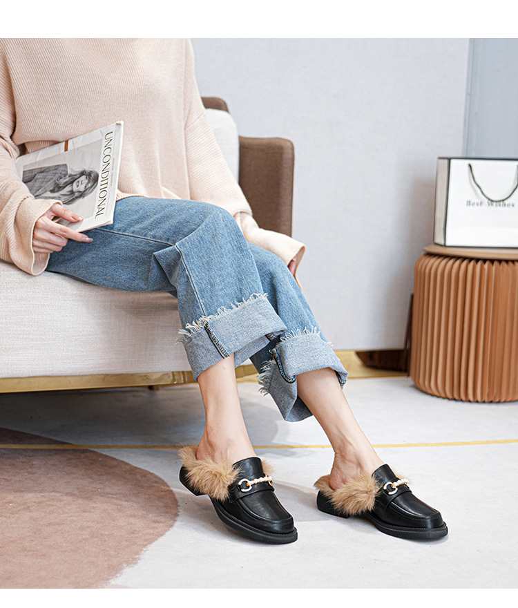 Новые тапочки Мао, женская одежда, осенне-зимняя обувь Мюллера, красные ленивые туфли из меха кролика, женская обувь больших размеров 41-43