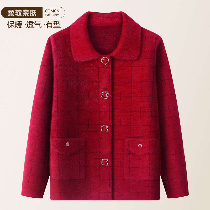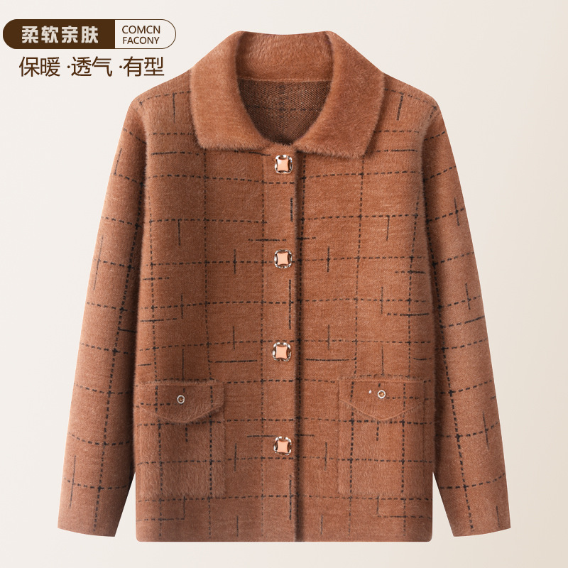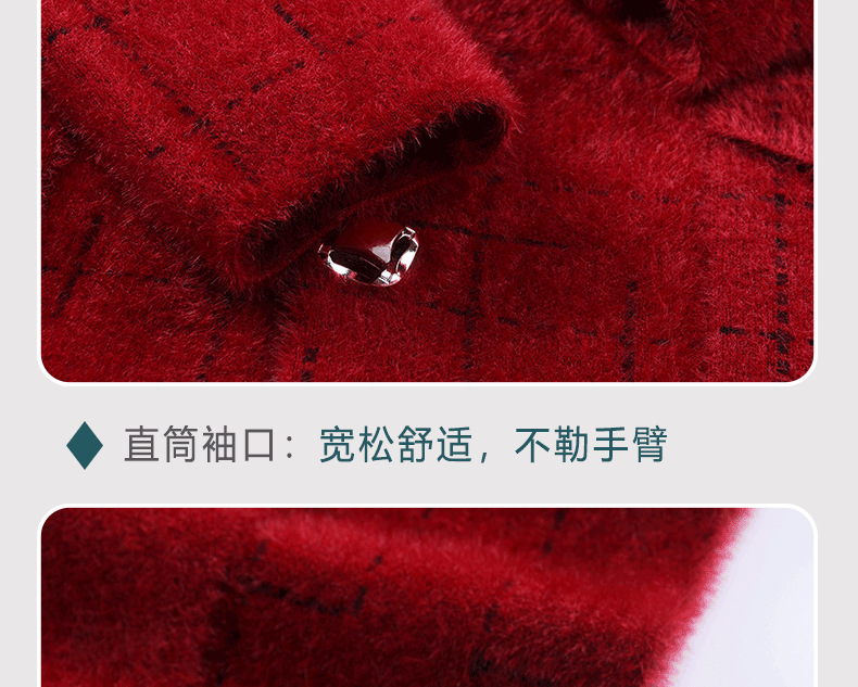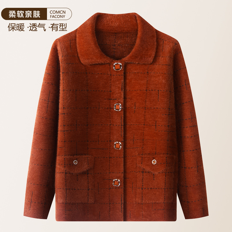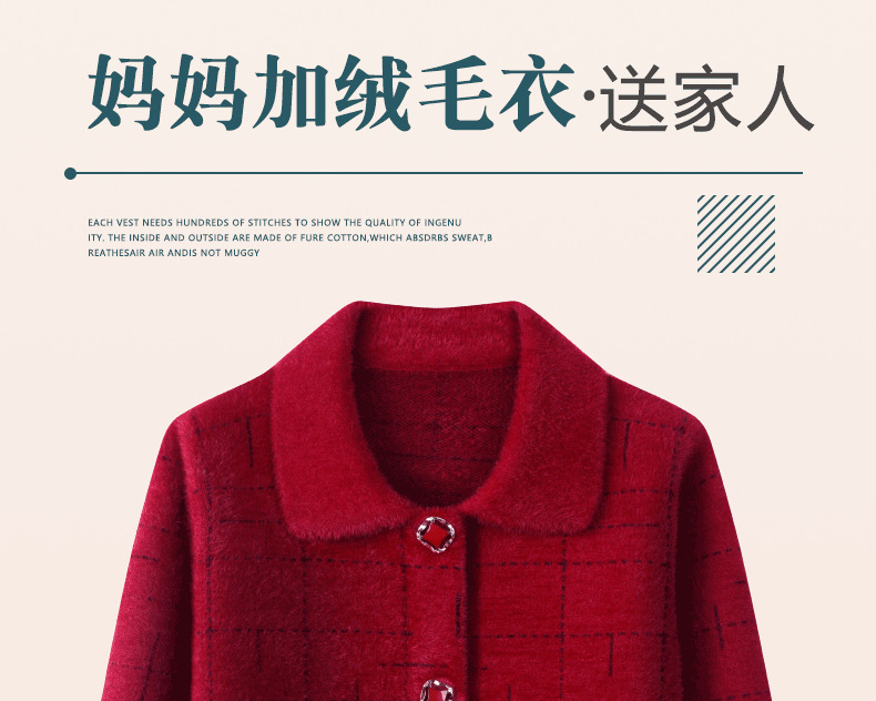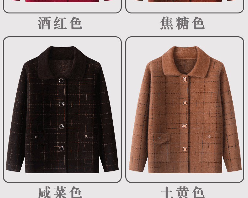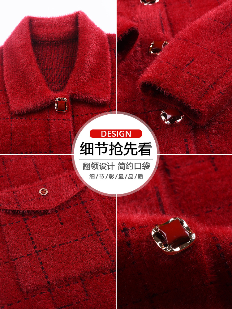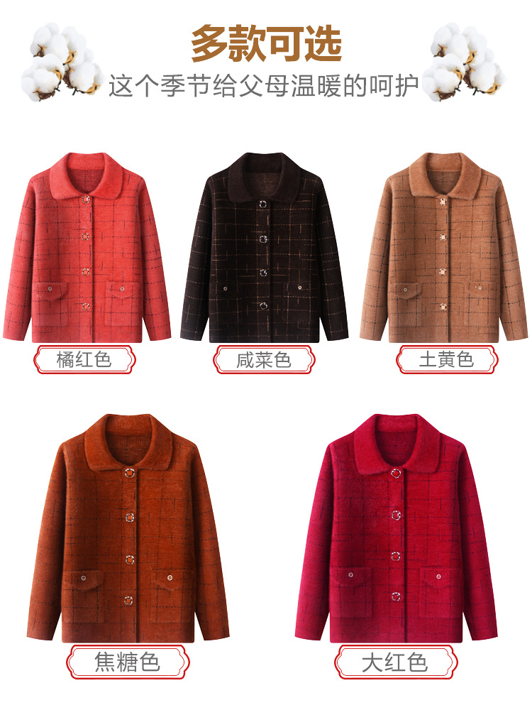 Осенне-зимнее бархатное пальто из норки среднего и пожилого возраста, женское короткое пальто для матери, Однотонный свитер на флисовой подкладке, топ, кардиган, вязаный