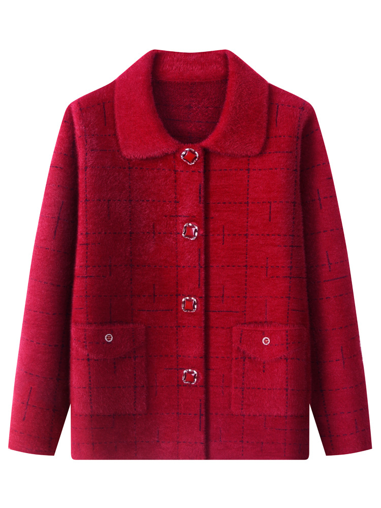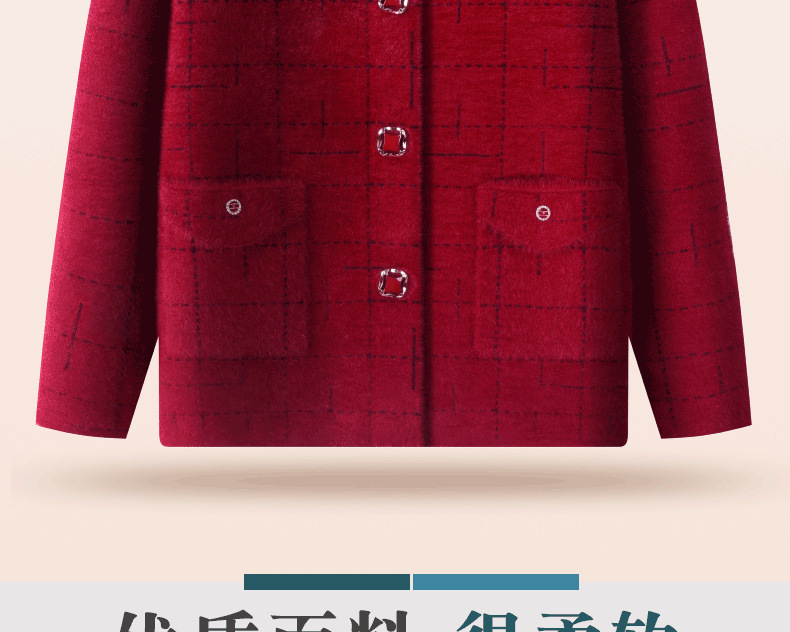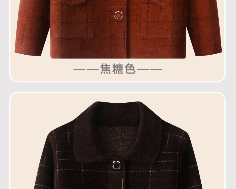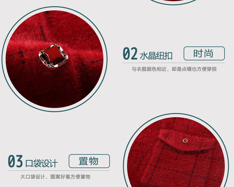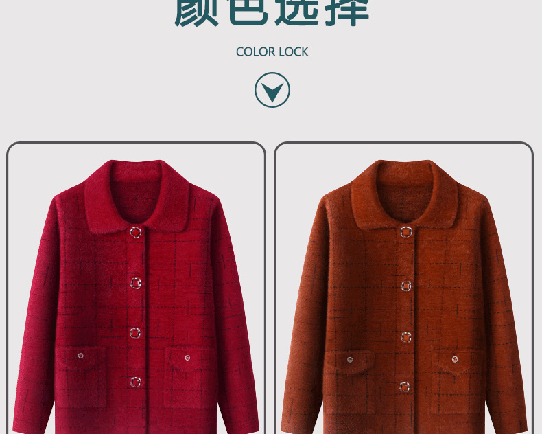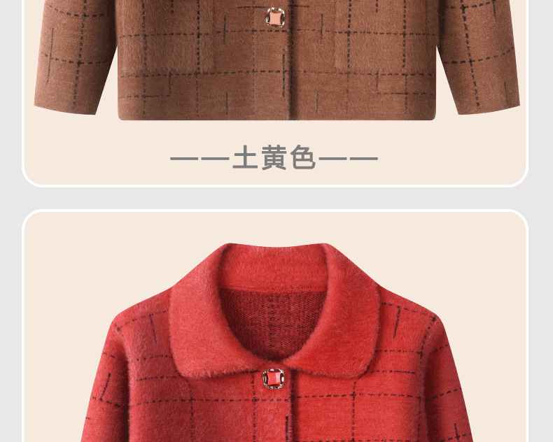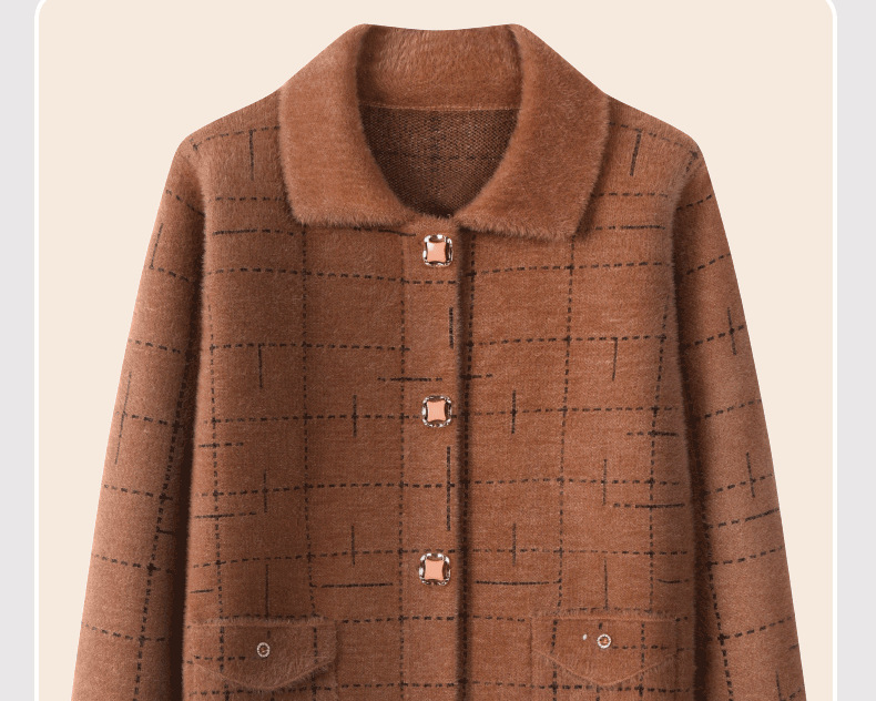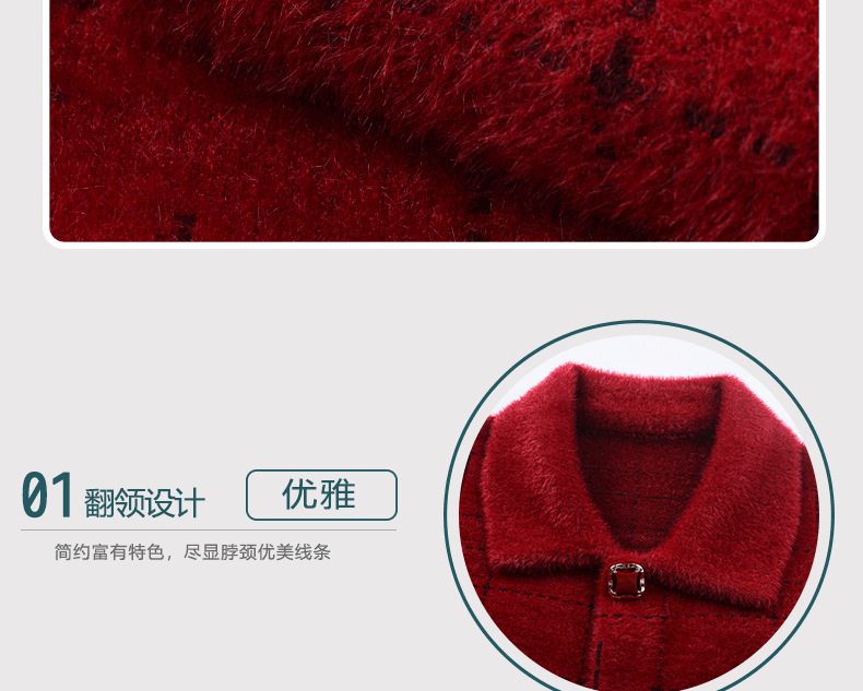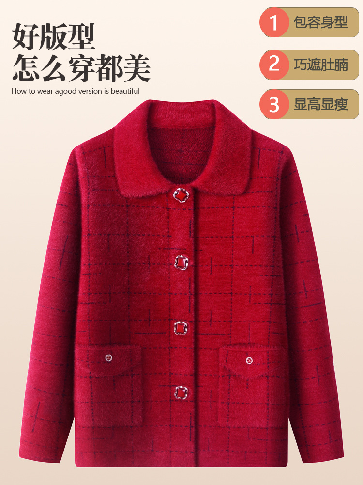Осенне-зимнее бархатное пальто из норки среднего и пожилого возраста, женское короткое пальто для матери, Однотонный свитер на флисовой подкладке, топ, кардиган, вязаный