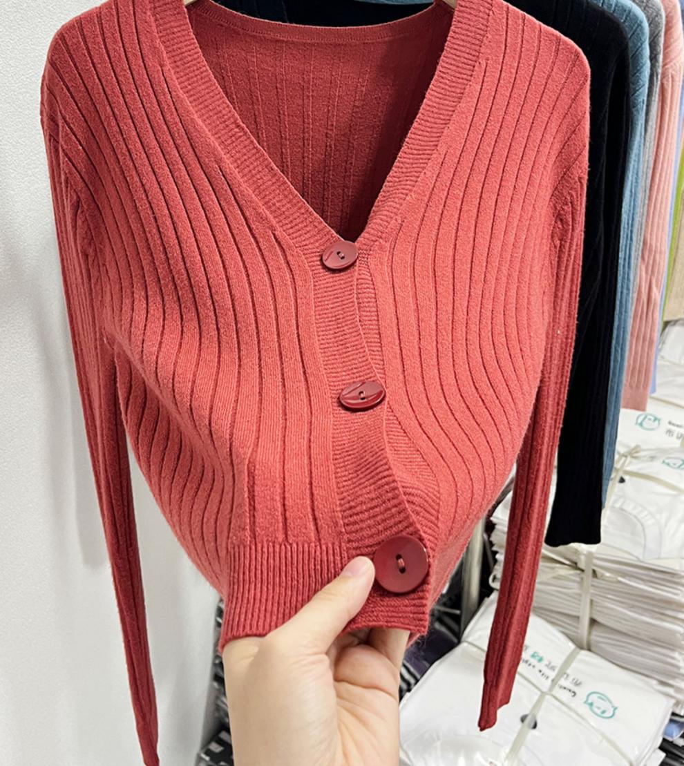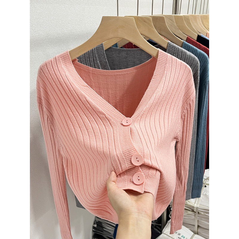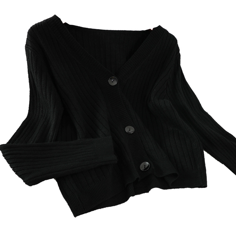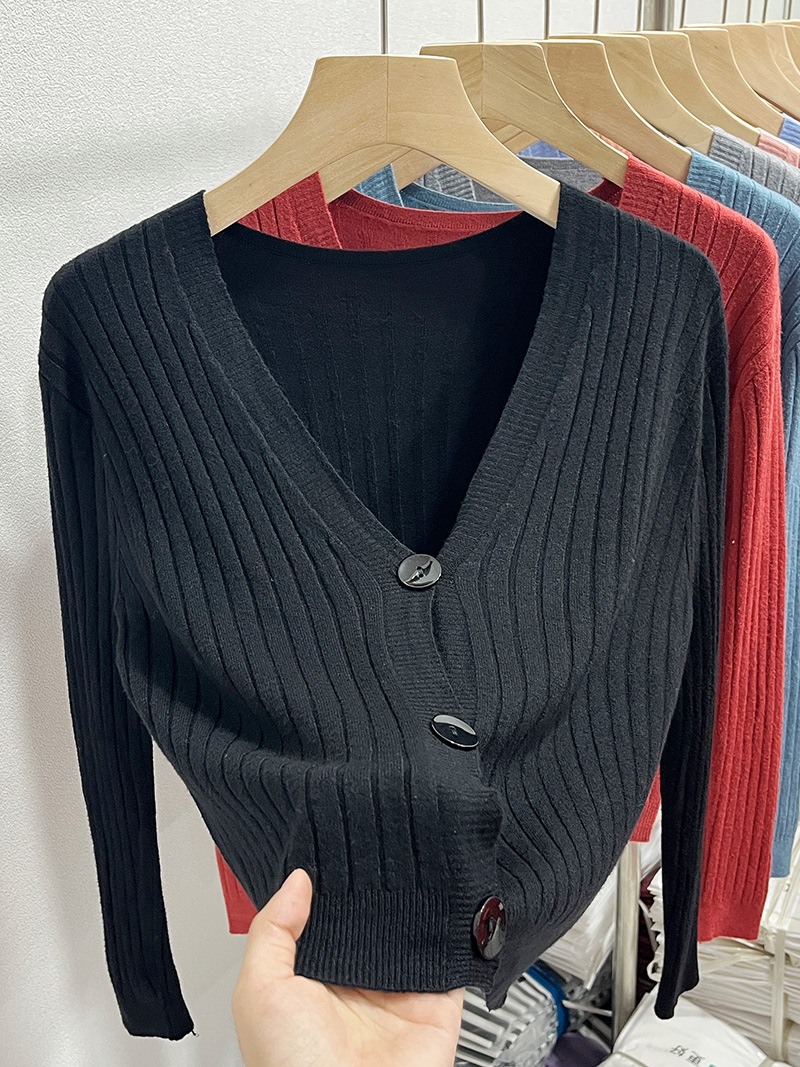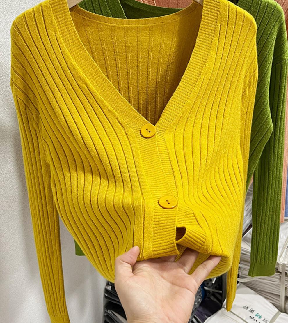 Кардиган, короткий свитер, куртка для женщин, осень 2025, новый женский свободный вязаный топ с v-образным вырезом в вертикальную полоску и длинными рукавами