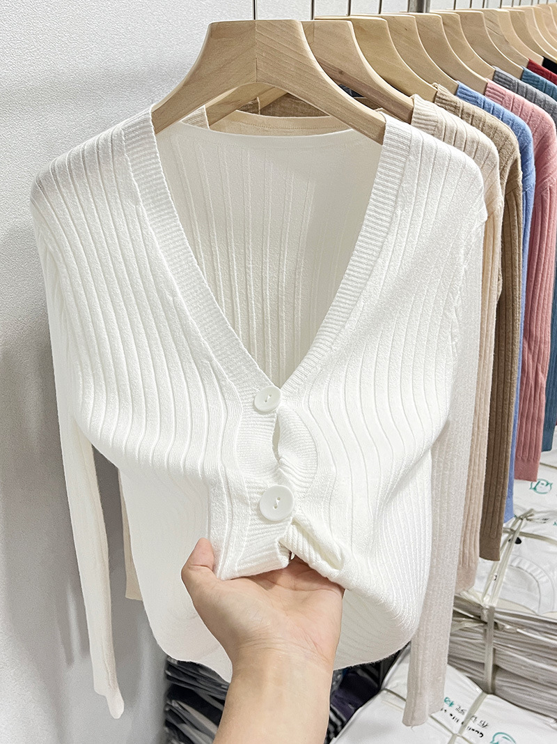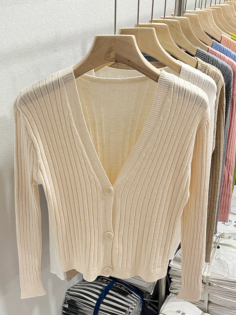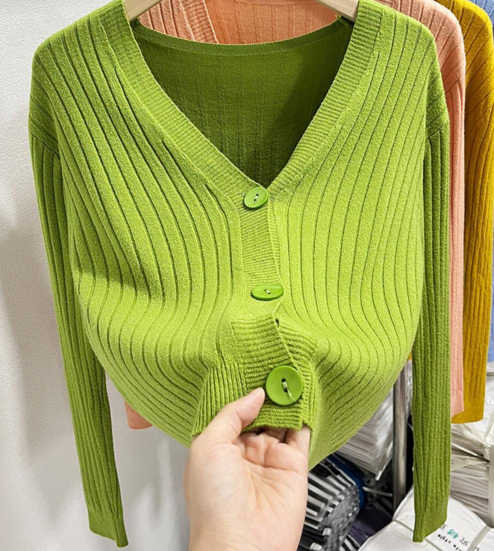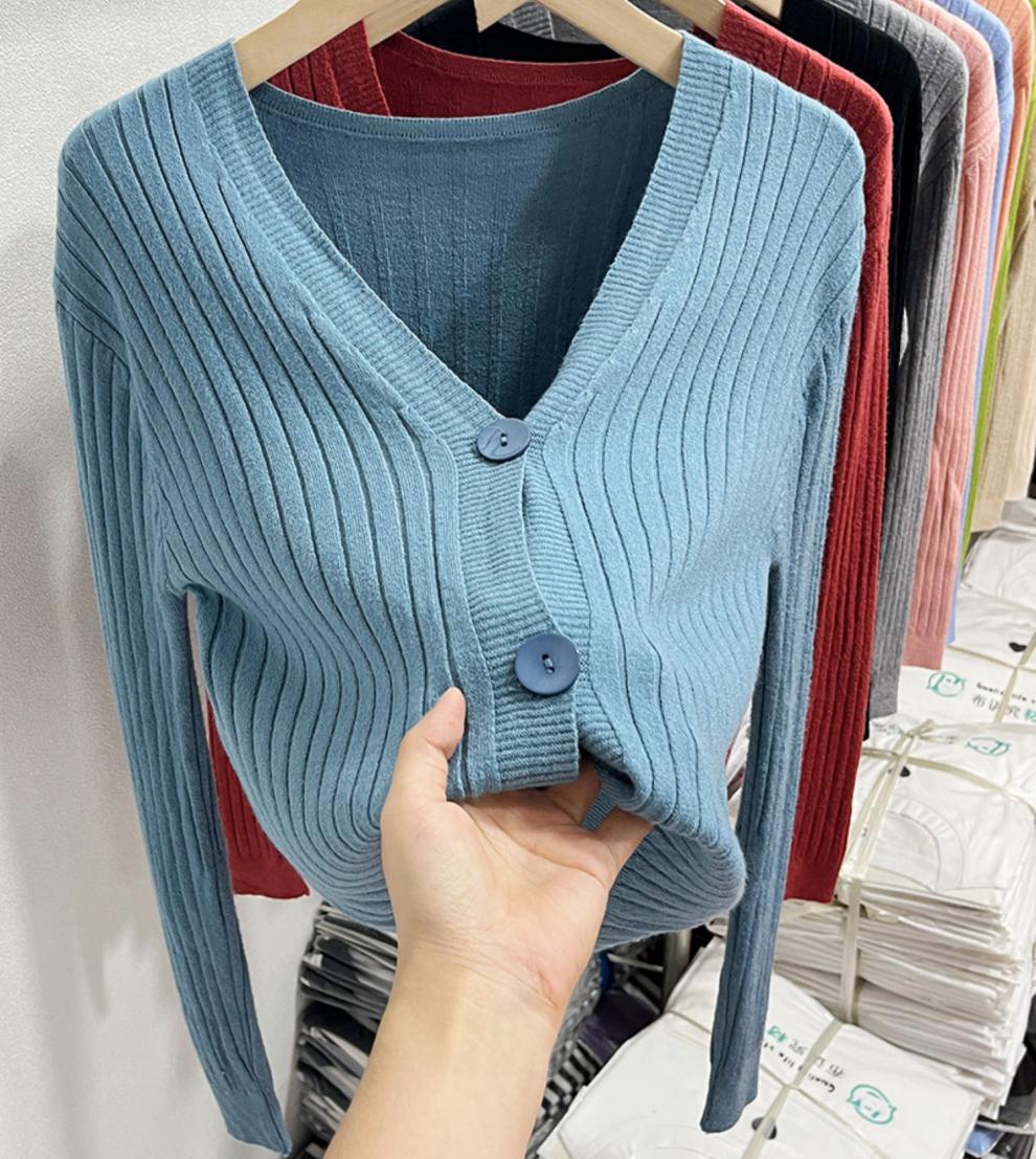 Кардиган, короткий свитер, куртка для женщин, осень 2025, новый женский свободный вязаный топ с v-образным вырезом в вертикальную полоску и длинными рукавами