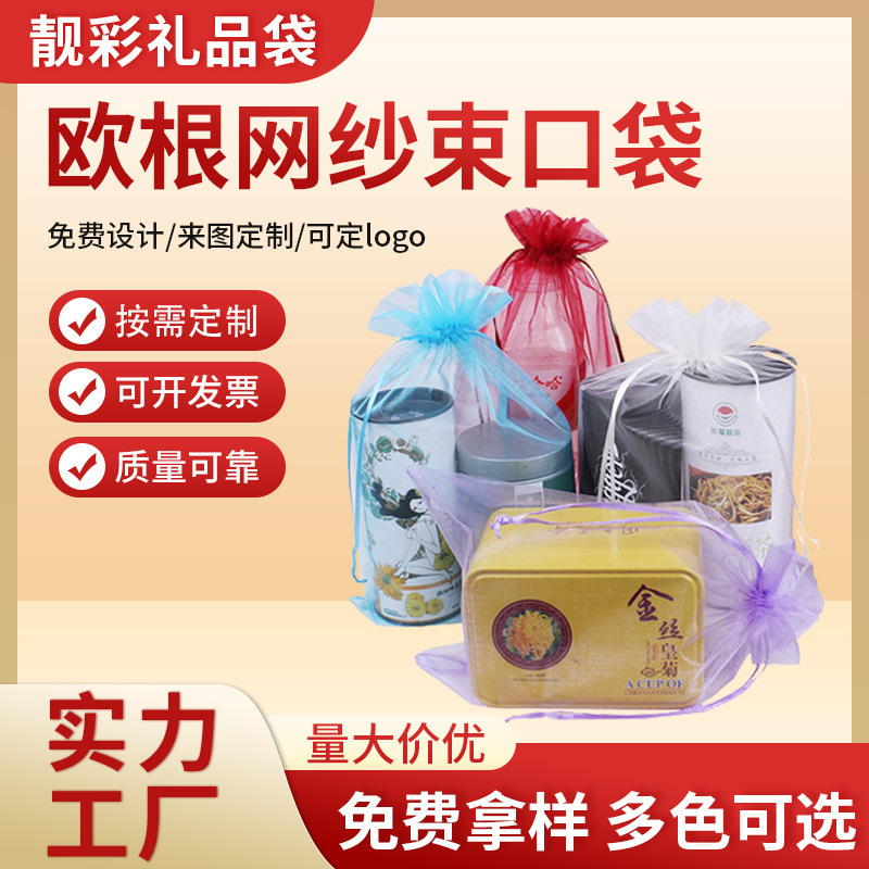 Пряжа мешок в наличии оптом сплошной цвет органза пряжа мешок сухой цветок мешок для печати логотипа упаковки шнурок мешок сетки