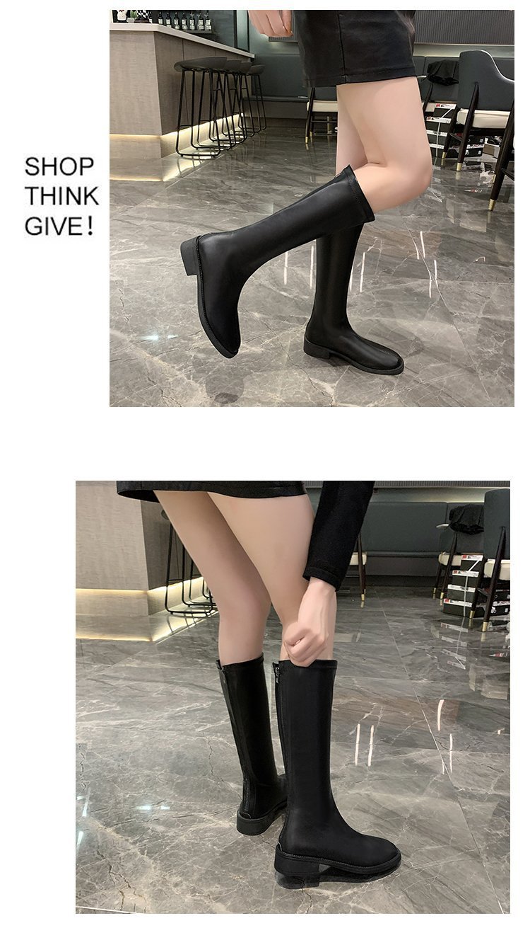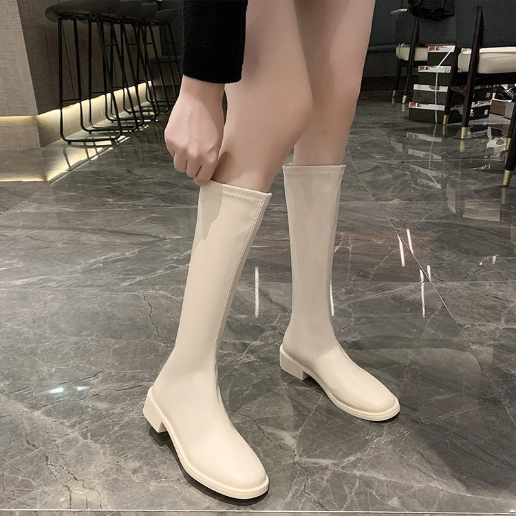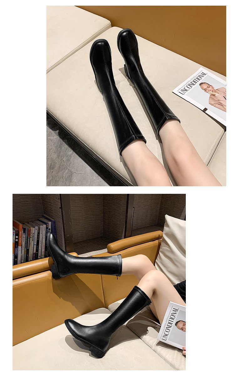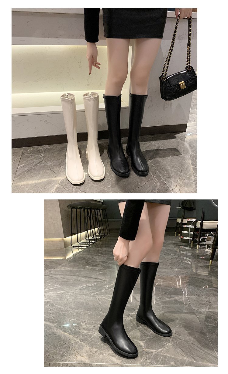 Женская обувь больших размеров 4142, но до колен осенне-зимние корейские высокие сапоги с квадратной головкой и плоским дном на низком каблуке на молнии европейские и американские рыцарские сапоги