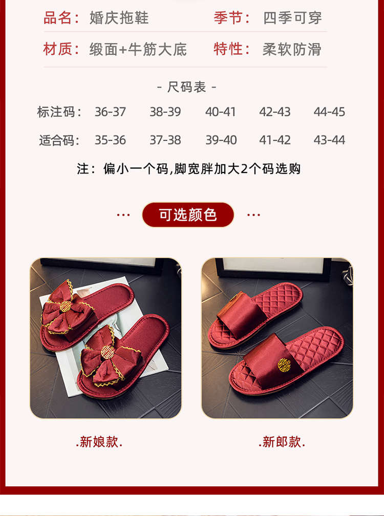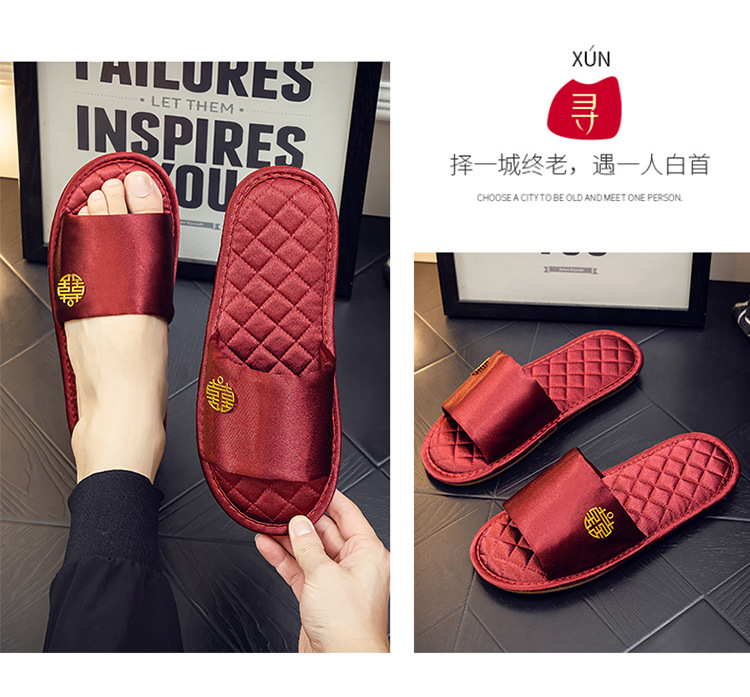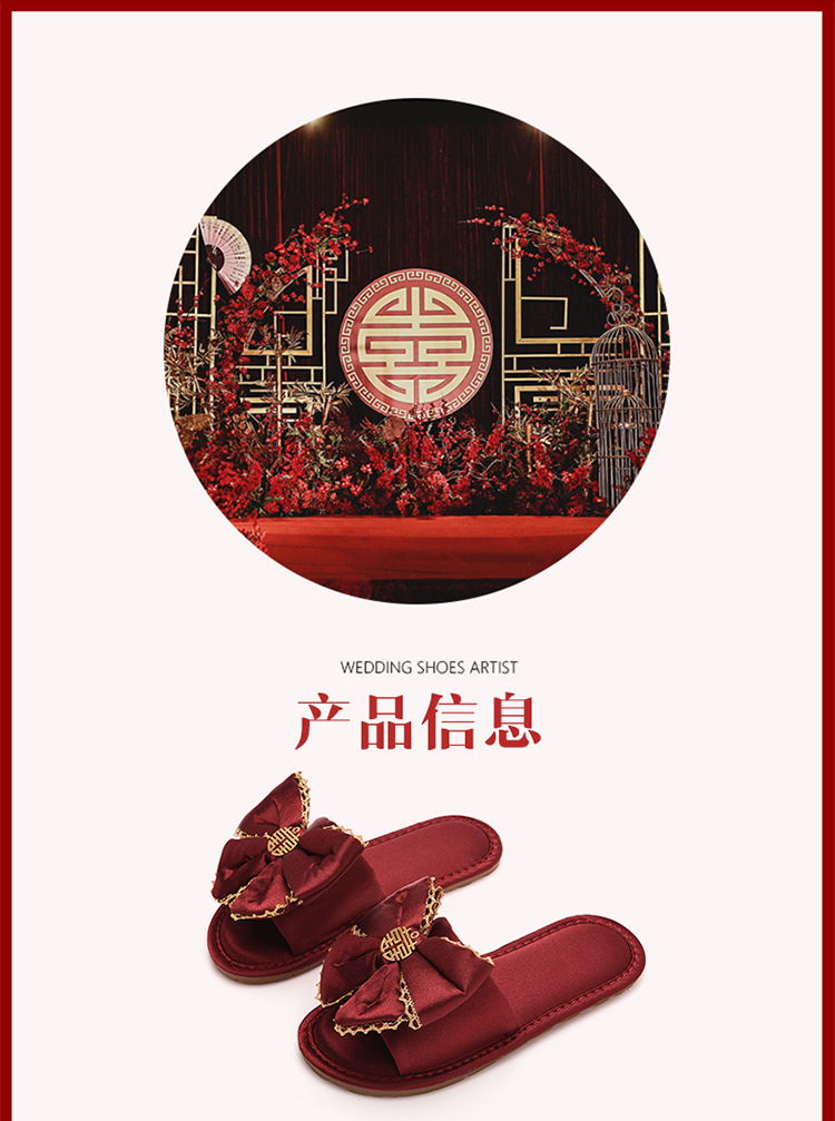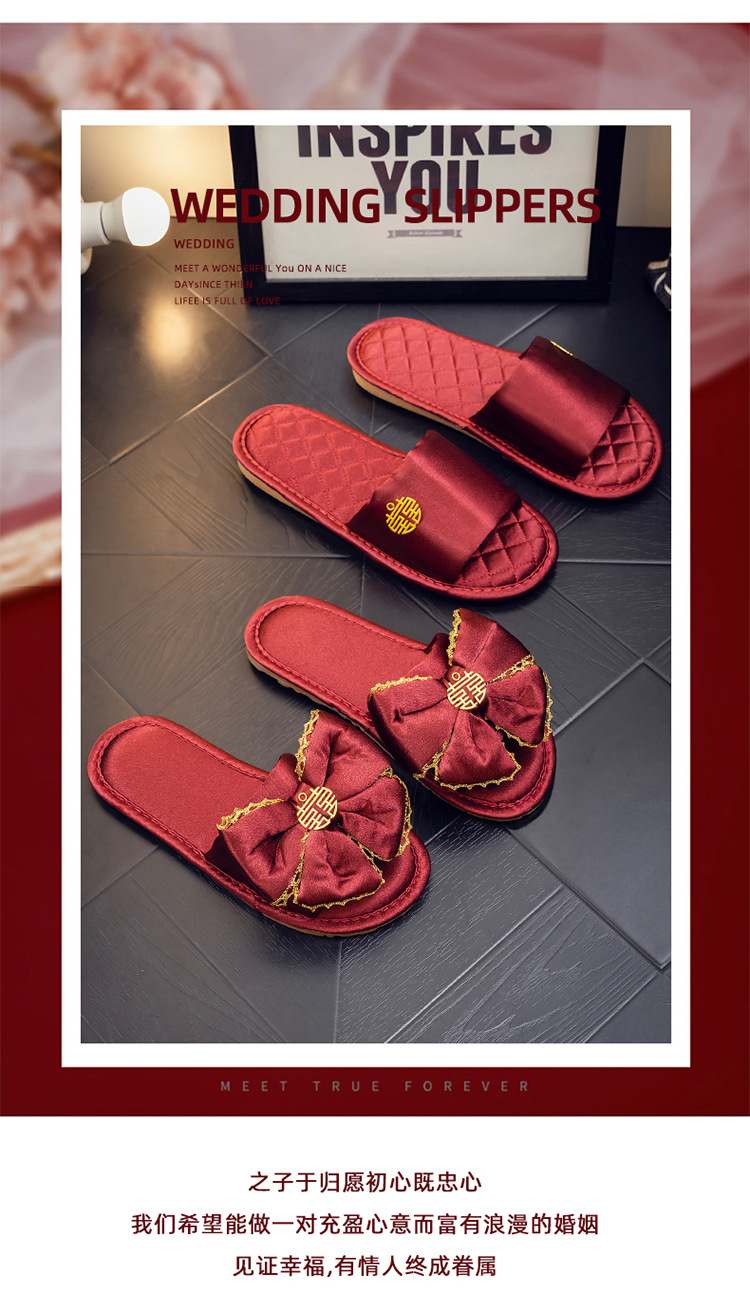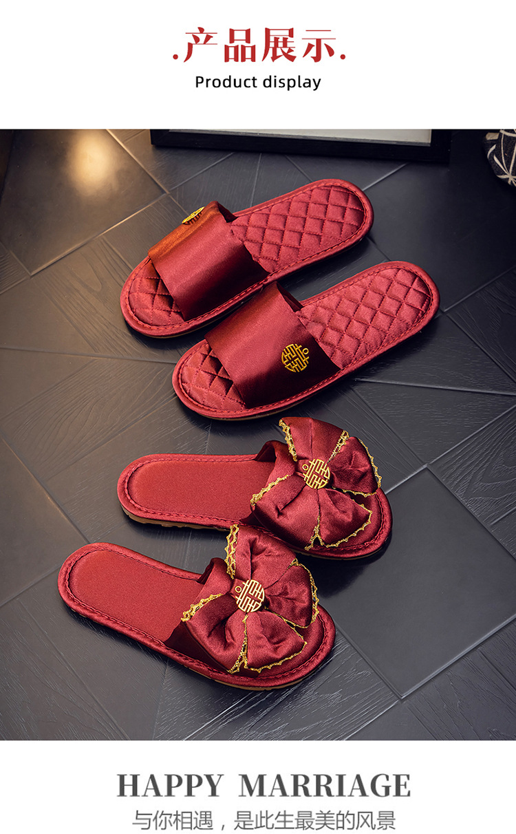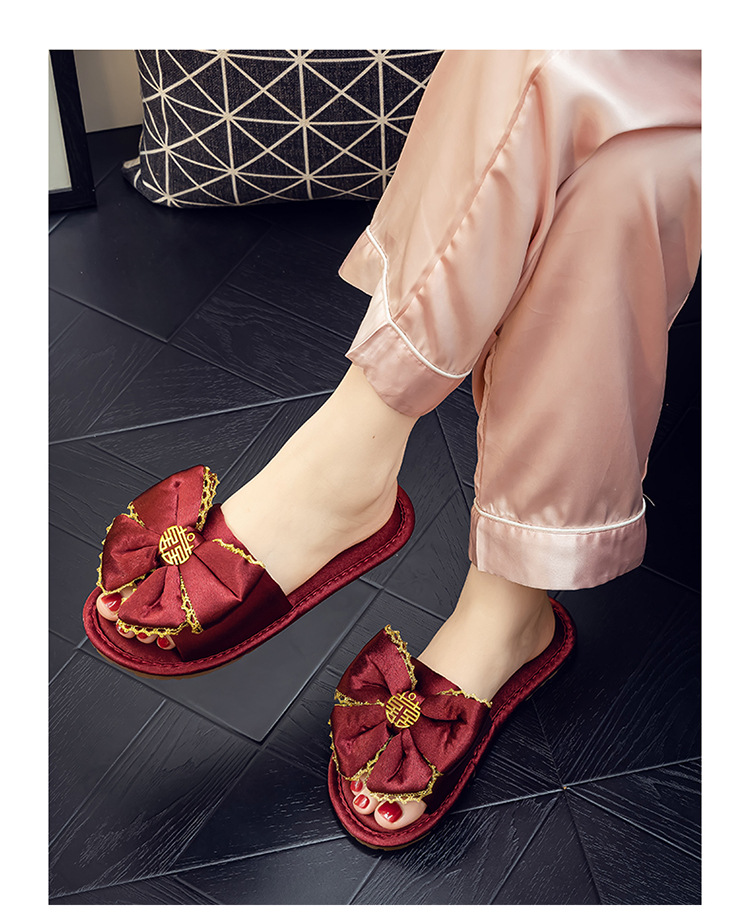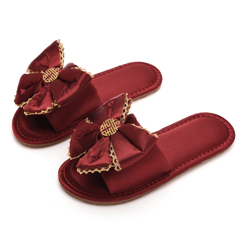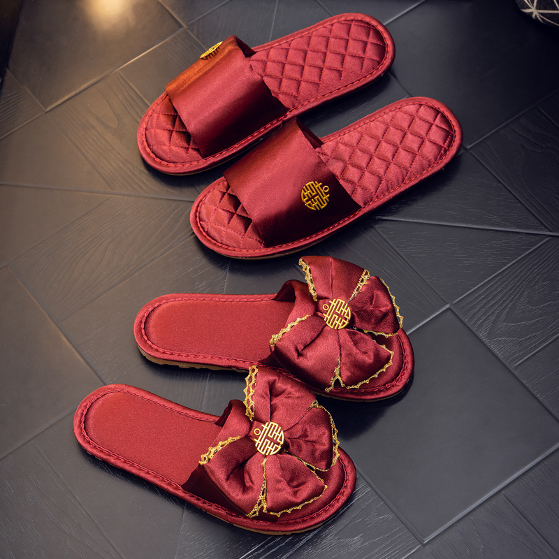 Нескользящий легкий роскошный утренний халат Тапочки Пара Свадебная красная пара приданого домашний халат свадебные туфли