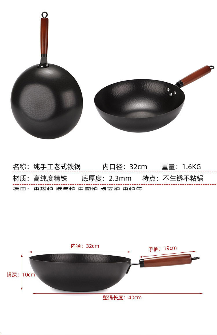 Железная сковорода ручной ковки старомодная Тонкая Железная сковорода Бытовая сковорода с антипригарным покрытием Сковорода с без покрытия Трансграничная оптовая продажа