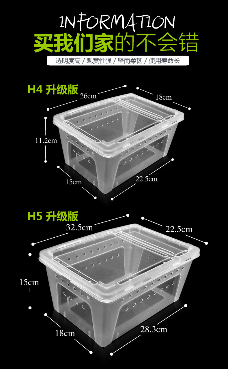 H0 черная раковина (5,5*2,2 см); Коробка для кормления H1 (6,8*6,8*4,5 см); Кормушка H3 небольшого размера (15*10*6,5); H3 ящик для кормления большого размера (19*12,5*7,5); Коробка для кормления H4 (26*17,5*11,5 см); Коробка для кормления H5 (32*22*15 см)