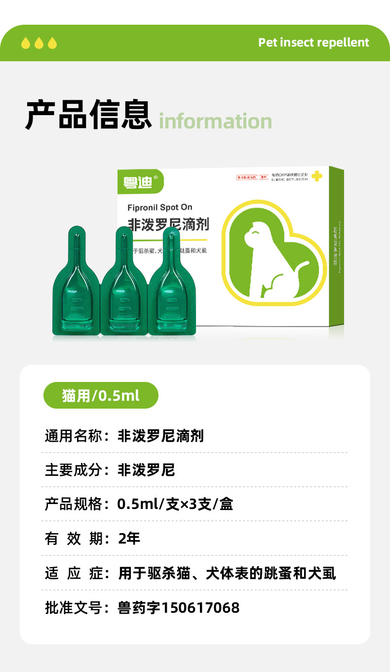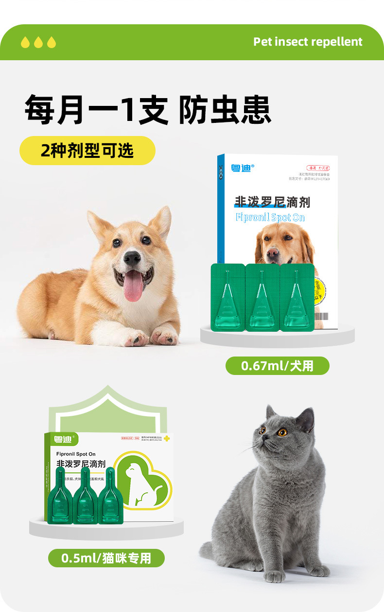 Гуандун Difeperoni Drops 3 в штучной упаковке собаки и кошки используют репелленты от насекомых, чтобы убить блох, клещей и вши в Витро