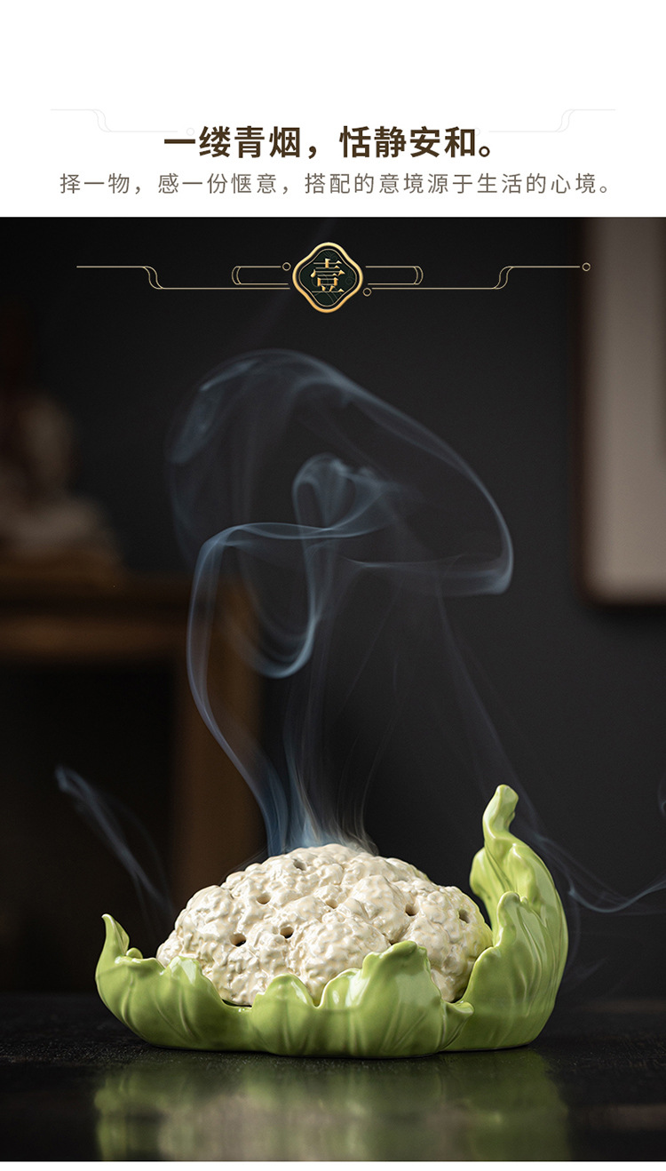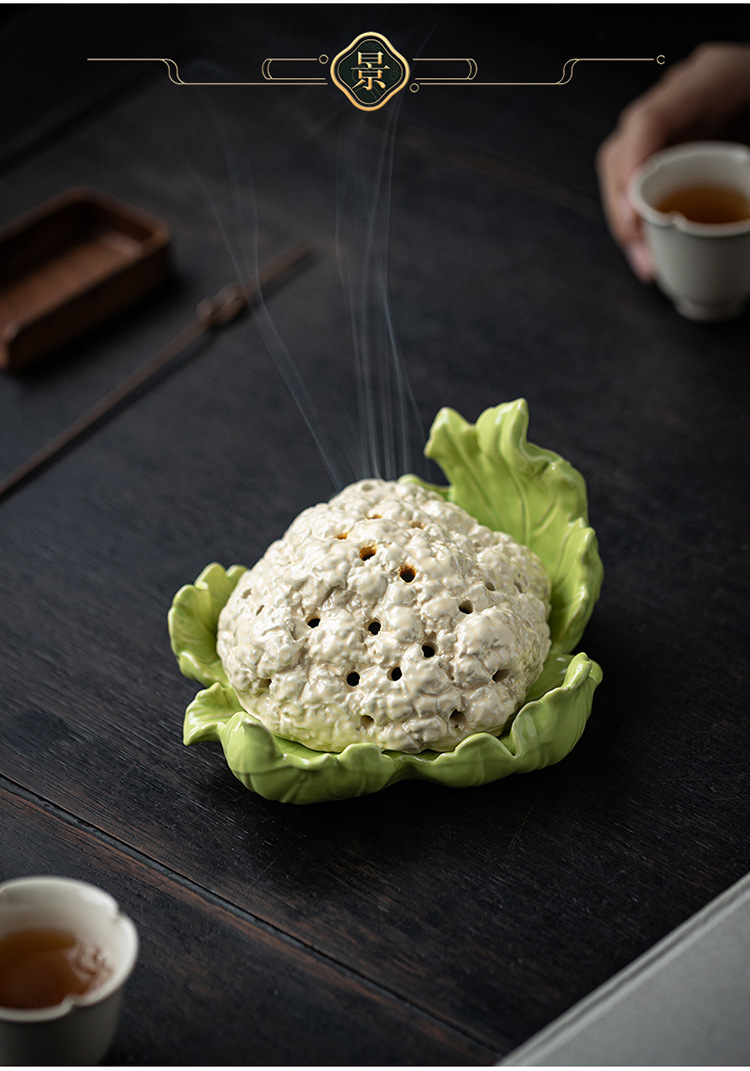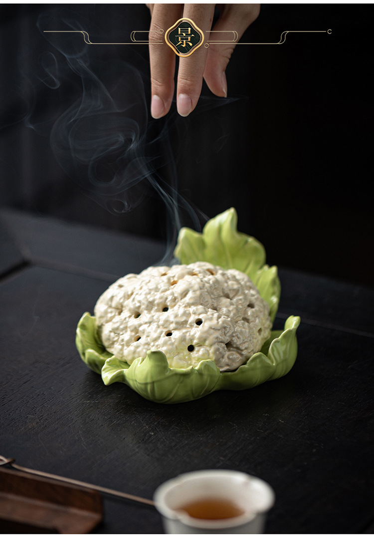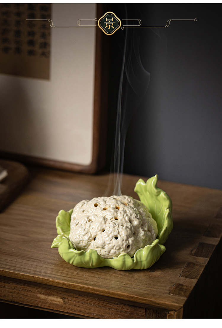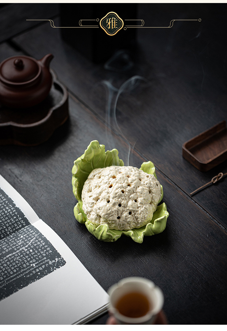Креативная керамическая курильница для цветной капусты Бытовая внутренняя горелка для ароматерапии Коробка для благовоний из сандалового дерева Персонализированная курильница для чайного столика