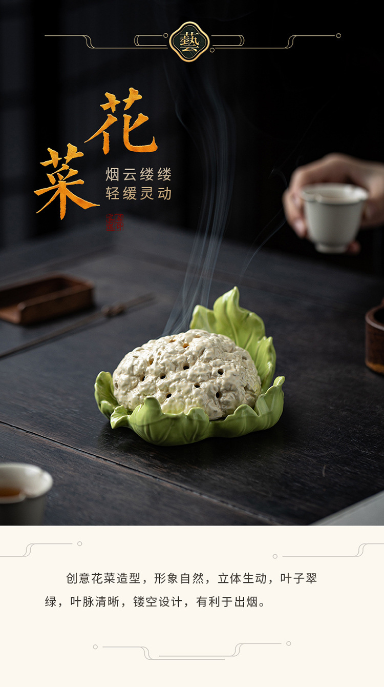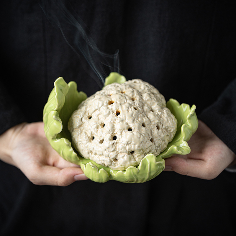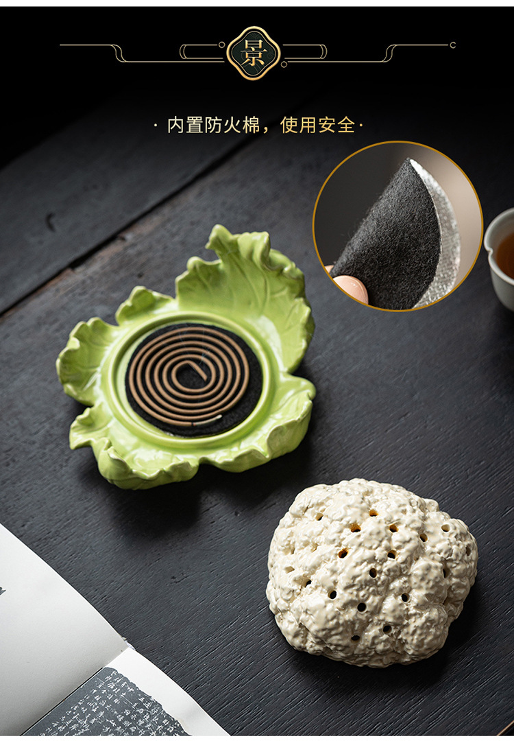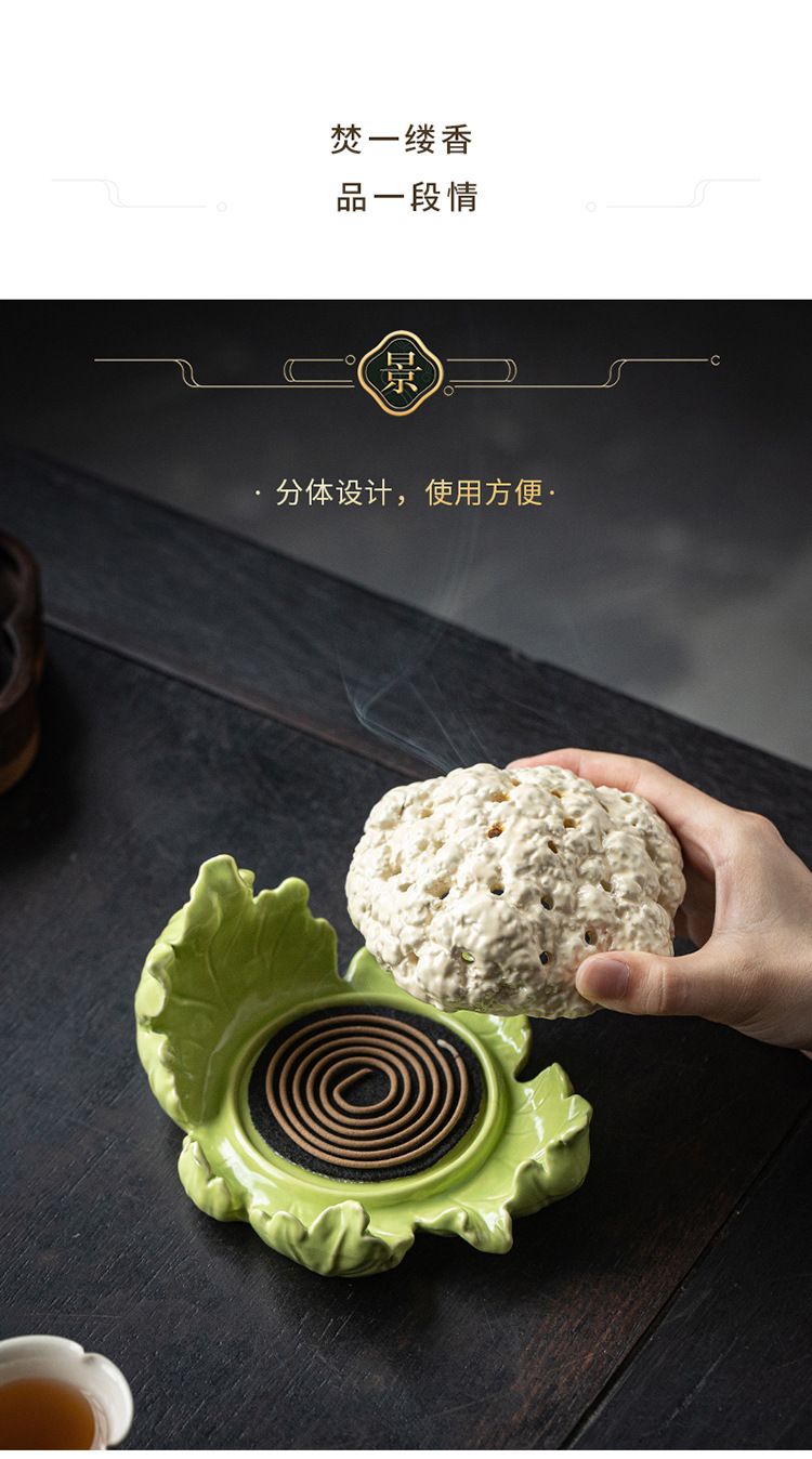 Креативная керамическая курильница для цветной капусты Бытовая внутренняя горелка для ароматерапии Коробка для благовоний из сандалового дерева Персонализированная курильница для чайного столика