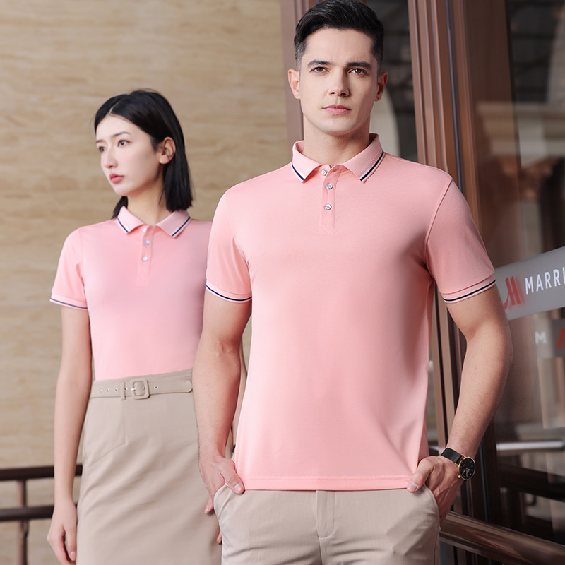 Летняя рубашка-поло, комбинезон, футболка с вышитым логотипом, высококачественный ледяной шелк, лацкан, рабочая одежда для мужчин своими руками