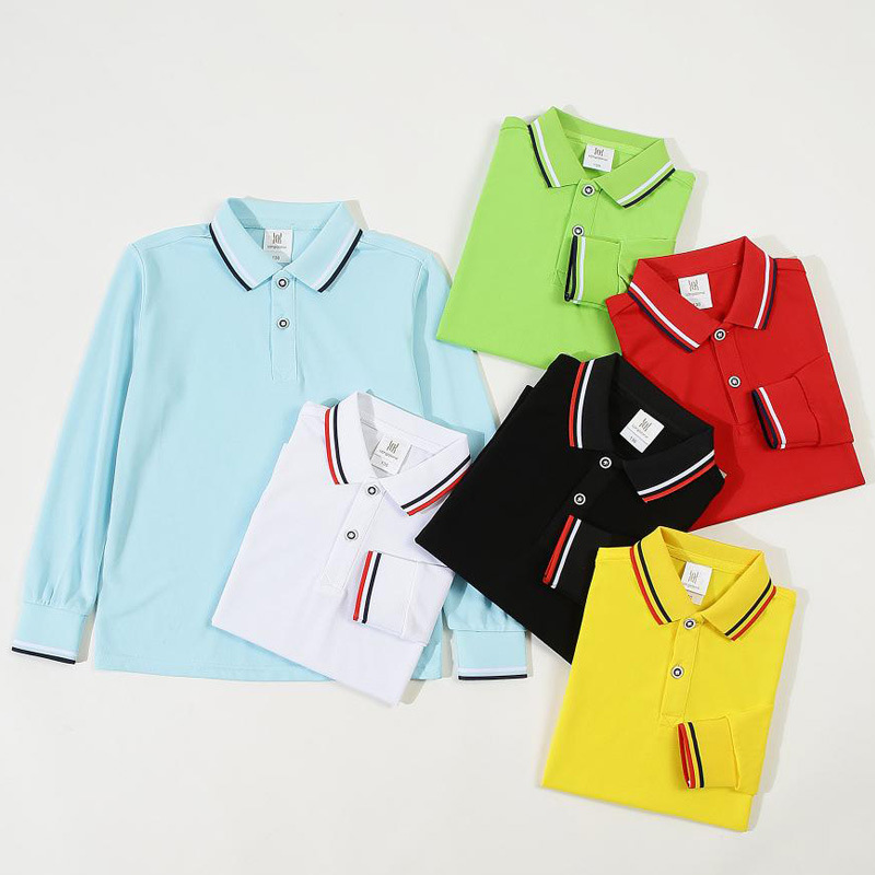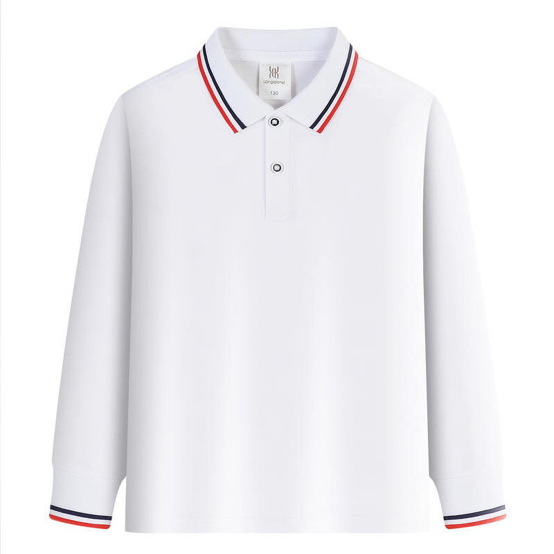 Детская белая рубашка-поло с лацканами, футболка с длинным рукавом, для студентов детского сада, весенне-осенняя классная форма, школьная форма, занятия для мужчин и женщин